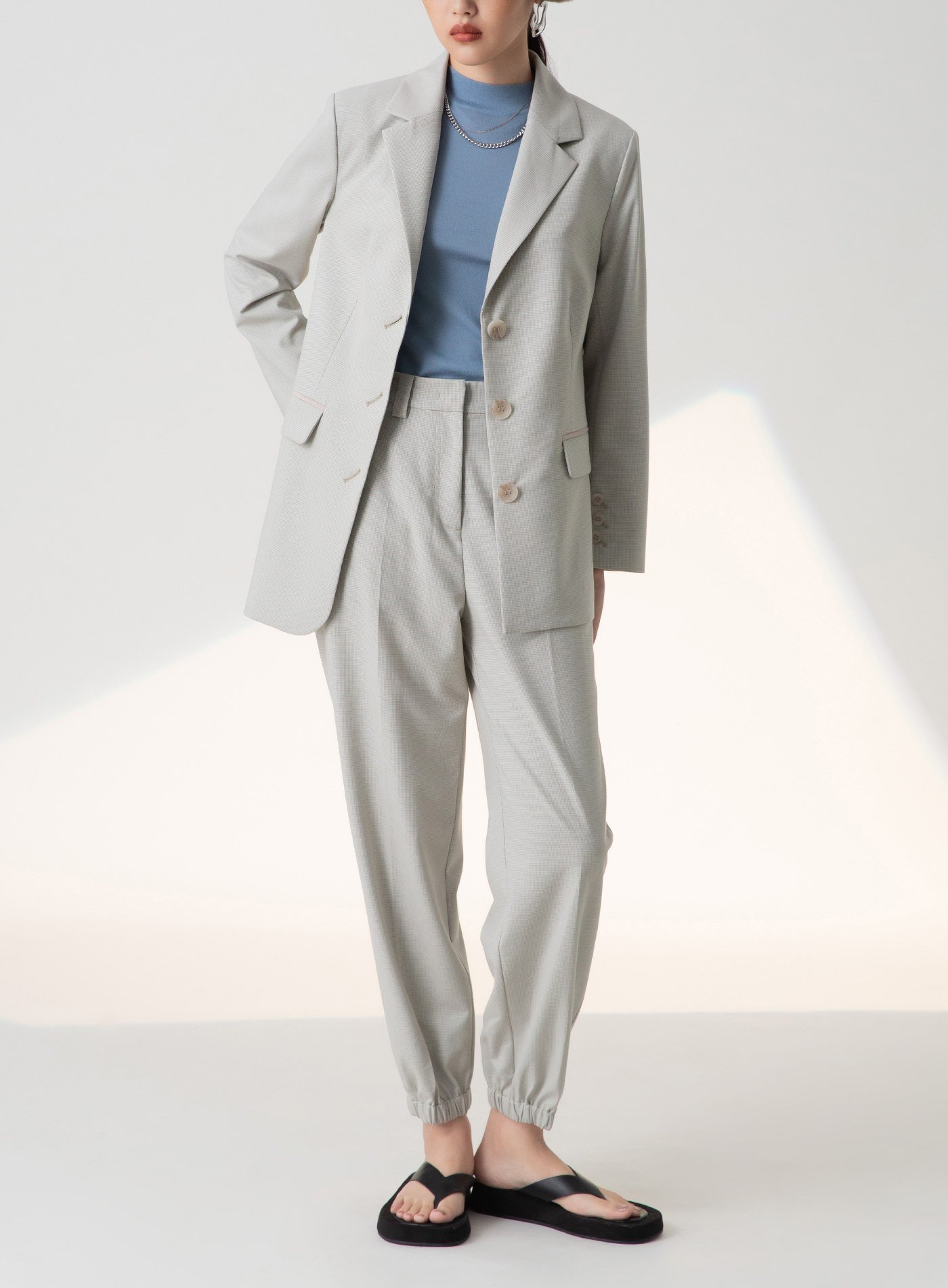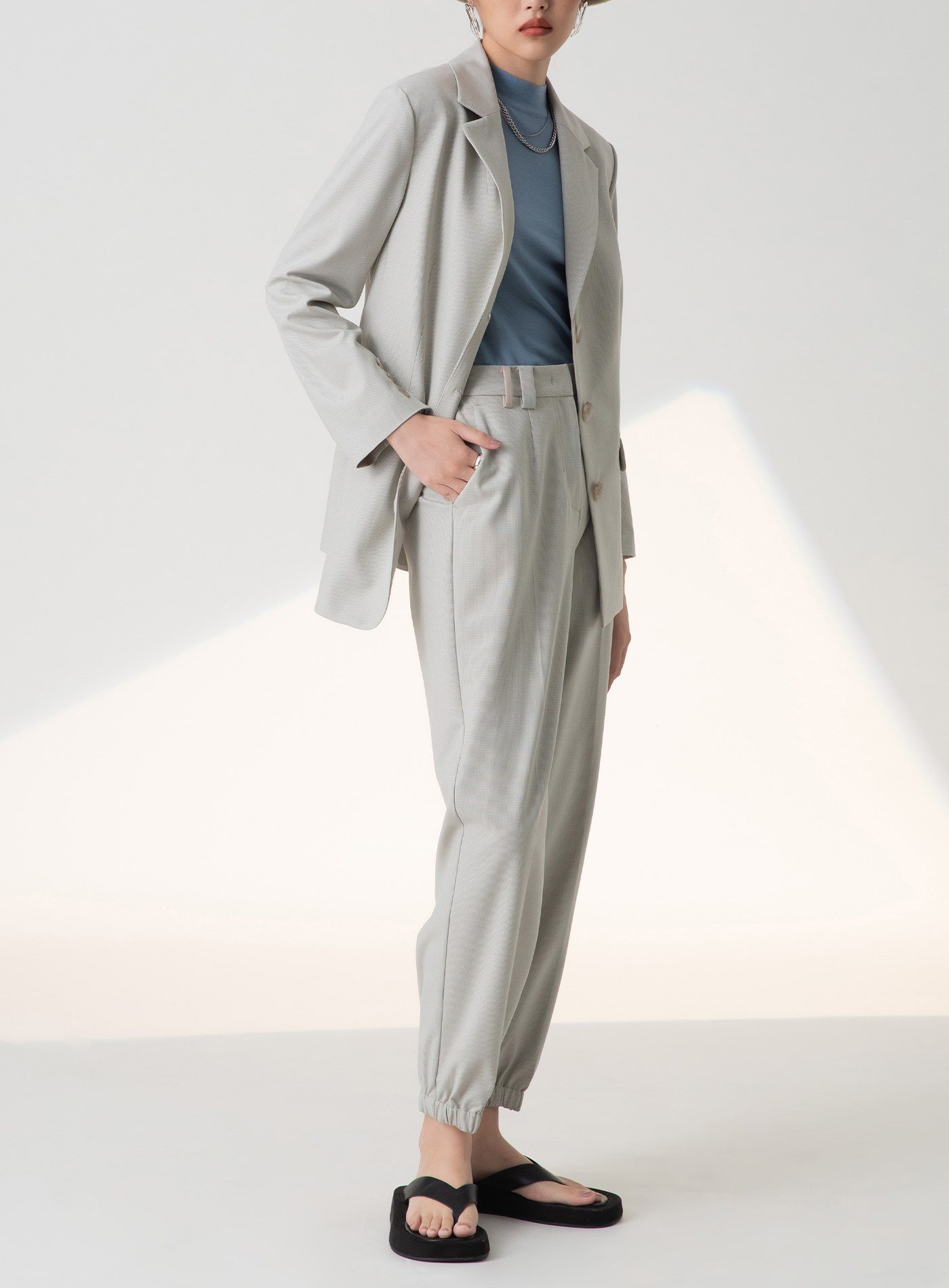 時髦腰頭雙釦側開衩西裝褲$70 USD