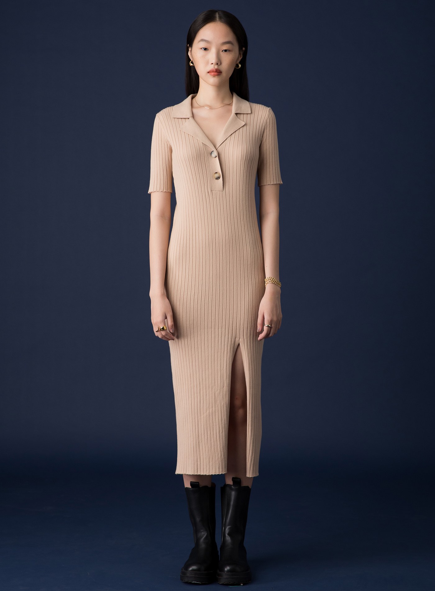 優雅扭結設計開衩洋裝$115 USD