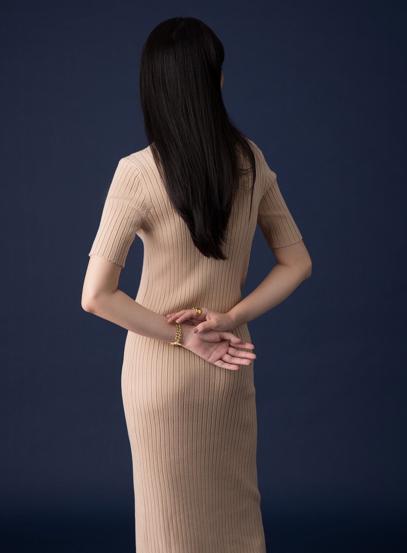 異素材拼接側開衩長洋裝$86 USD