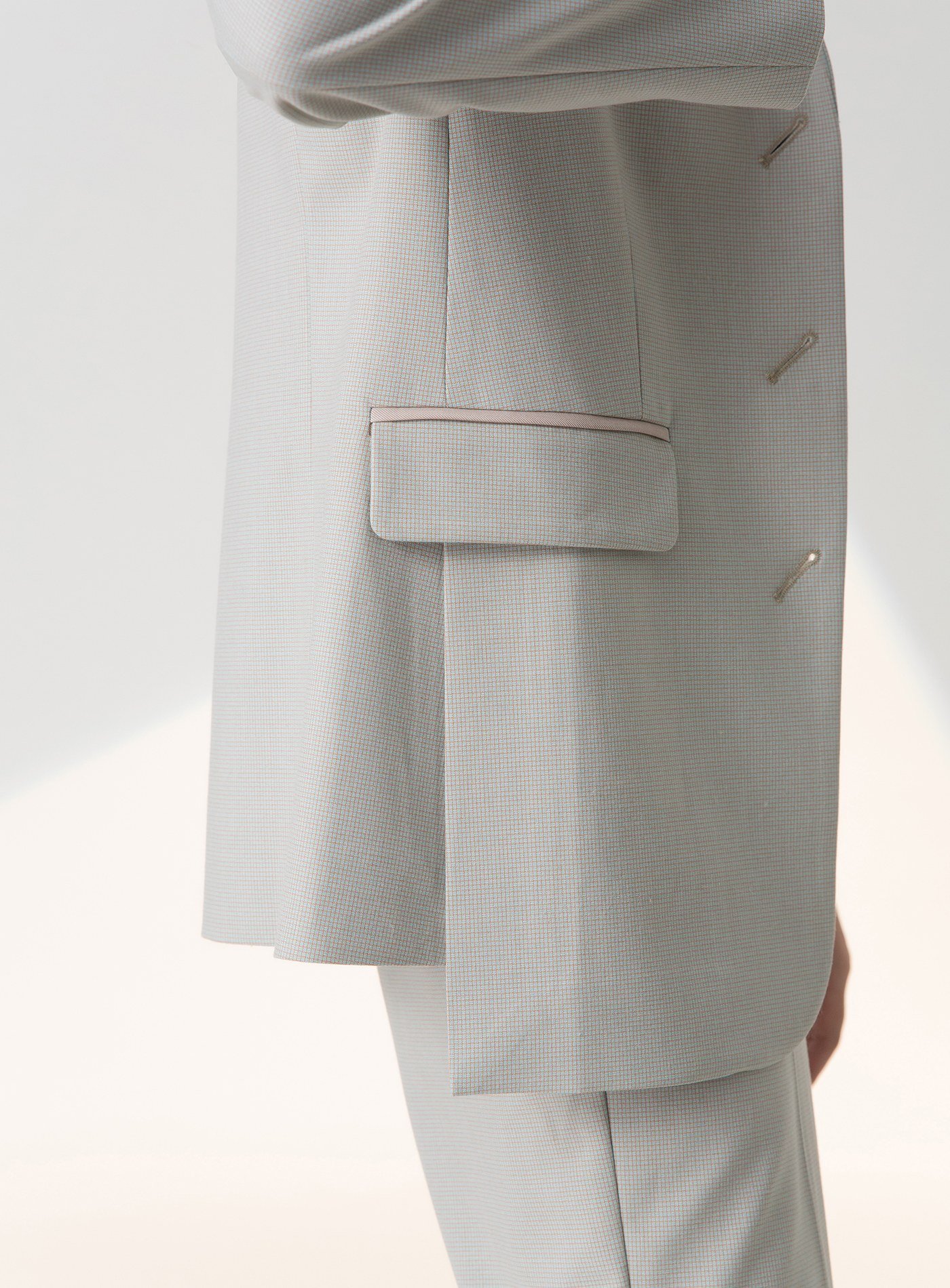 羊毛雙面呢圓領不對稱拼接大衣$191 USD