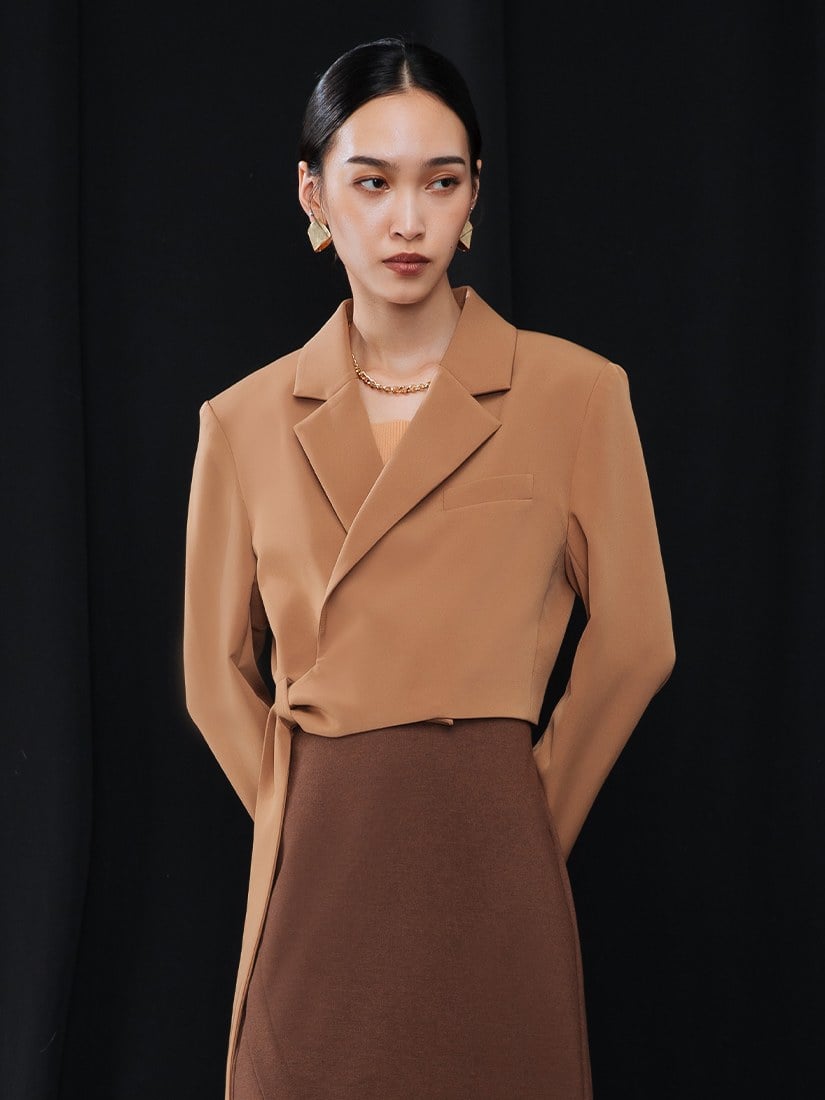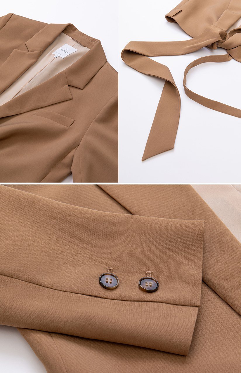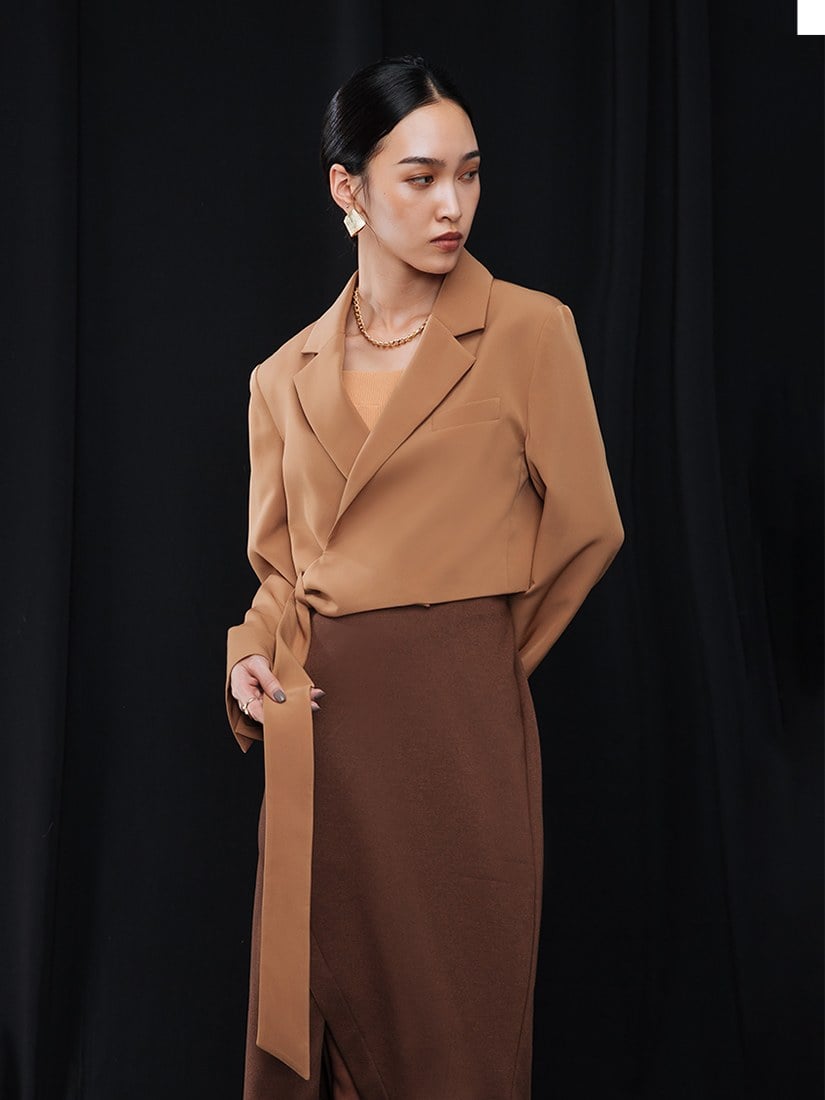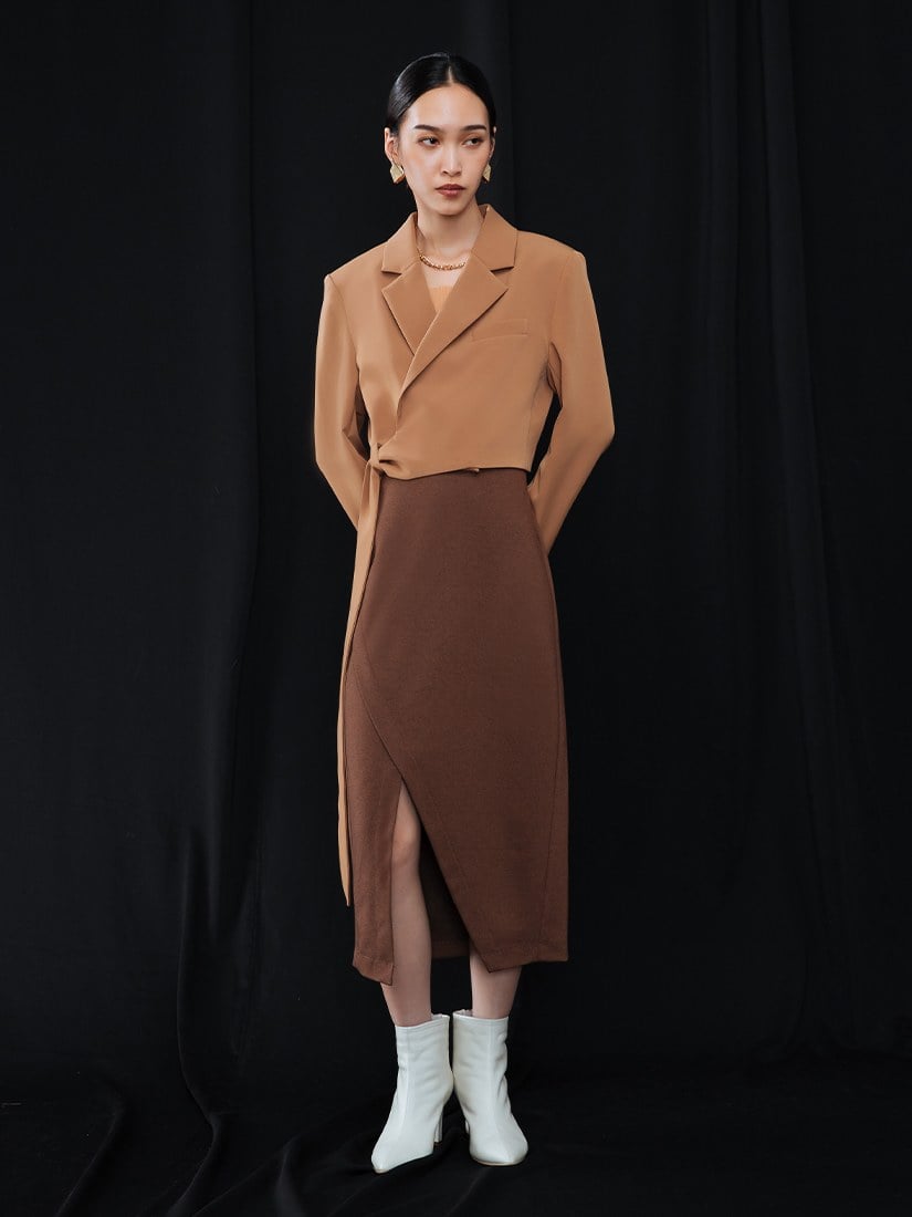 羊毛雙面呢圓領不對稱拼接大衣$191 USD