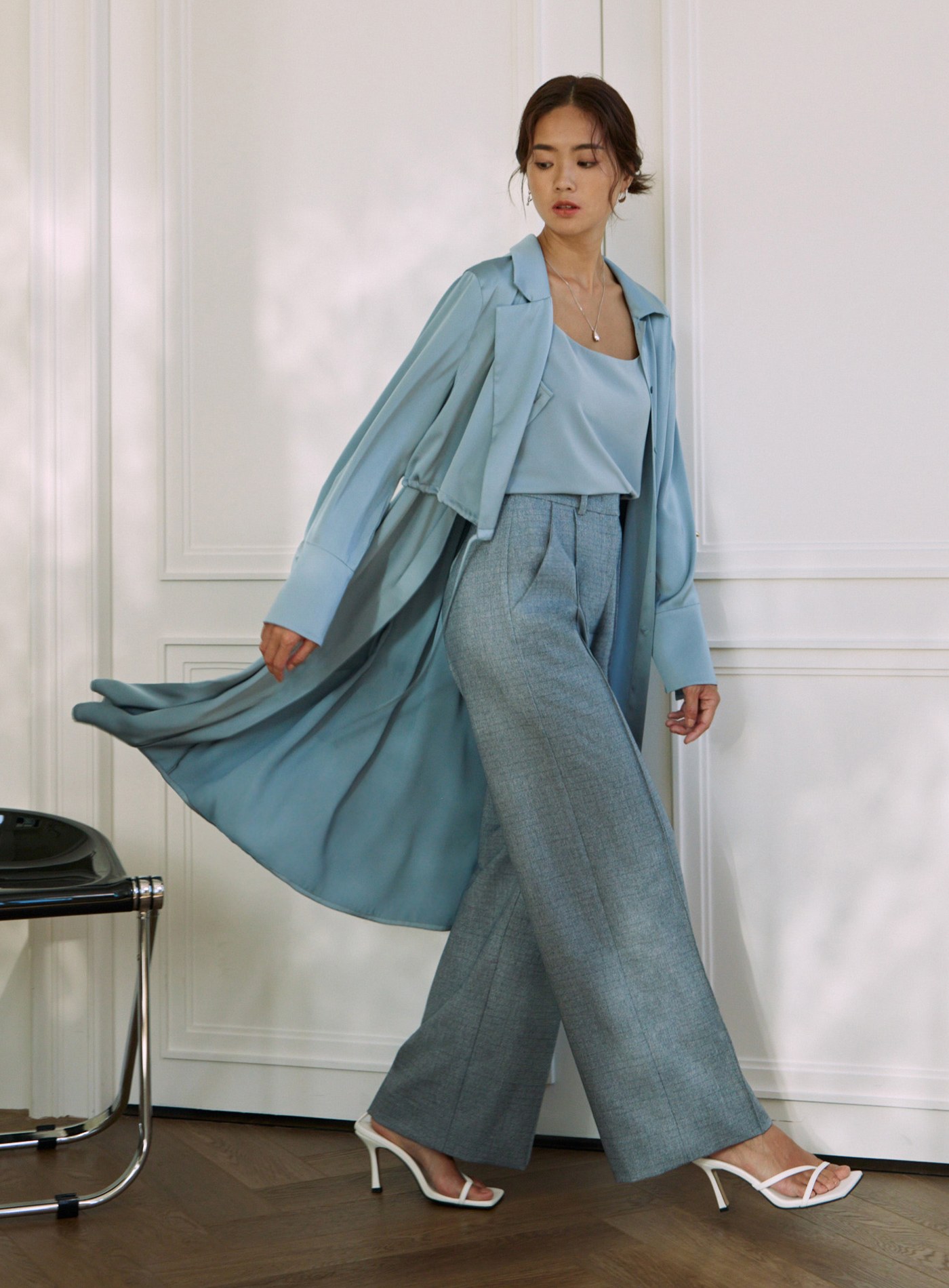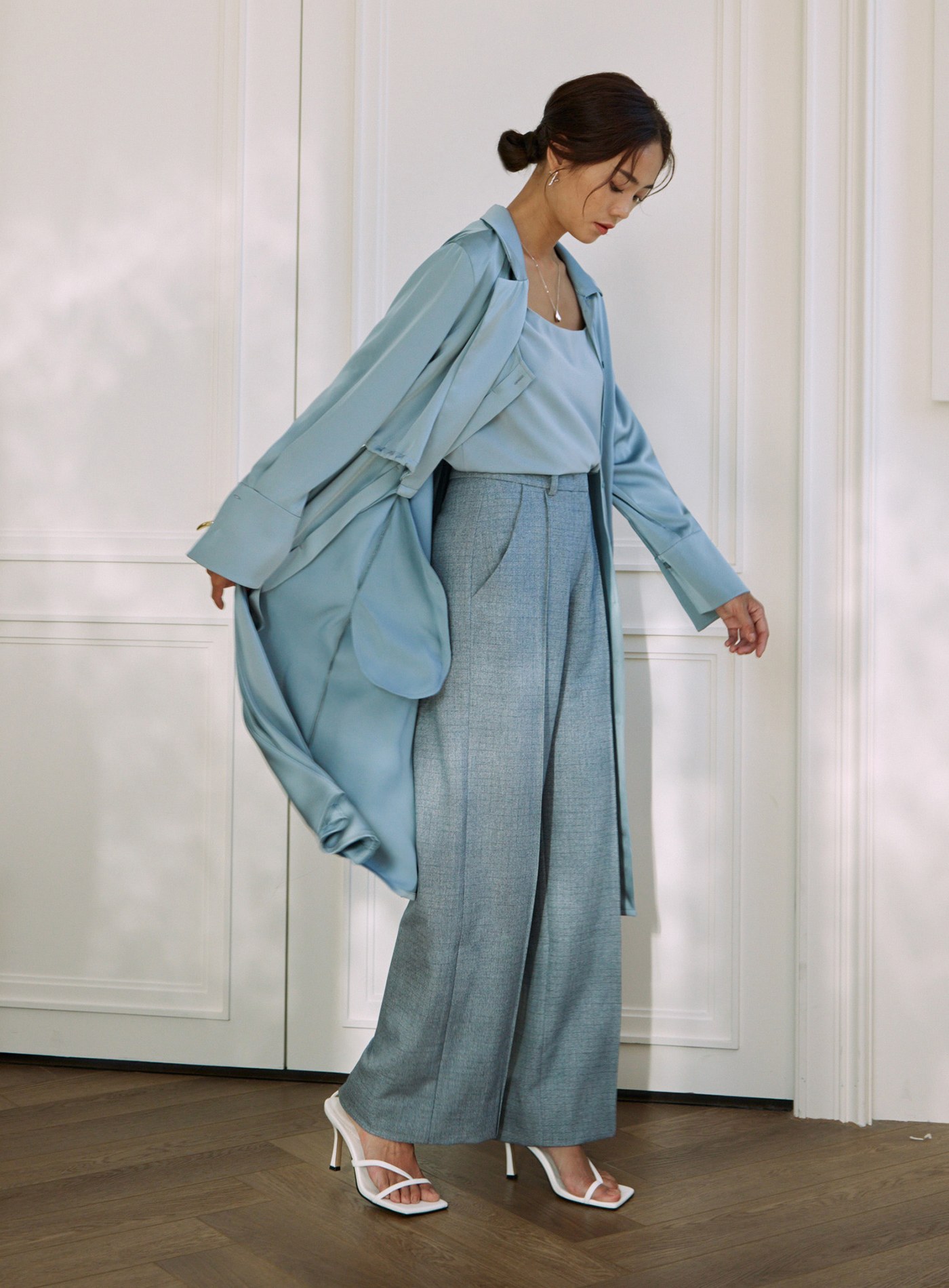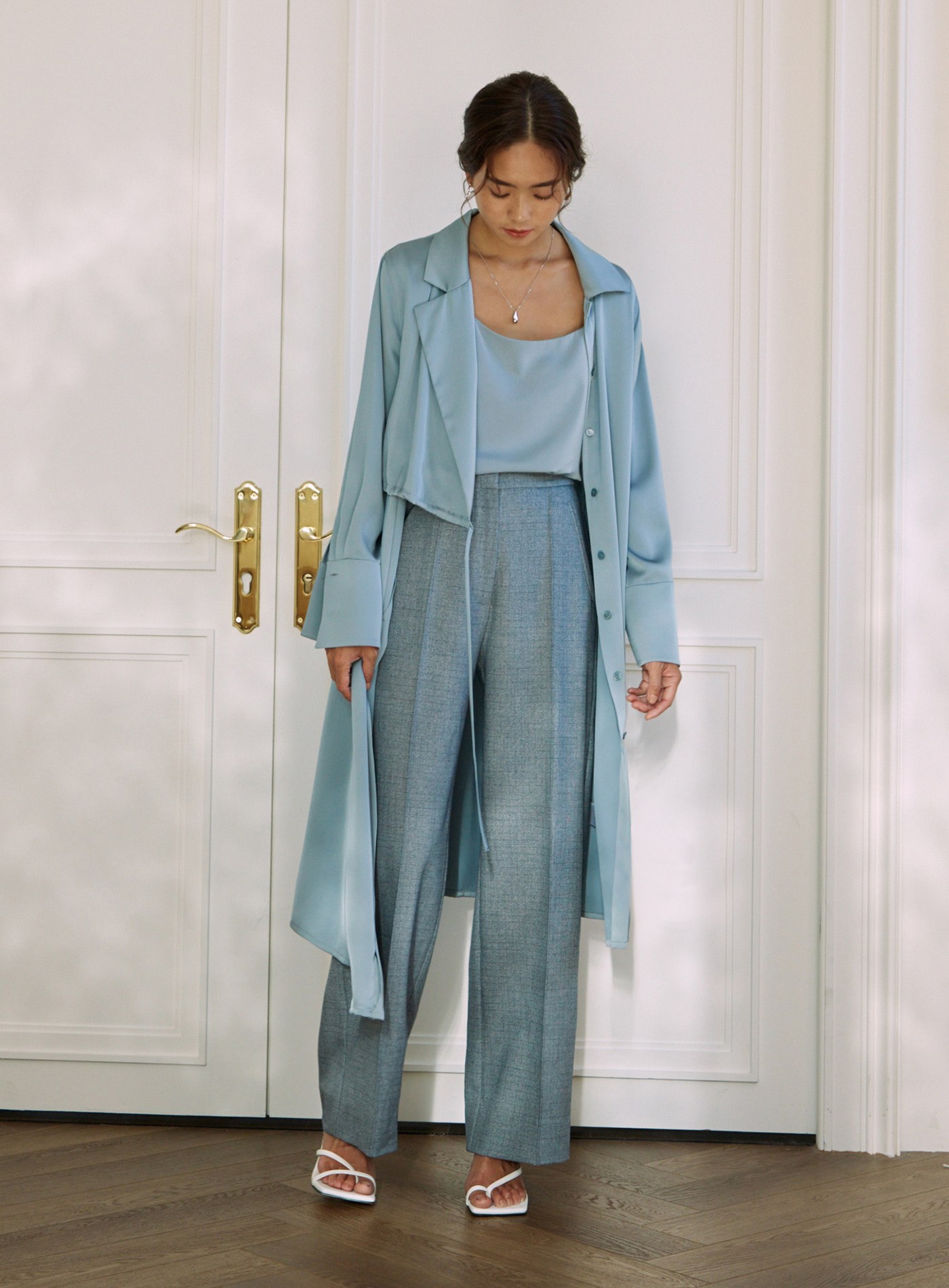 緞面雙扣腰帶褲$70 USD