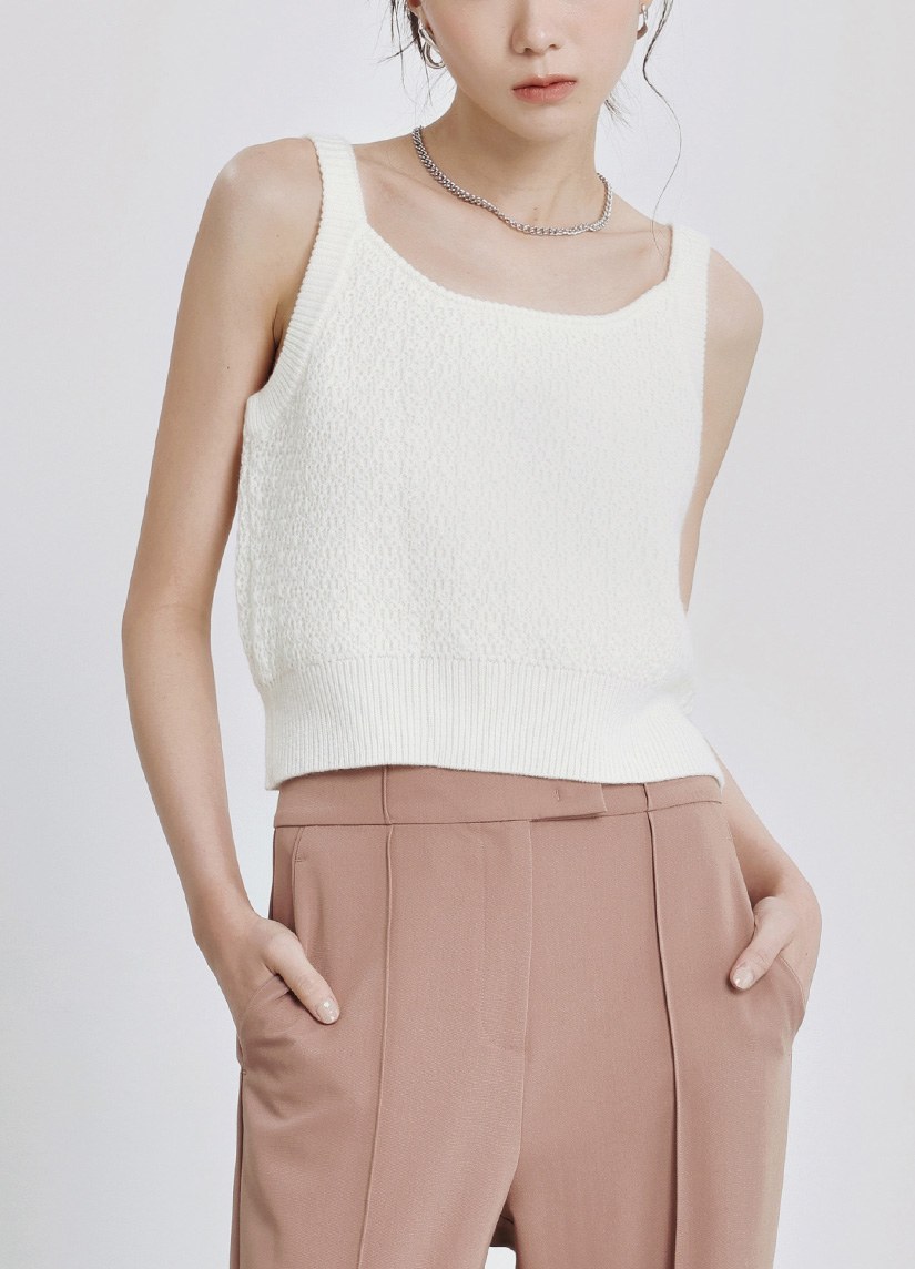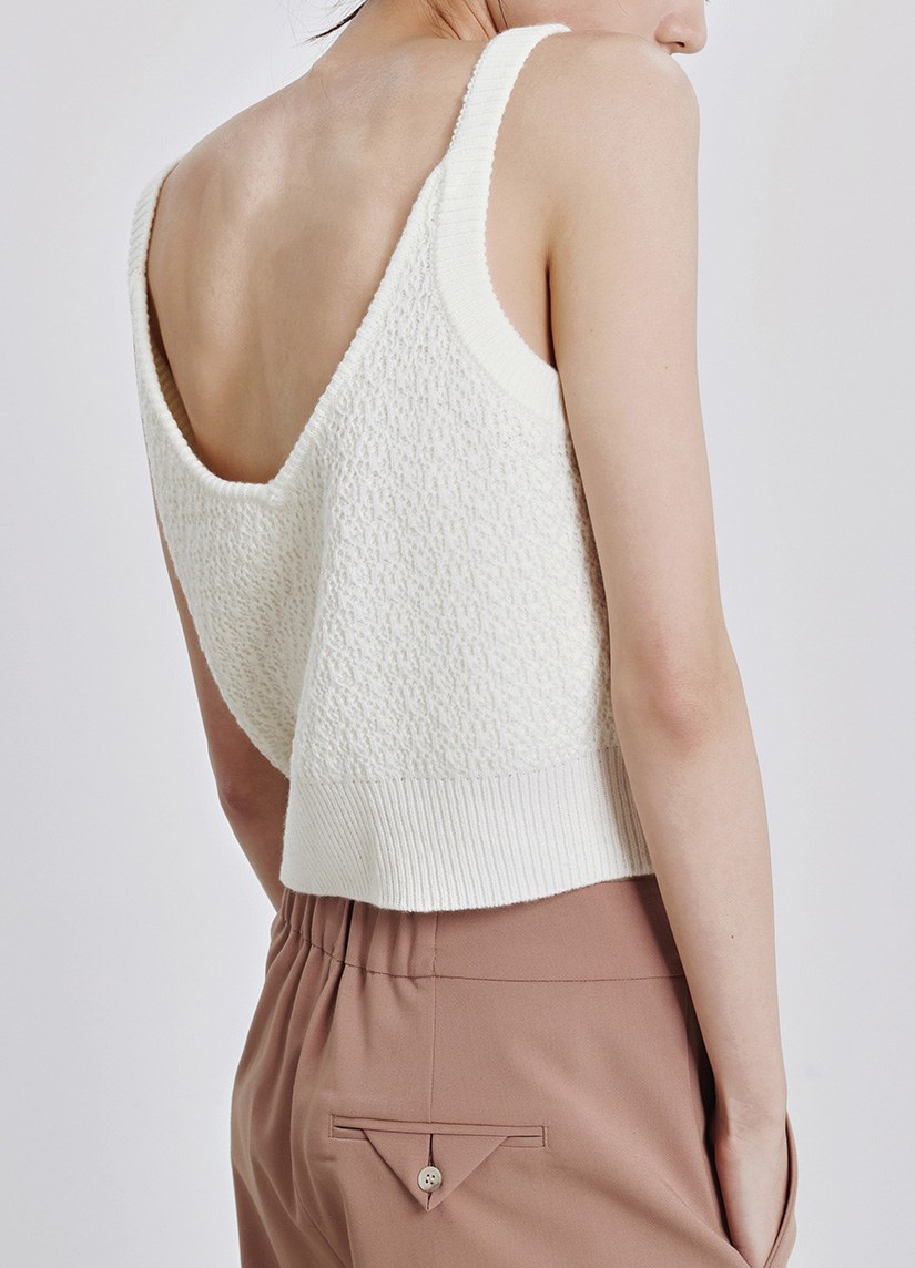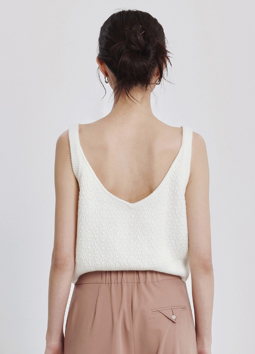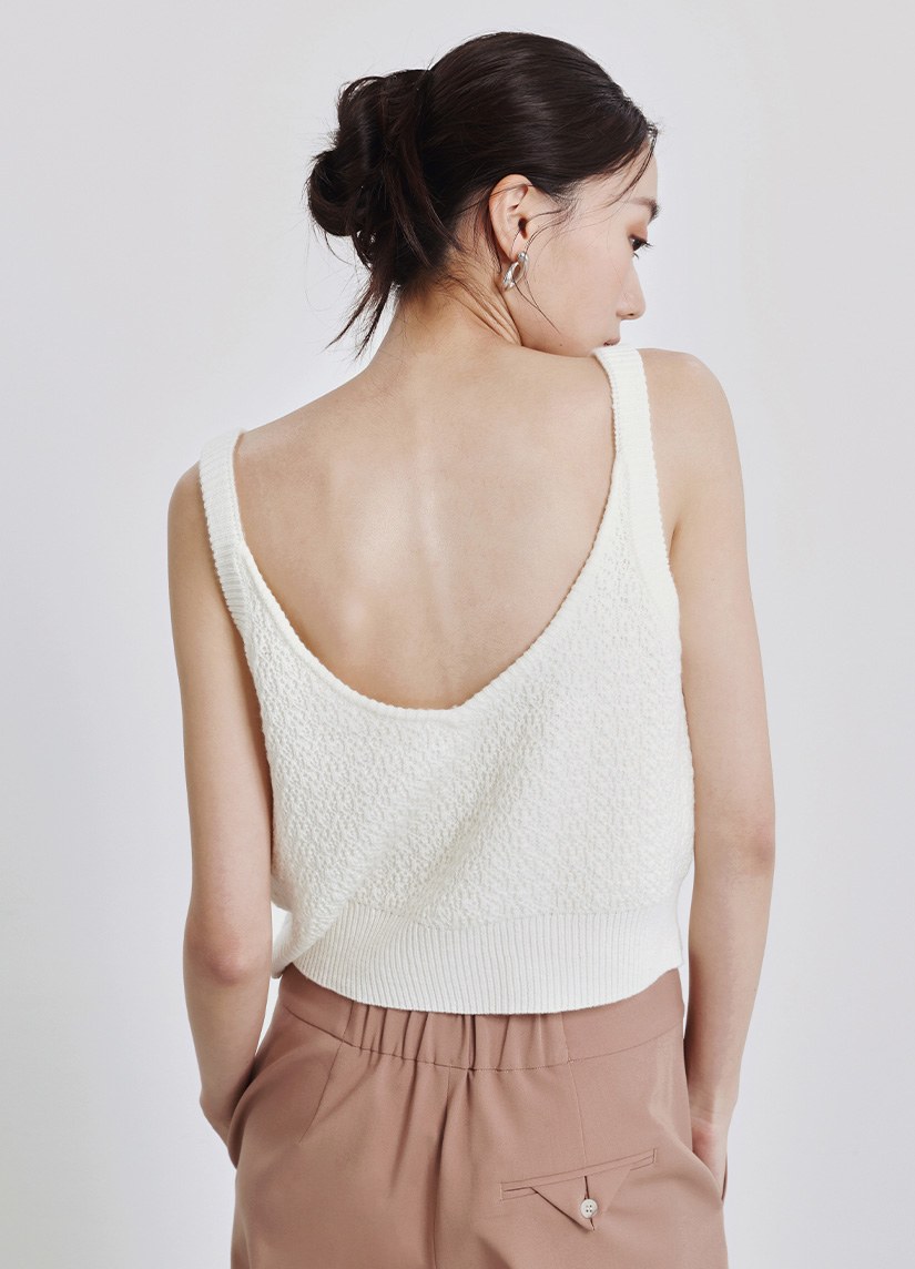 素面背簍空細節短袖上衣$35 USD