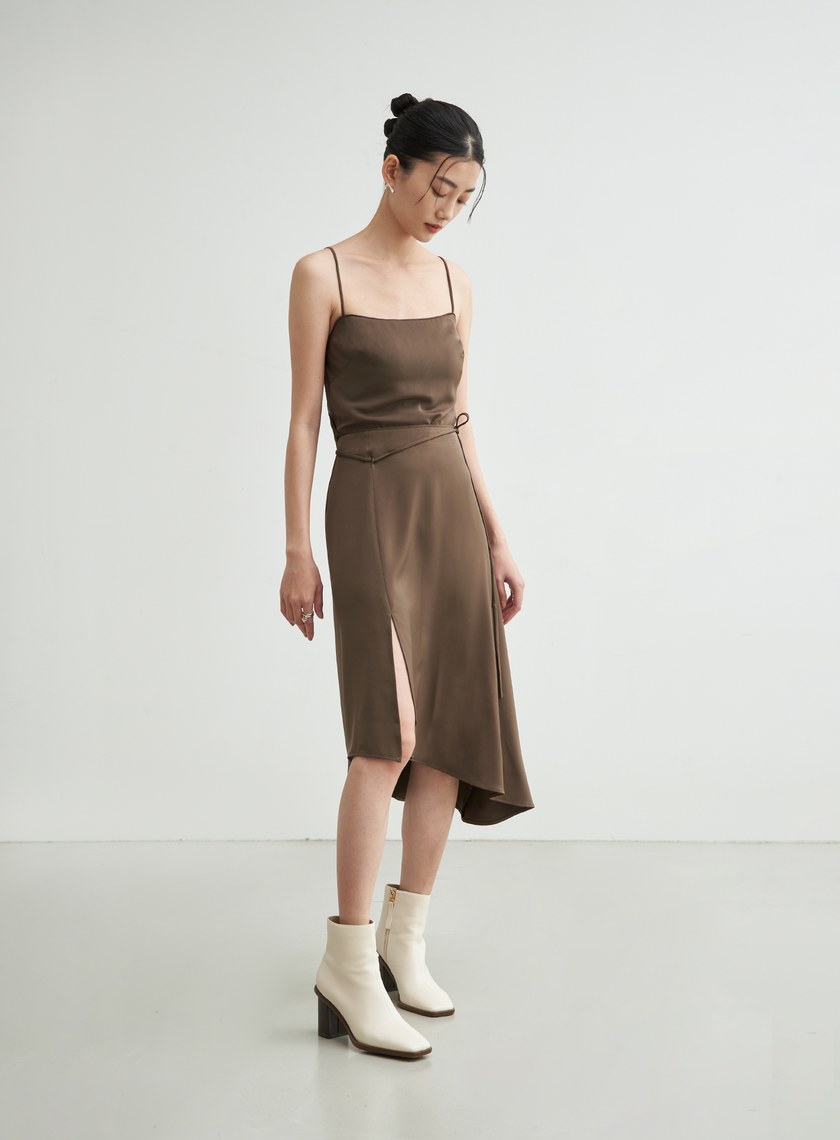 雙層設計直筒腰帶裙$63 USD