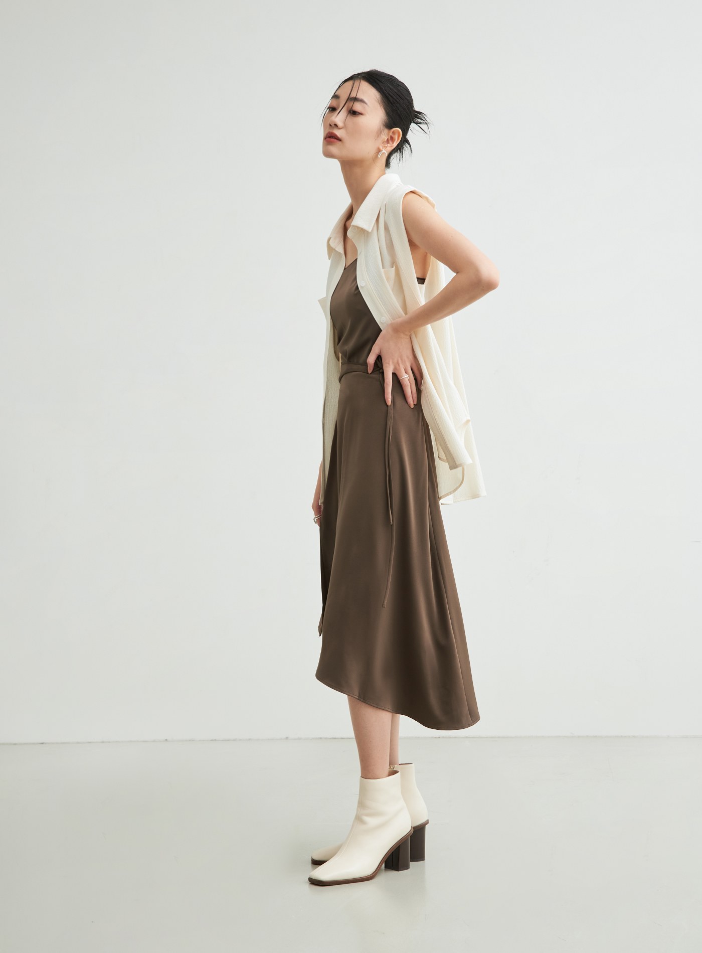 氣質綁帶壓褶直筒長裙$60 USD