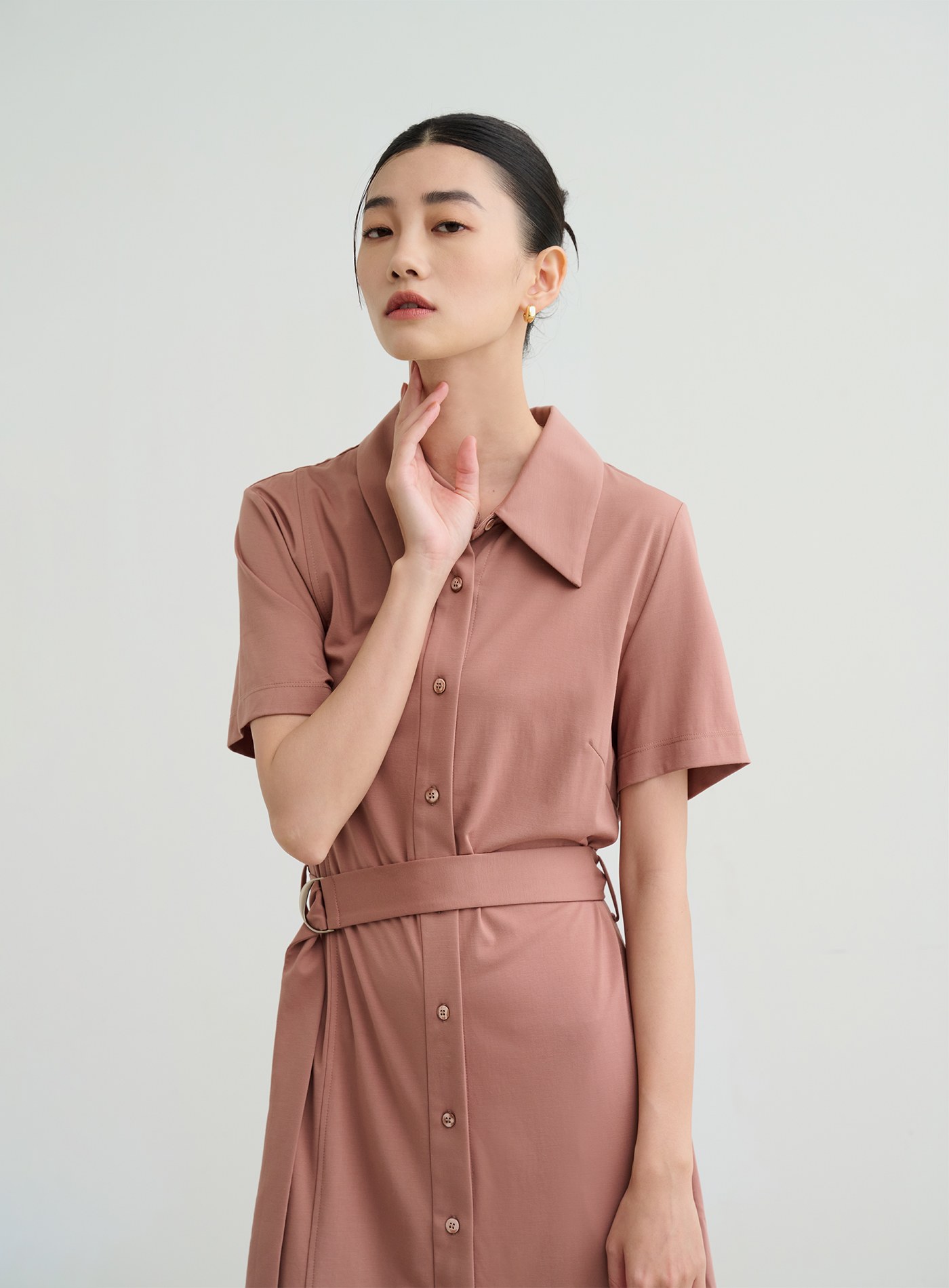 短版尖領俐落短袖襯衫$63 USD
