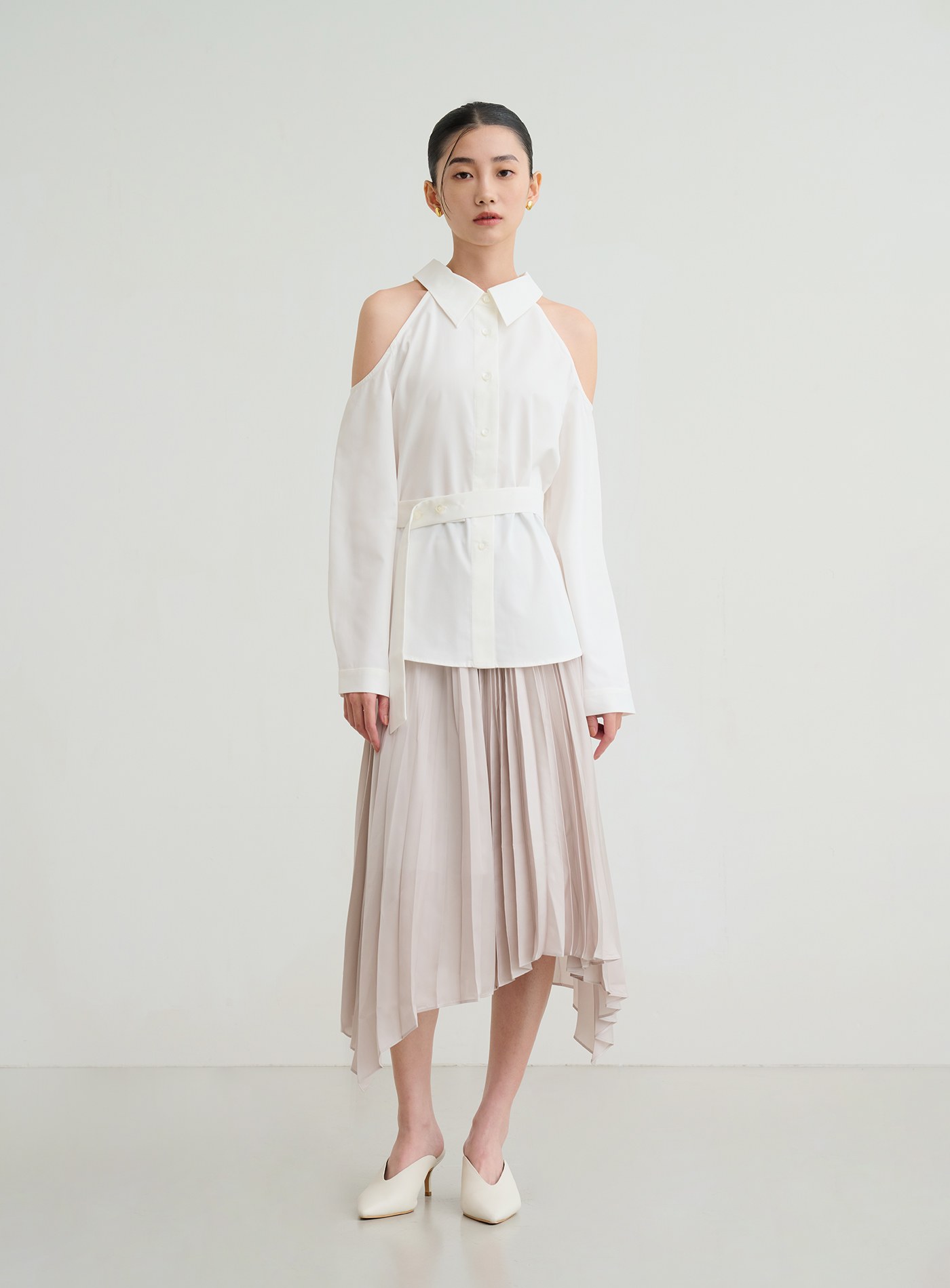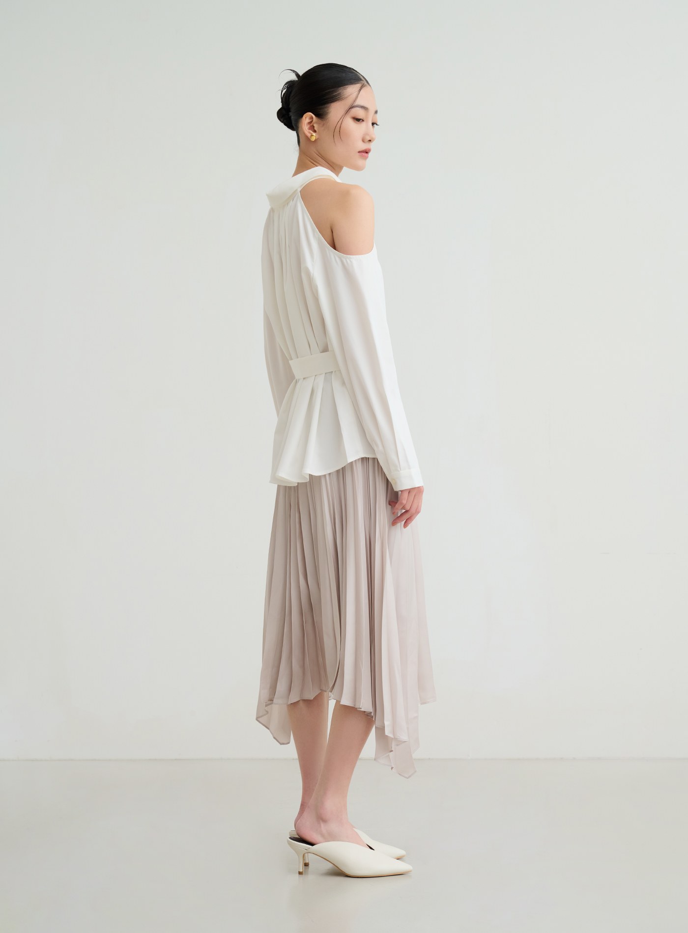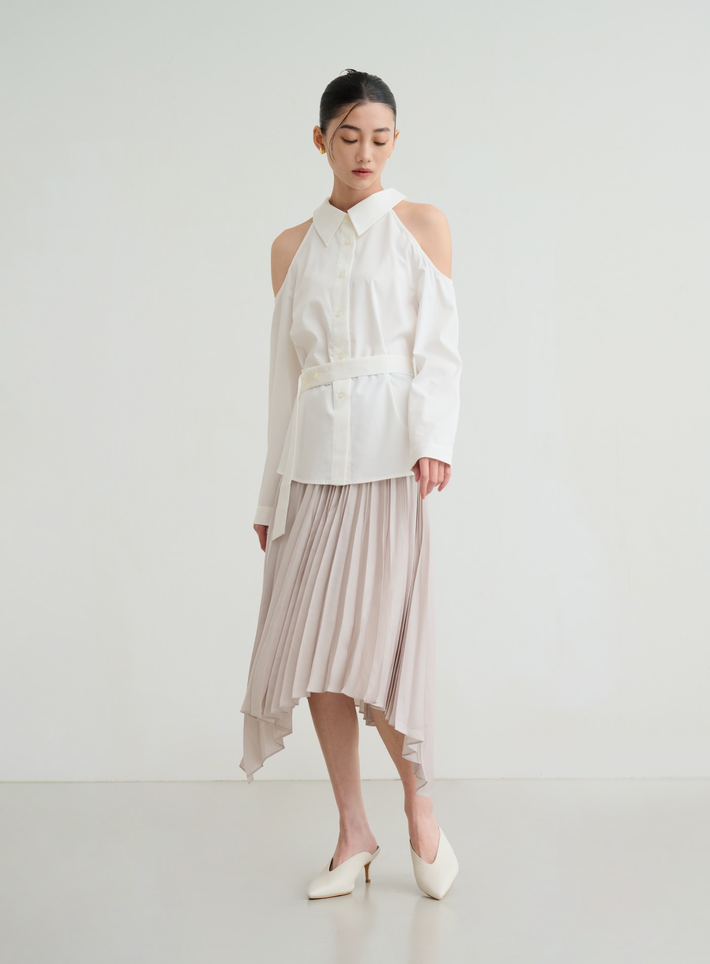 - 腰部折深小且淺修飾腹臀,下擺傘狀打造帥氣的女人味