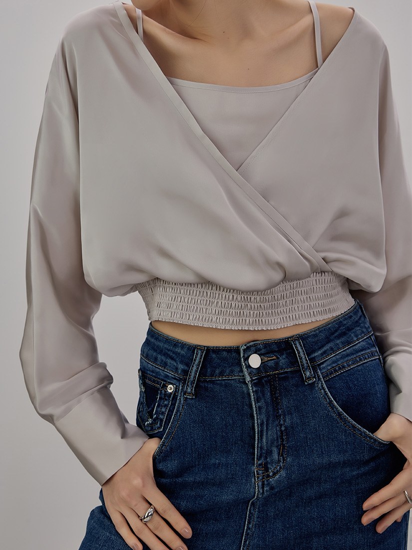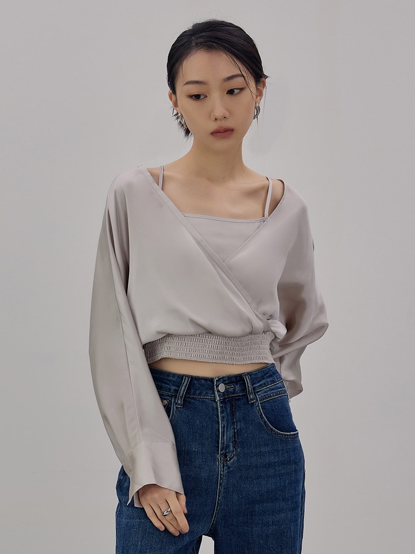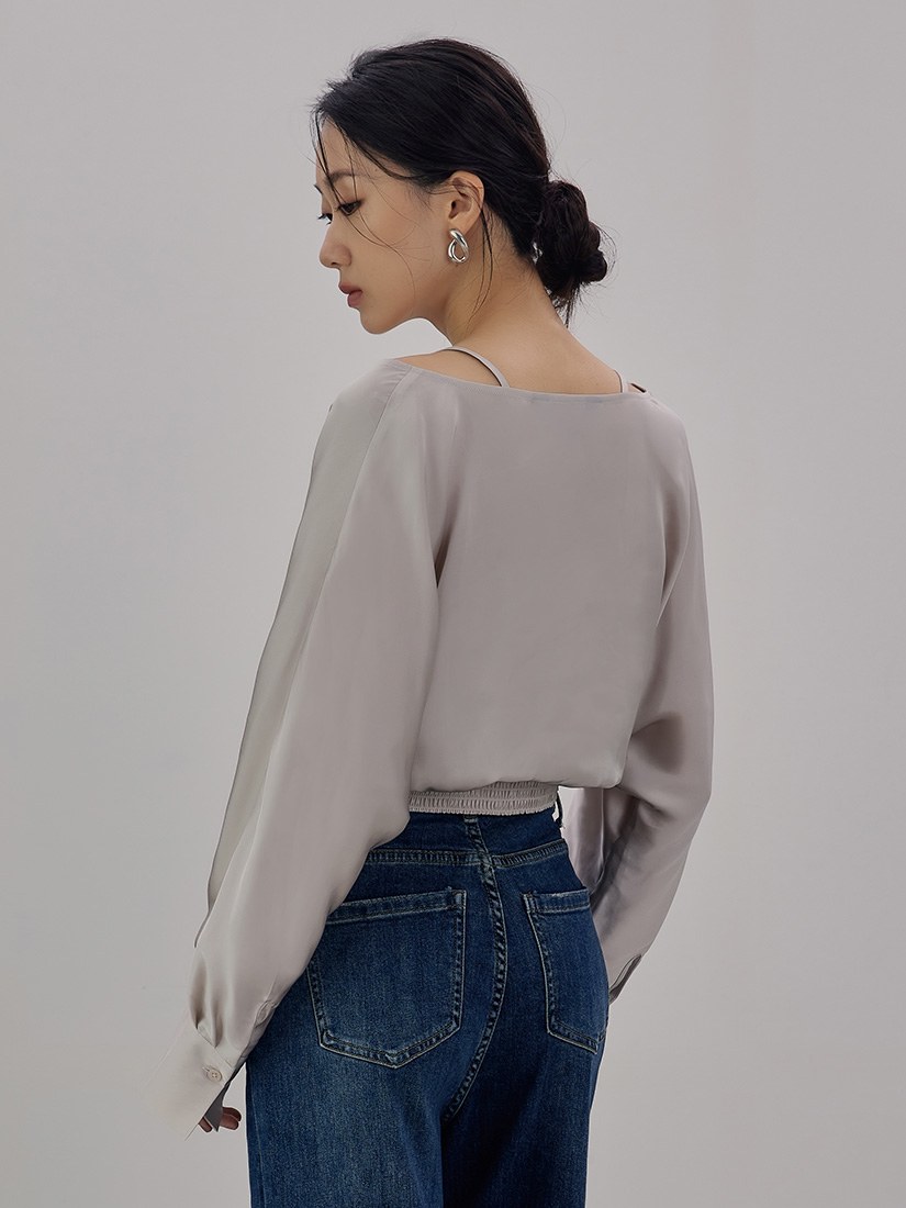 斜領抓褶造型上衣$41 USD