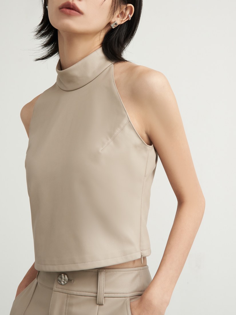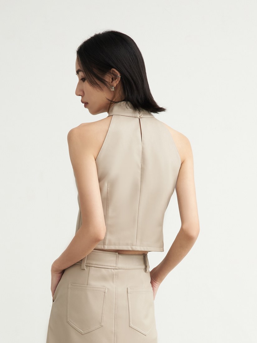 短版俐落寬肩無袖休閒襯杉$60 USD