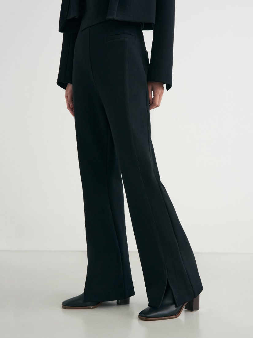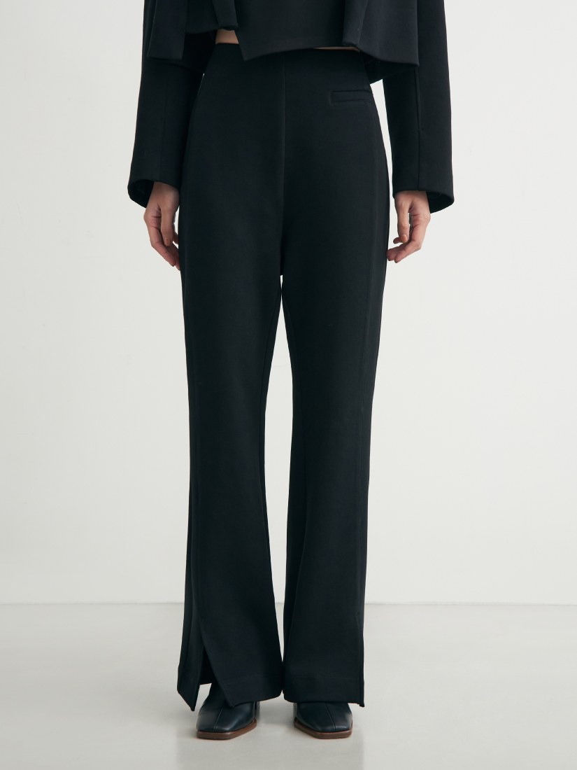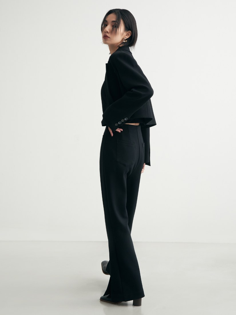 - 直筒微喇叭褲剪裁/前身不對稱裝飾口