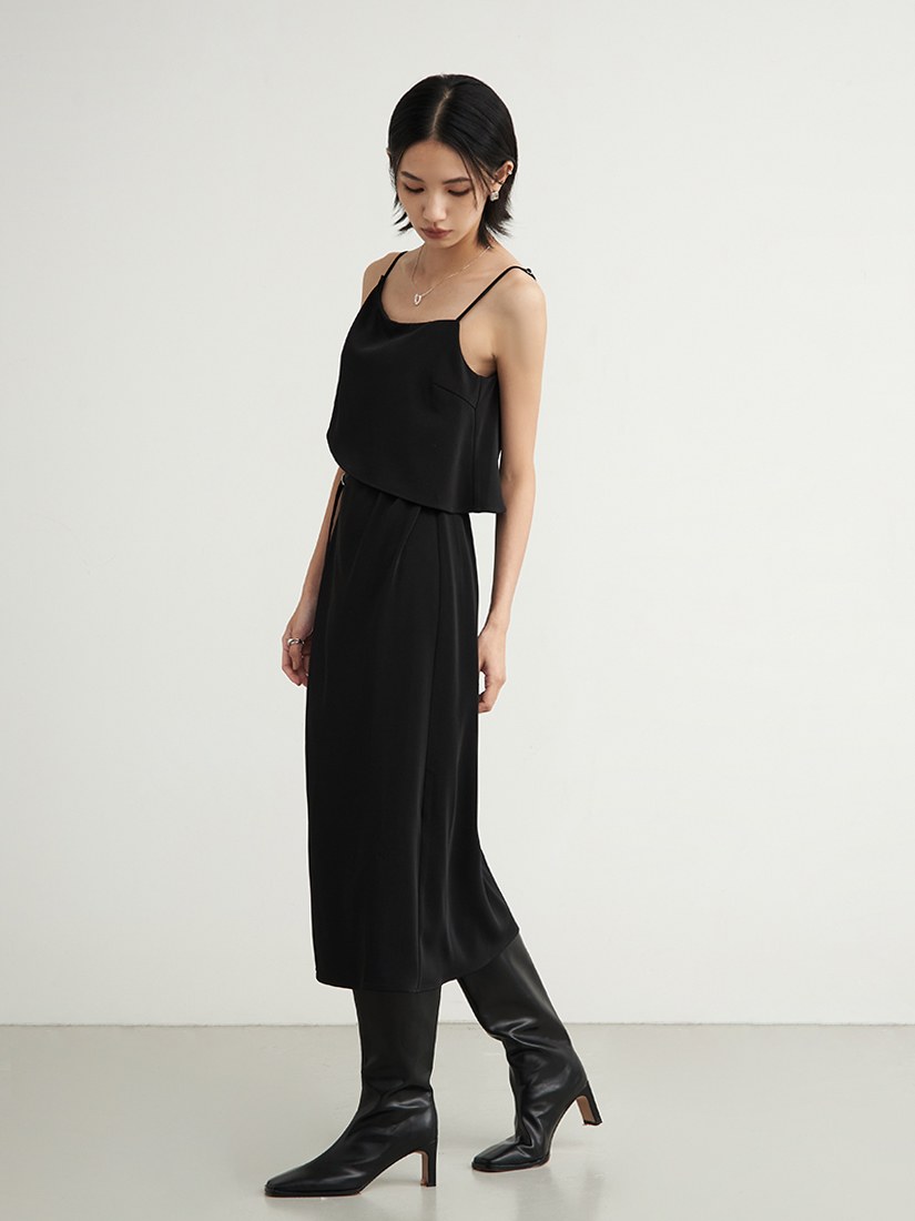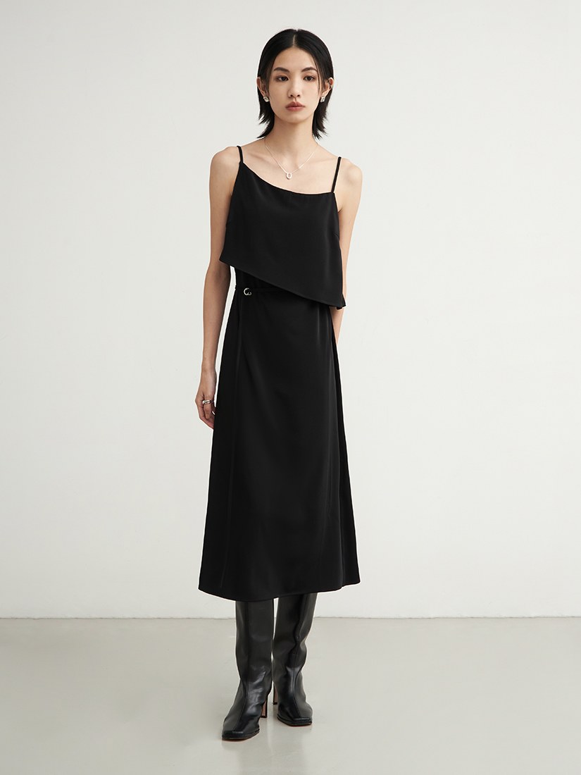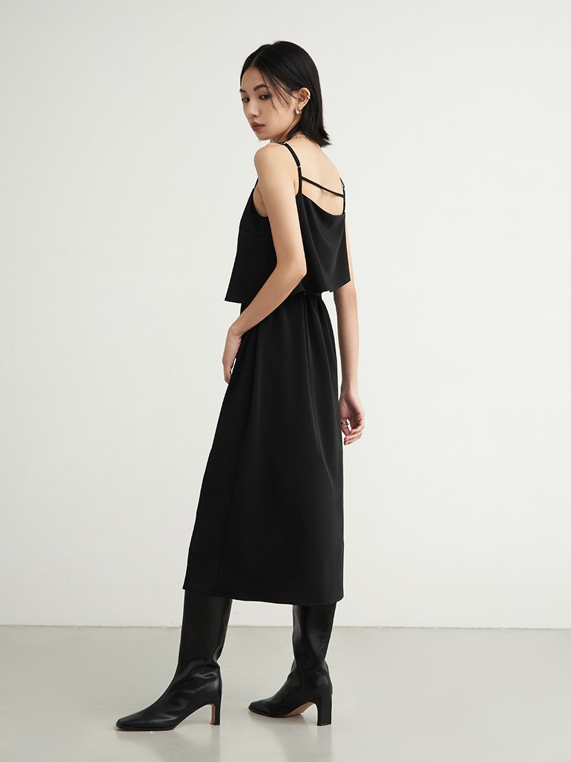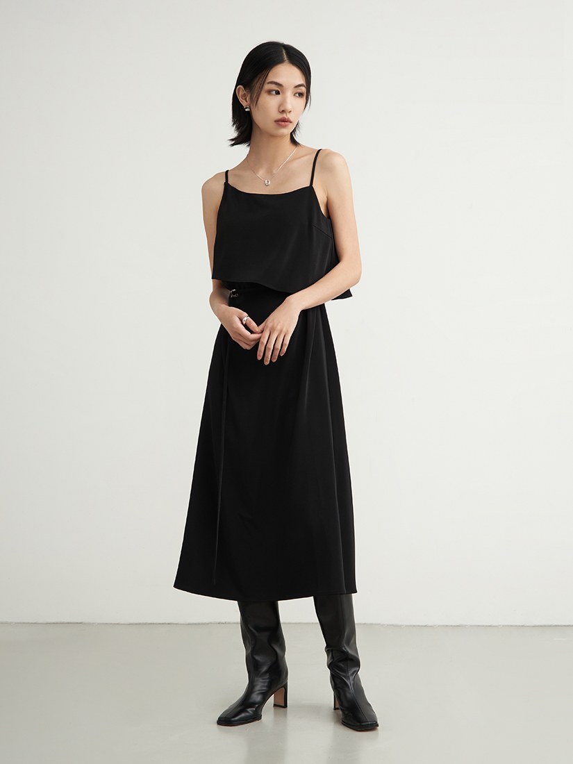 極簡假兩件收腰鏤空洋裝$95 USD
