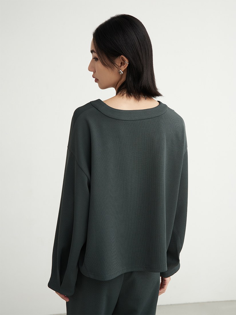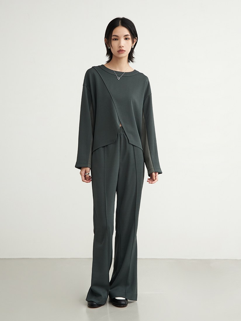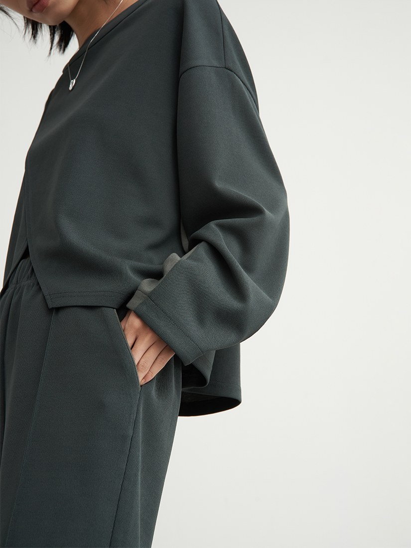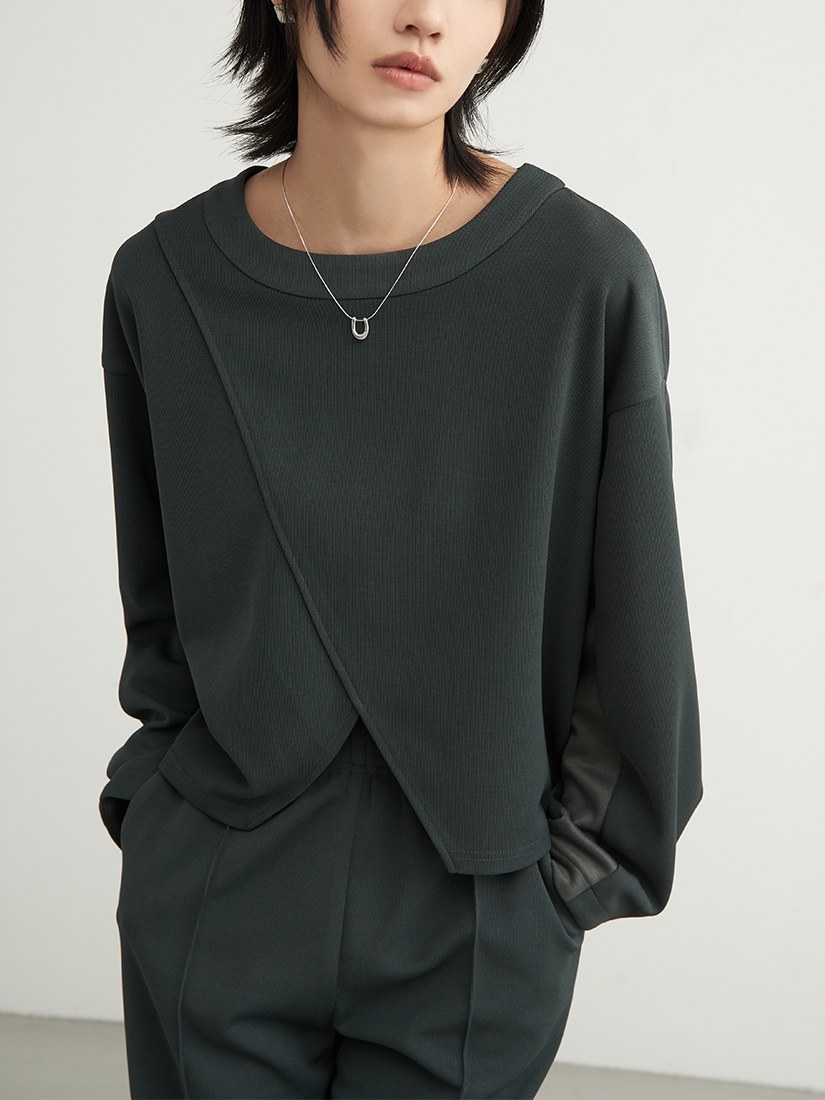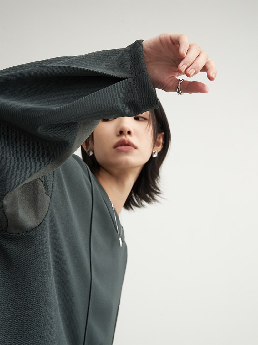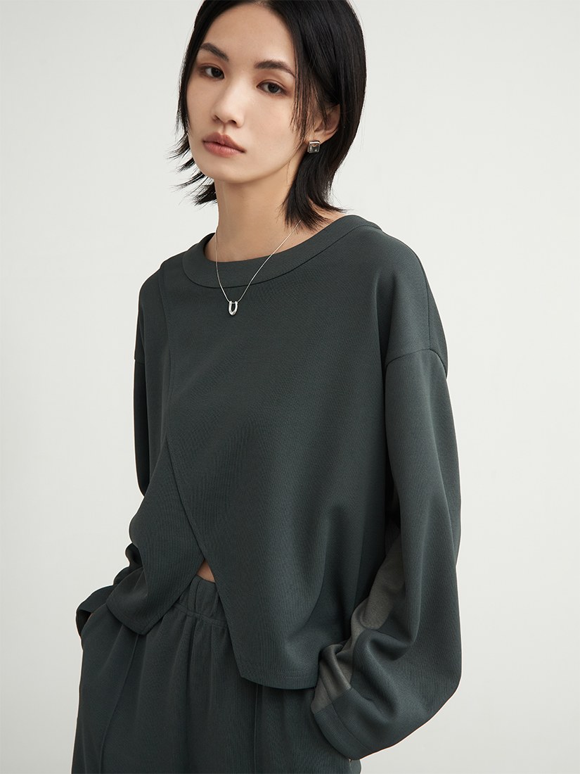 - 落肩微繭形衛衣剪裁/前身不對稱剪接設計/袖口合摺細節