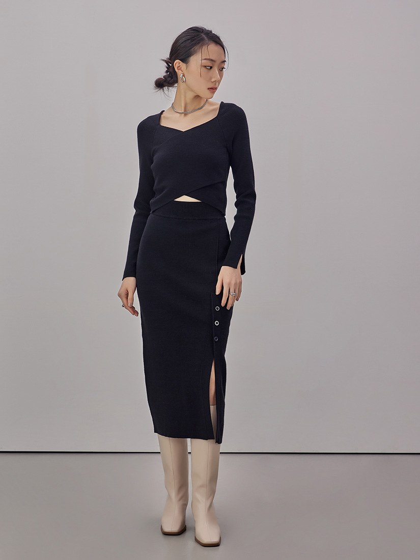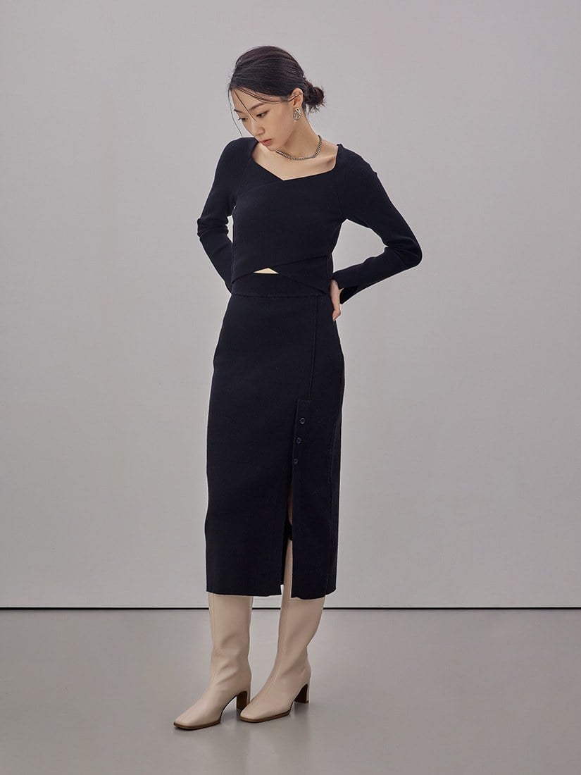 - 可與 '坑條合身針織交叉長袖上衣' 搭成一套