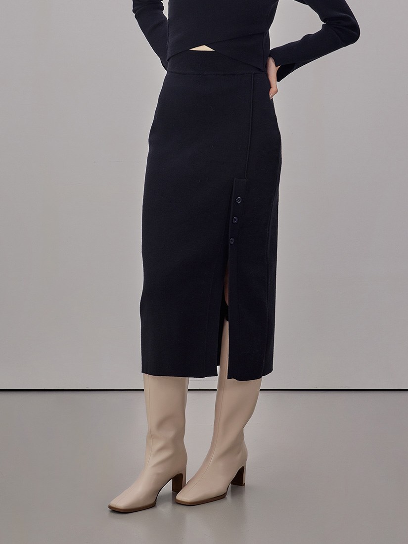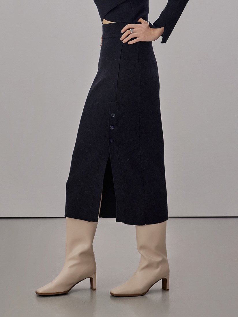 - 高腰針織合身直筒裙型/腰部鬆緊帶設計,穿著更舒適穩定