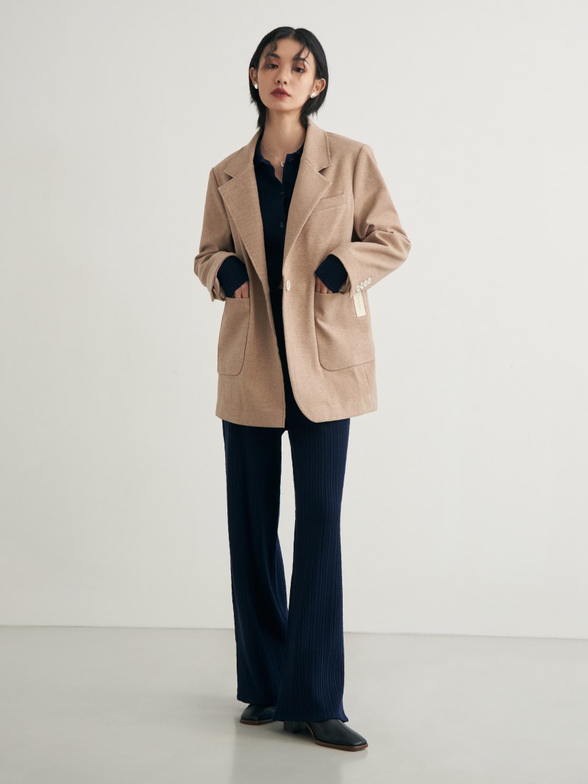 - 可與 '舒適坑條針織長袖上衣' 搭成一套
