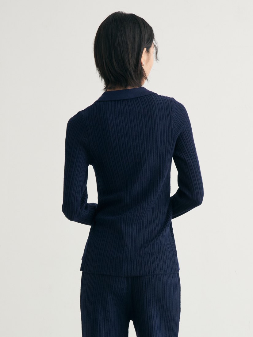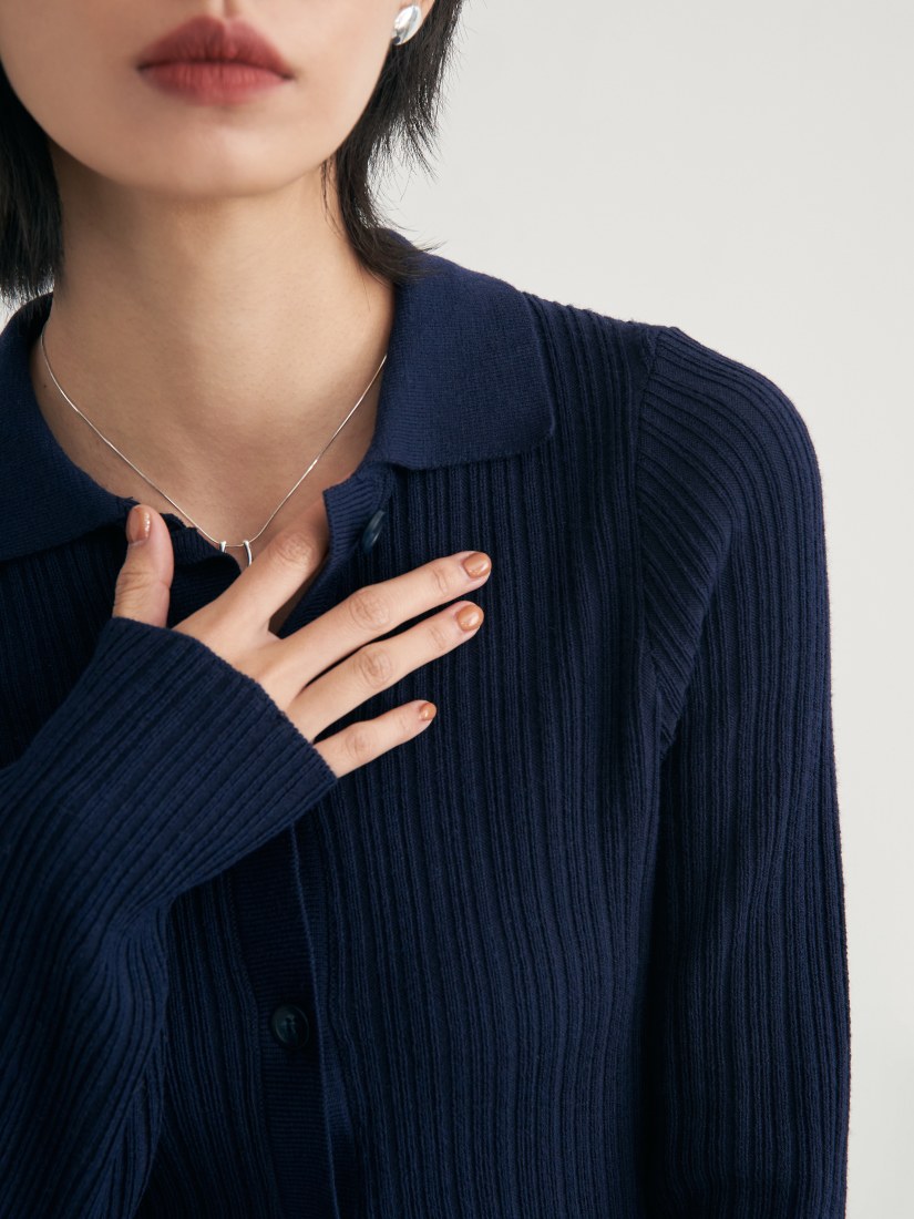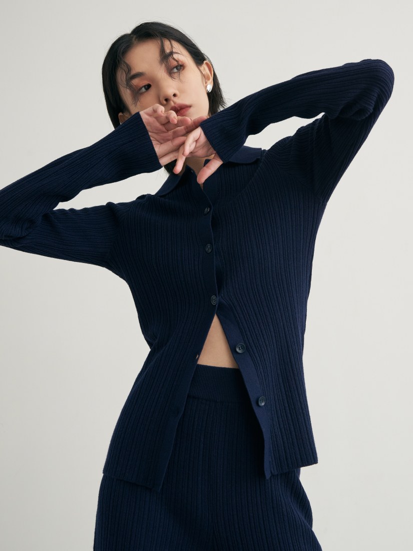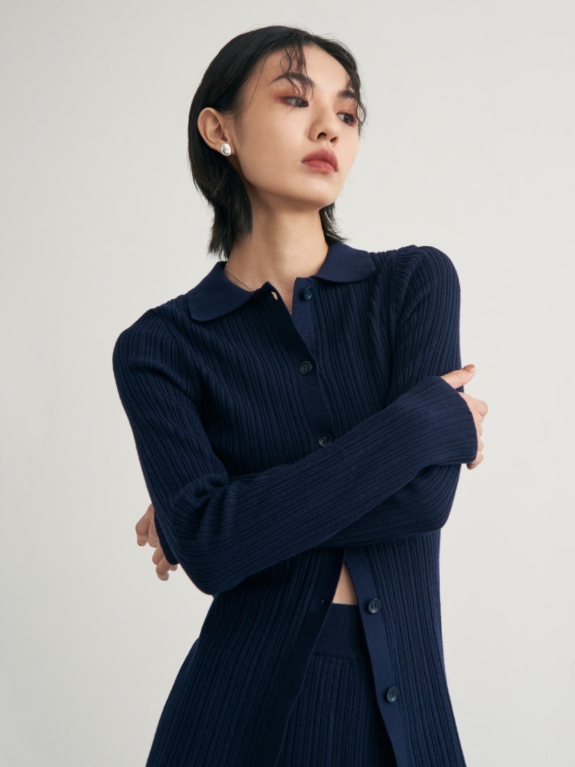 • 基本襯衫領針織衫/合身不貼身/衣長較長可修飾臀部線條