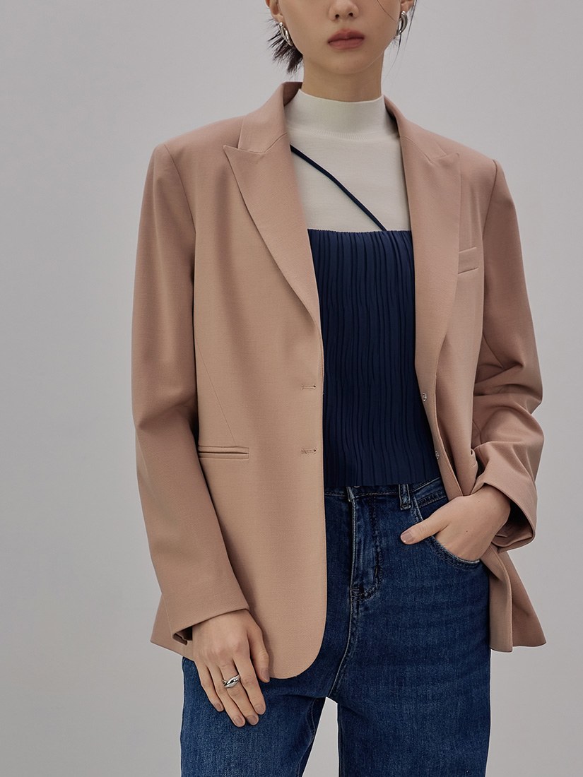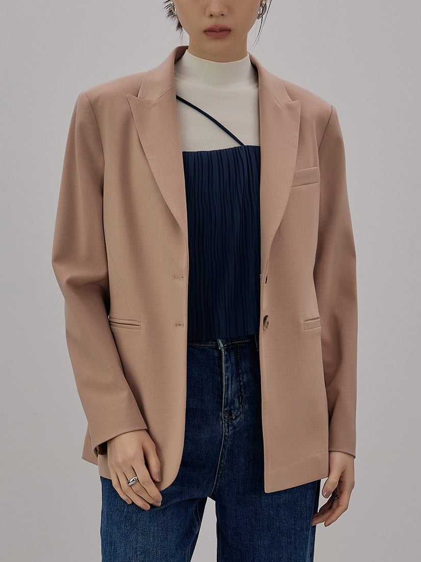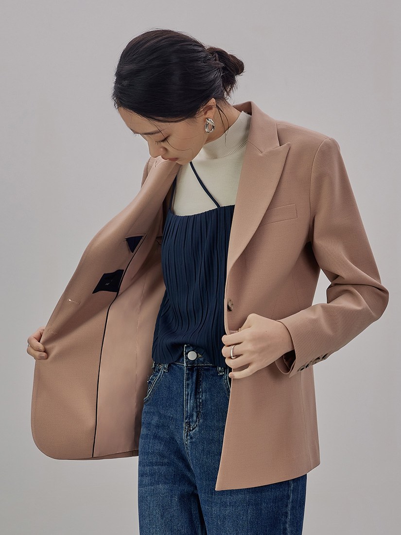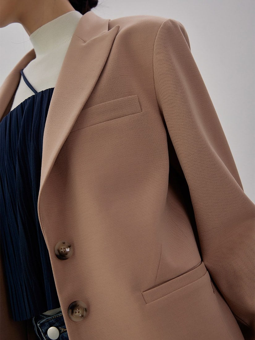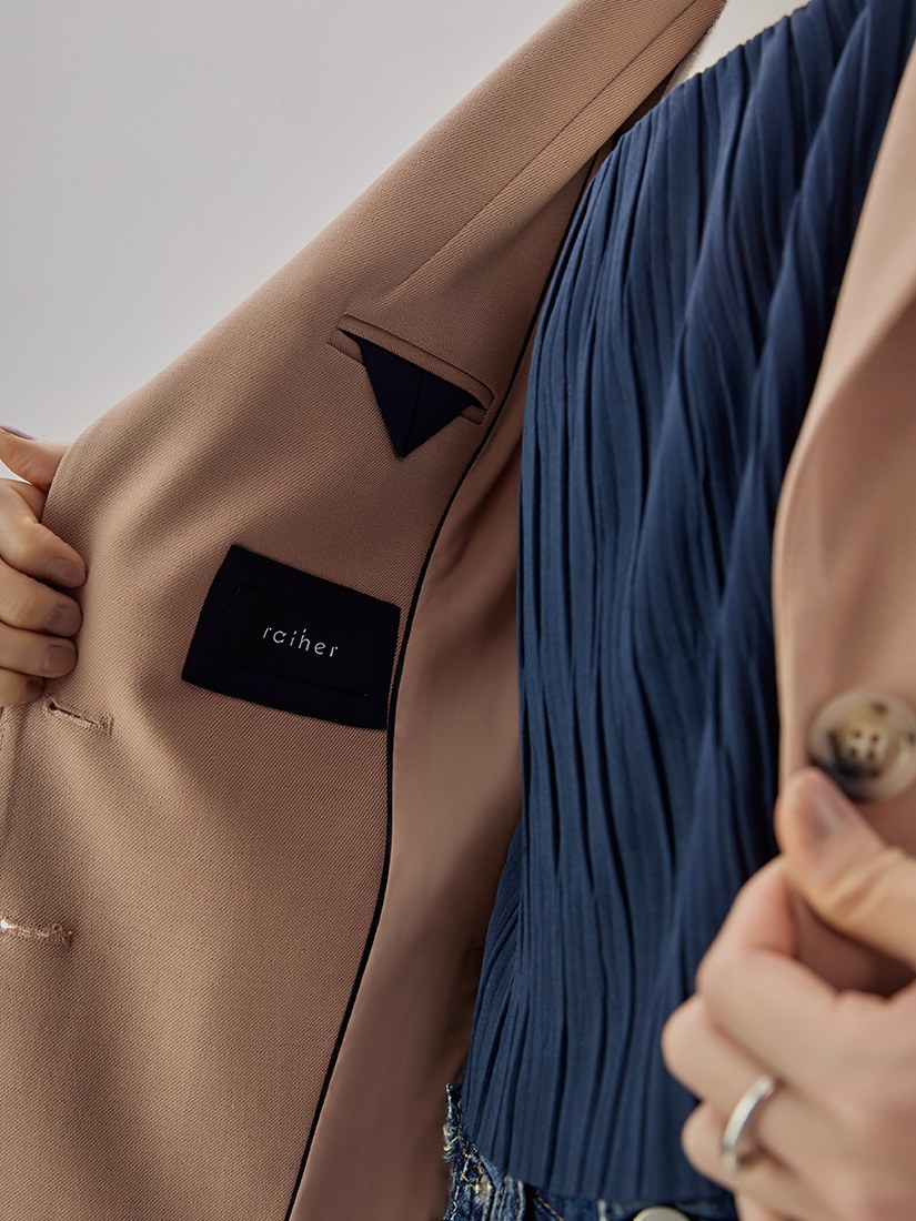 - 前身斜切式剪接線,特殊兩顆釦位排列,跳脫一般單釦西裝的氛圍