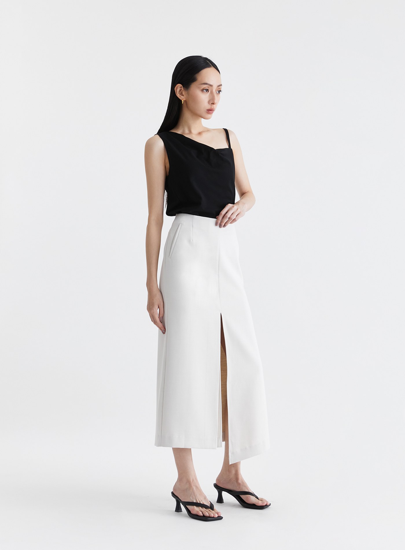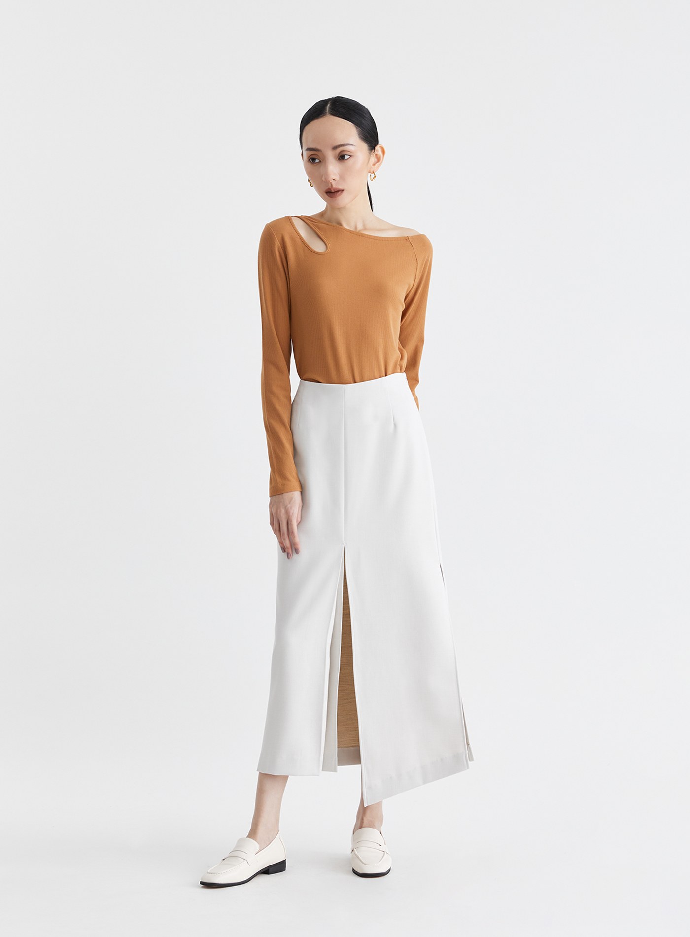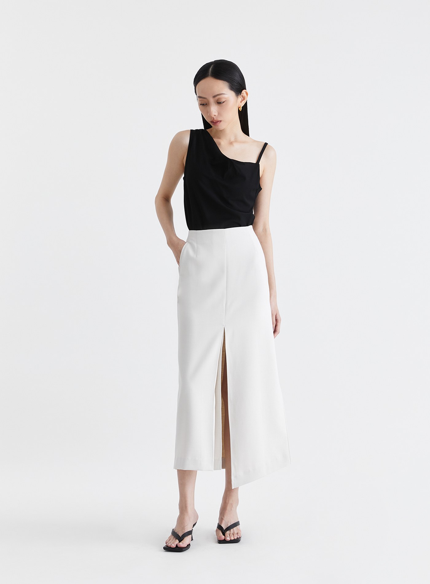 - 不對稱多下擺設計,直筒版型修飾臀型