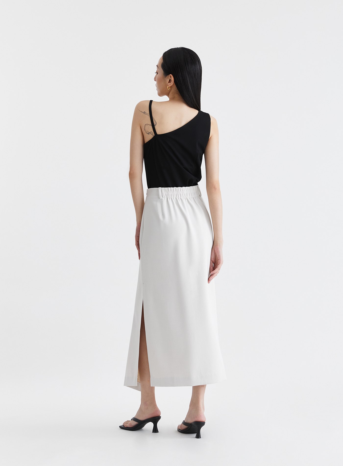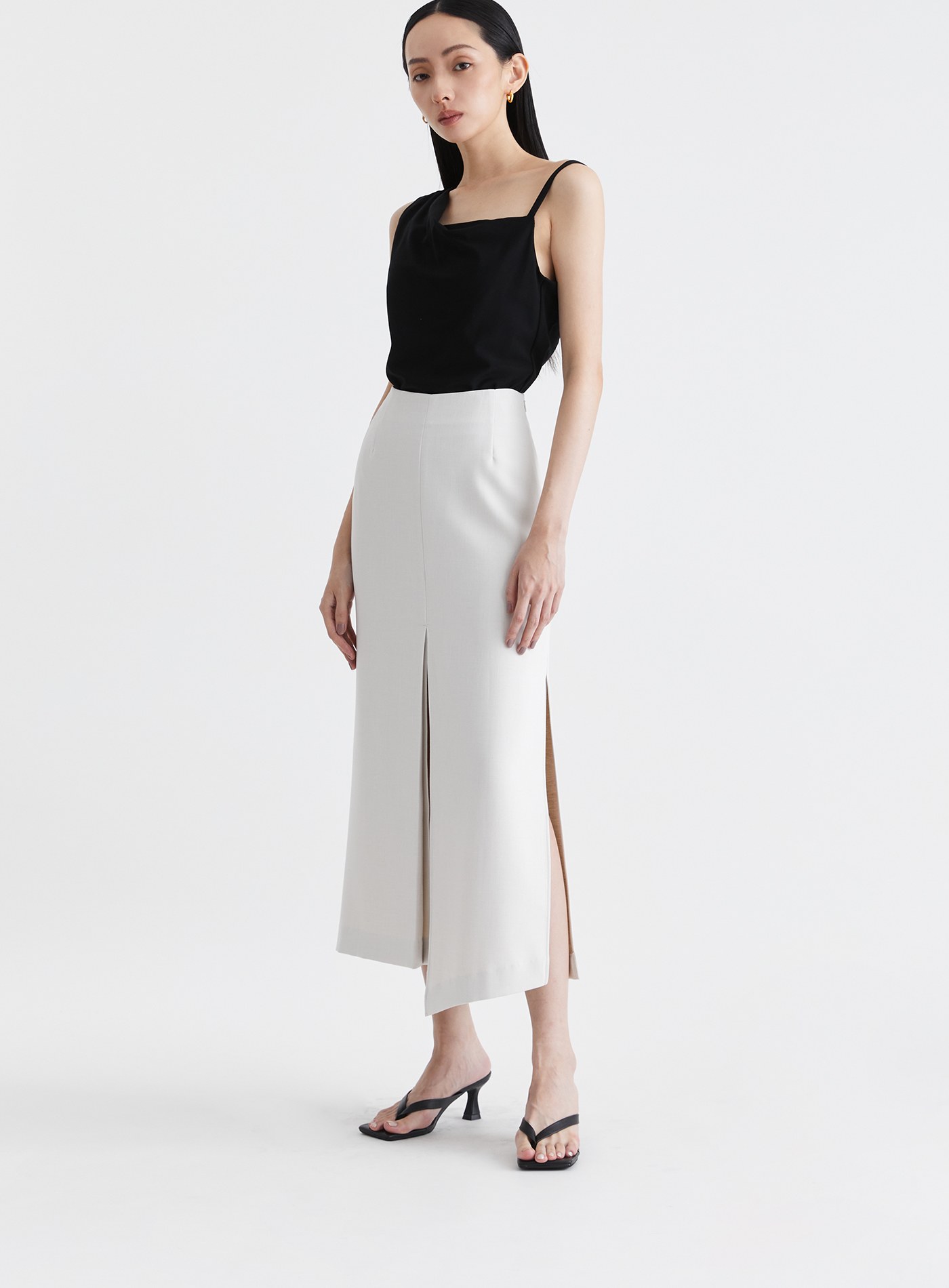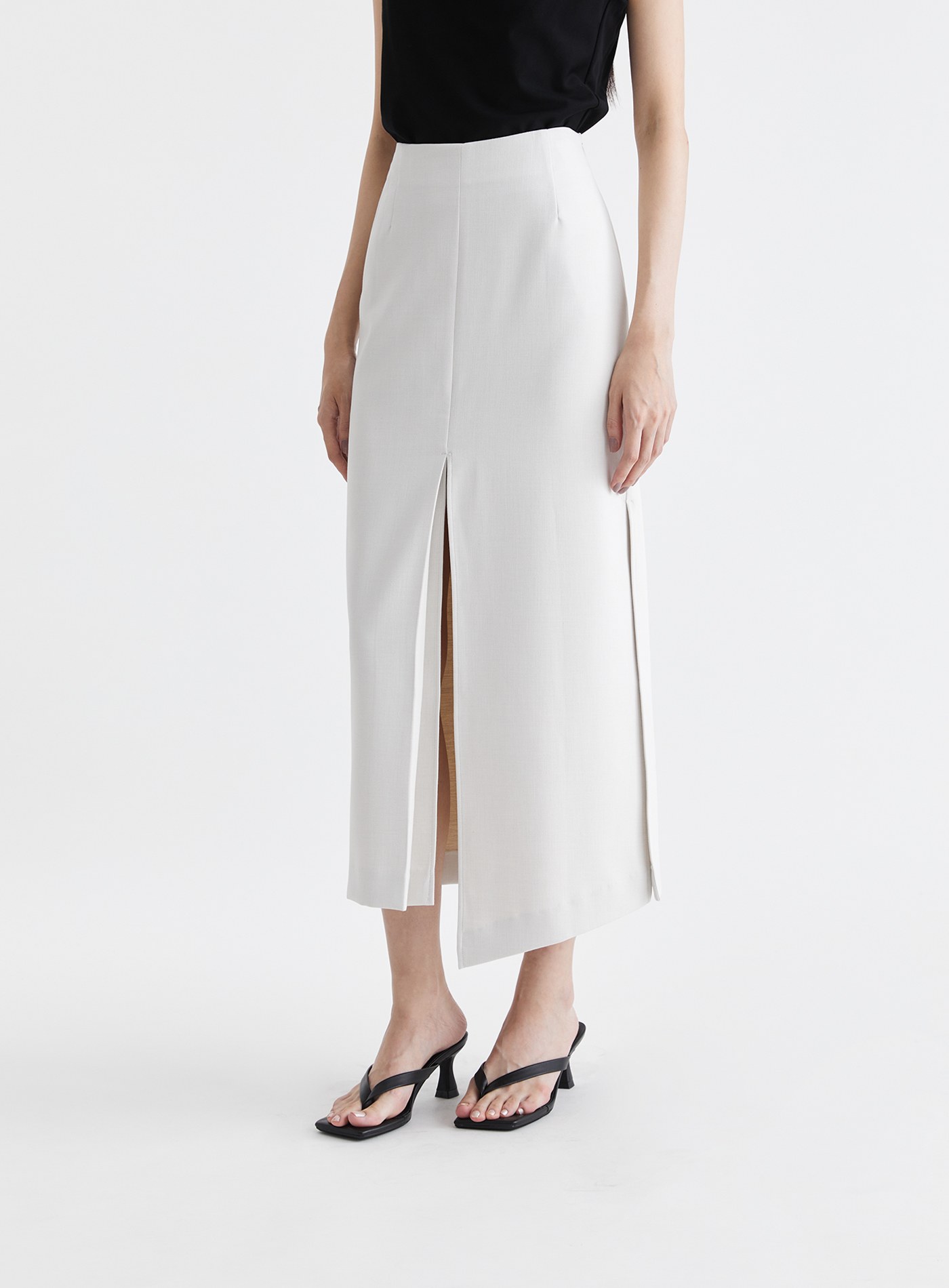 - 不對稱多下擺設計,直筒版型修飾臀型
