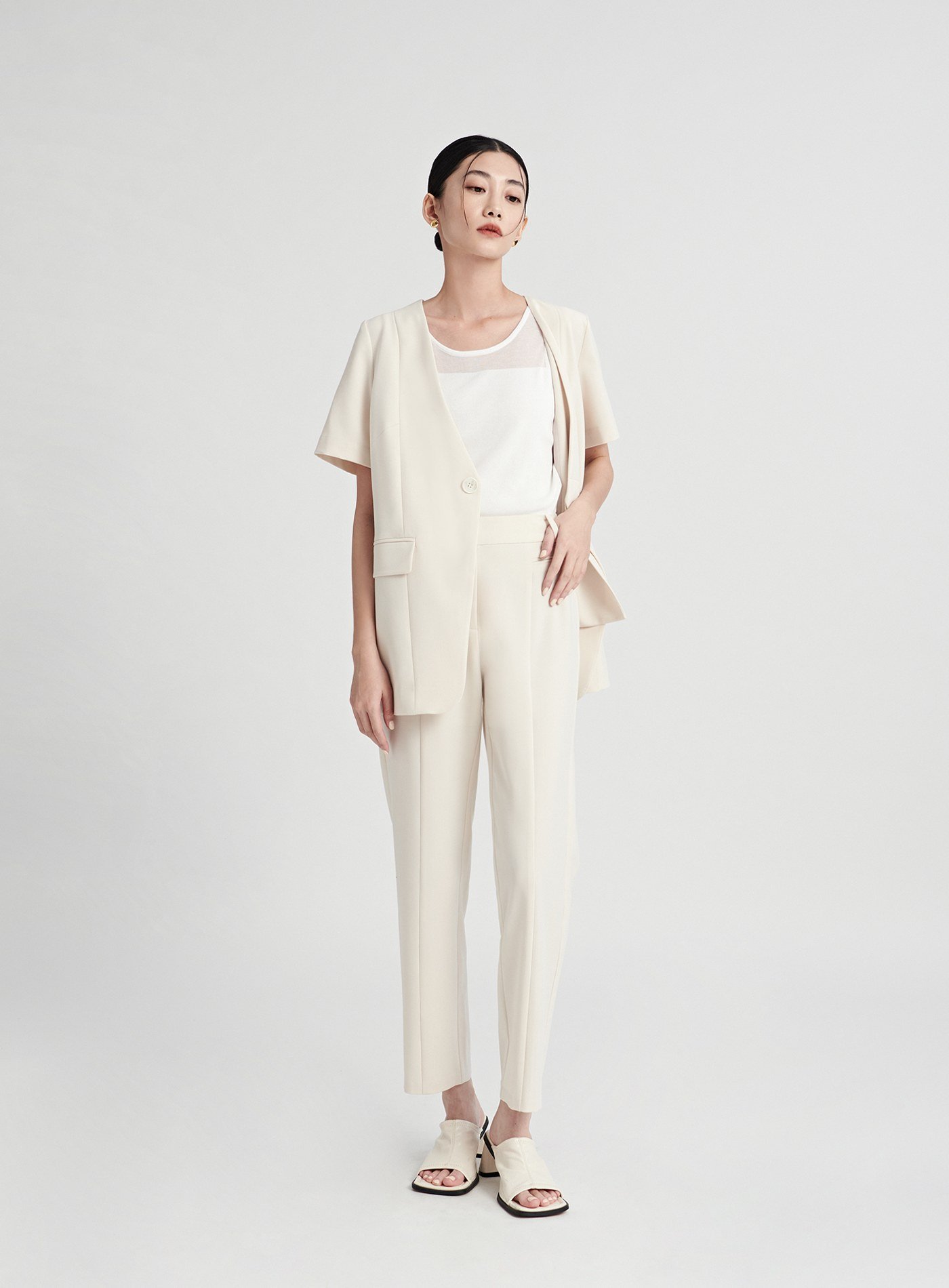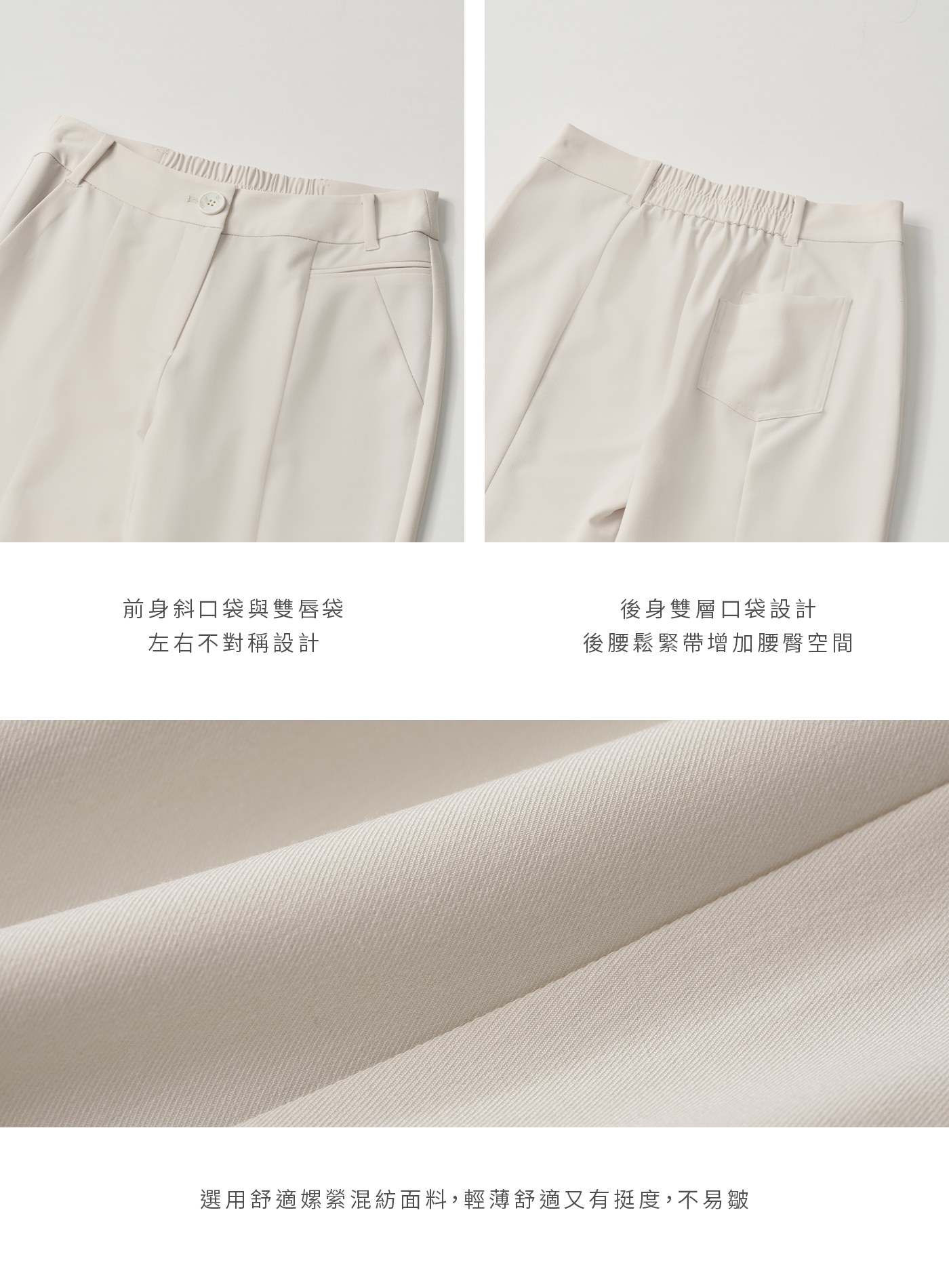 - 修身西裝褲版型,顯瘦與修飾臀型