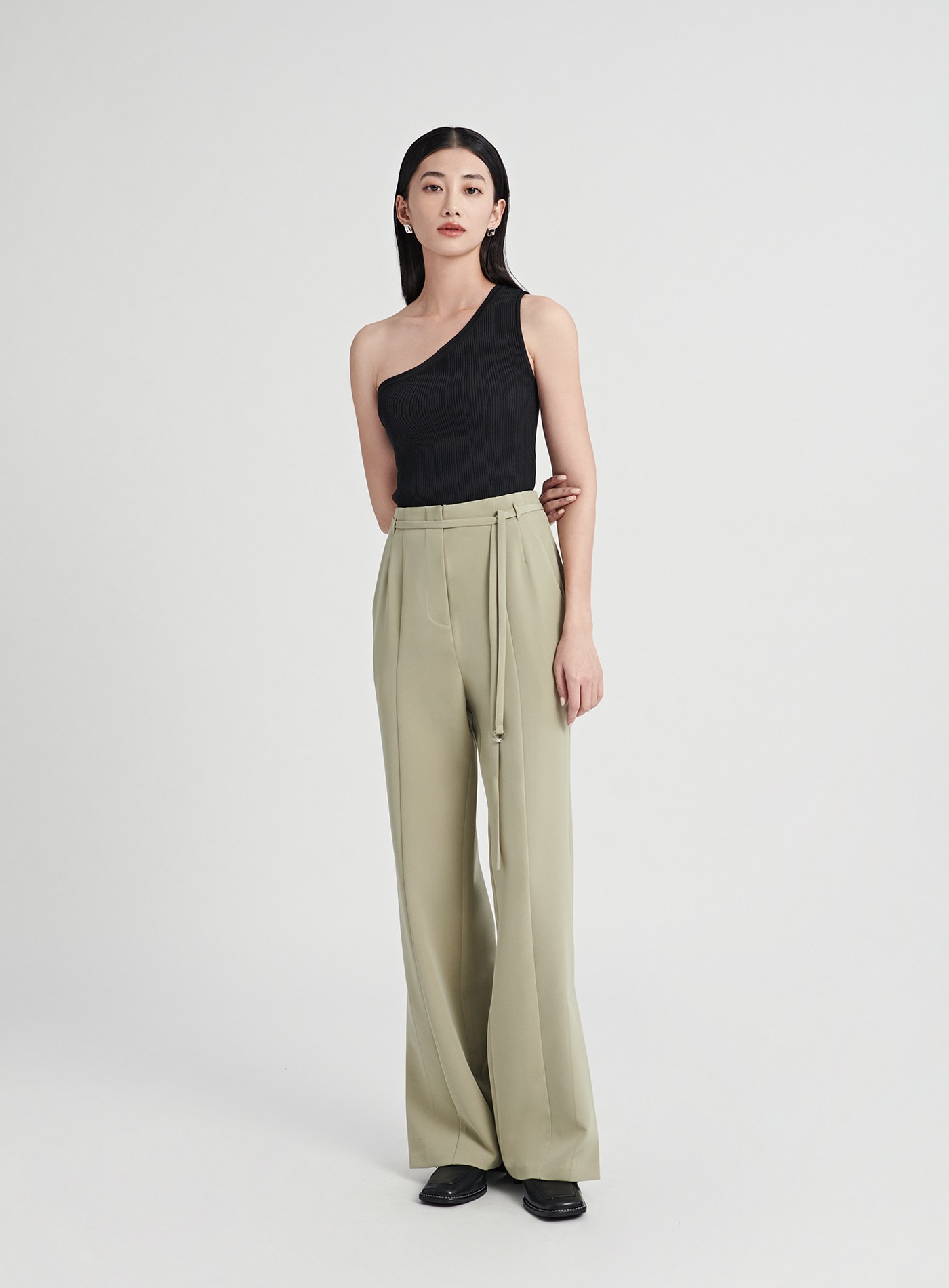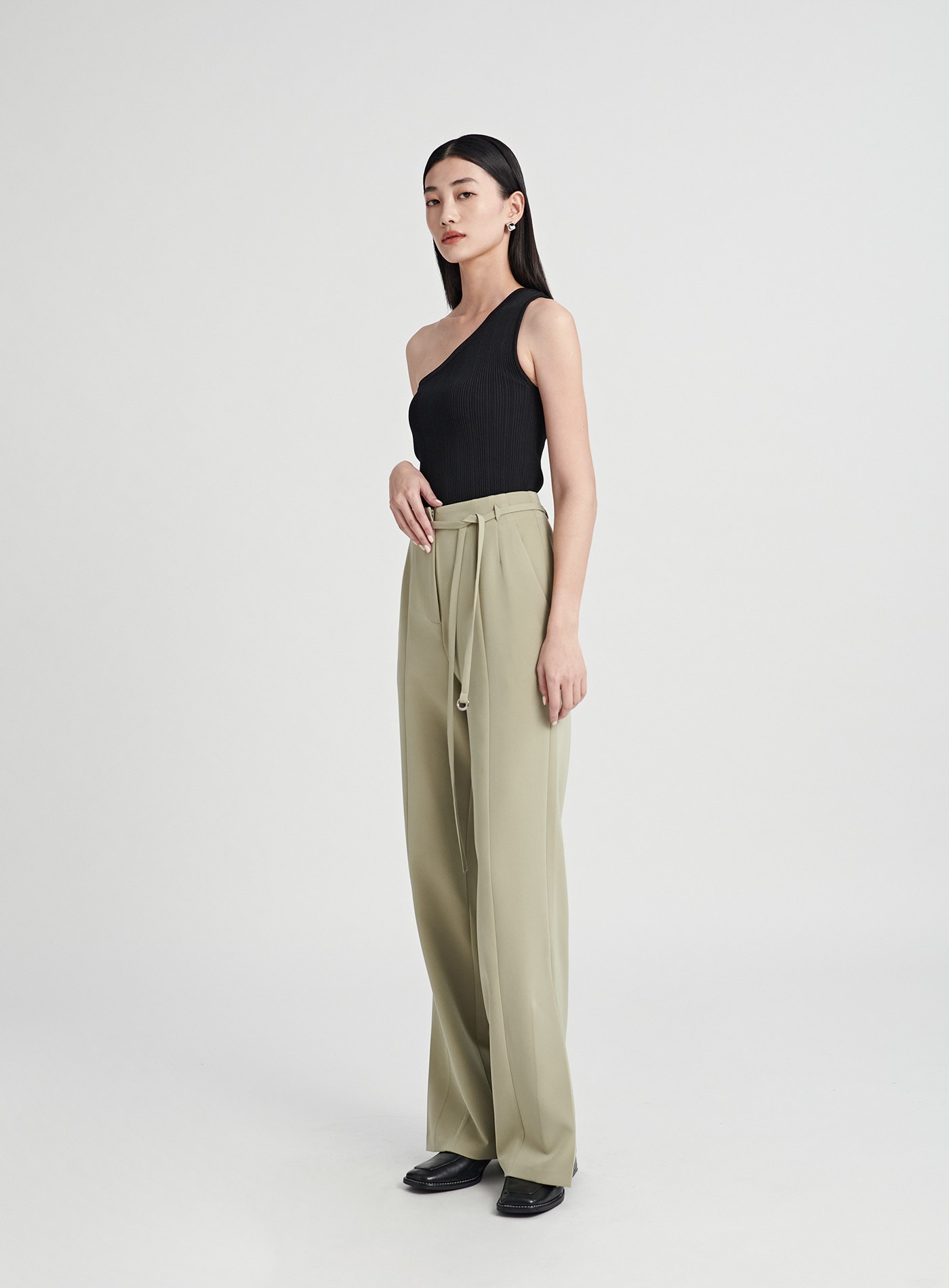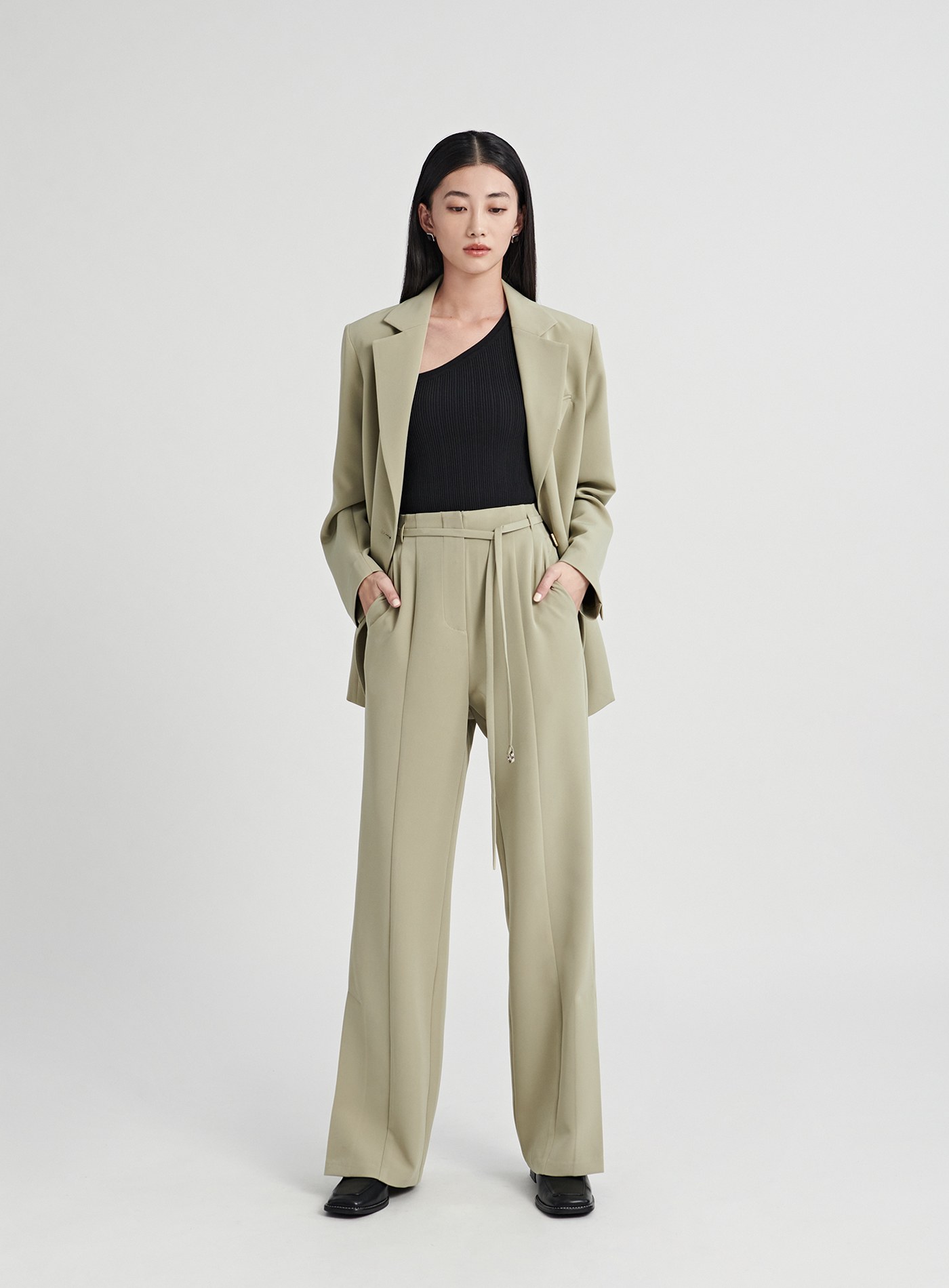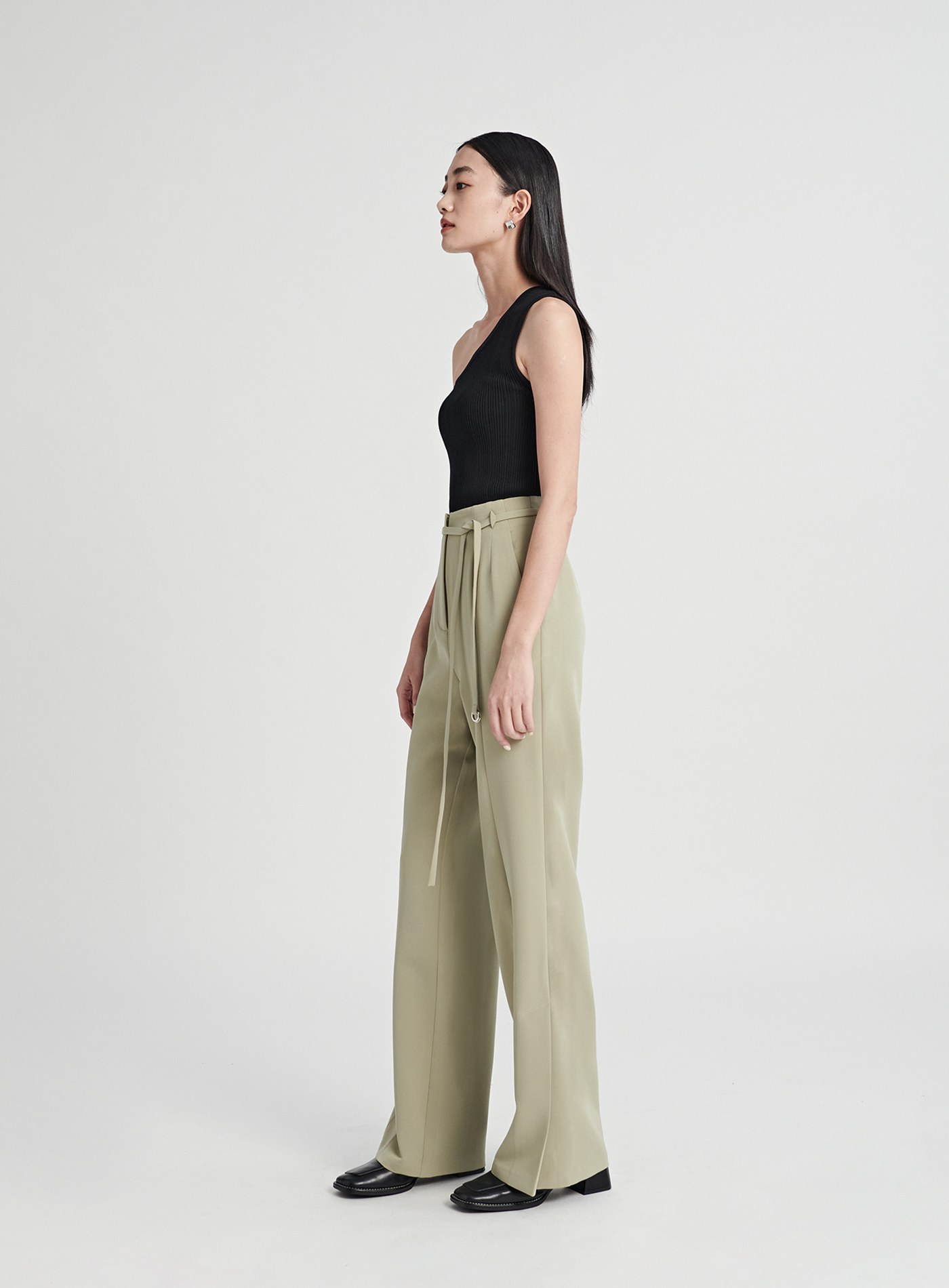 - 無腰頭中高腰寬褲設計,修飾臀腿視覺效果
