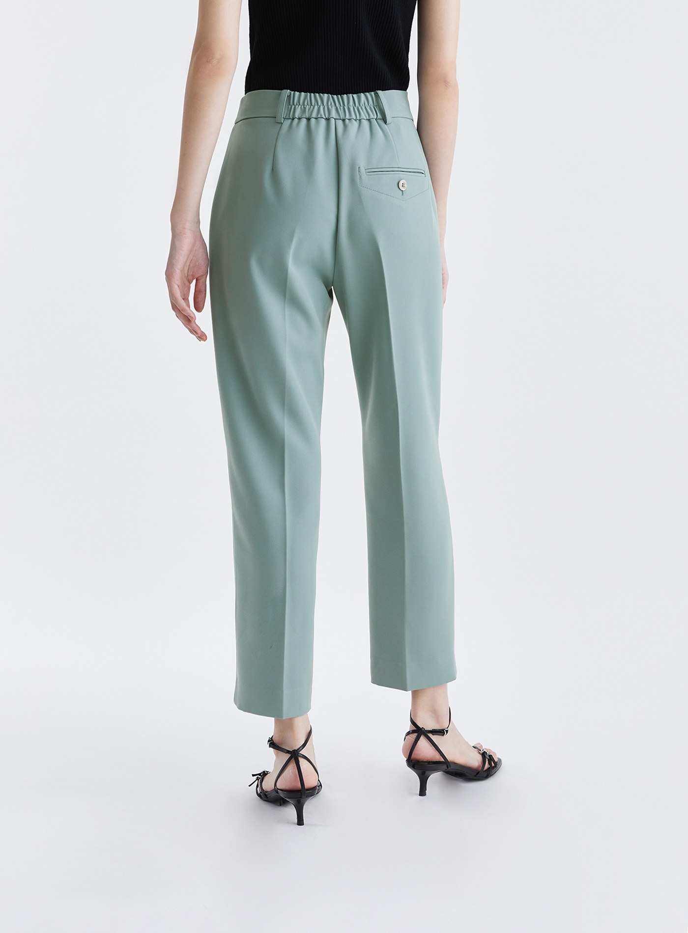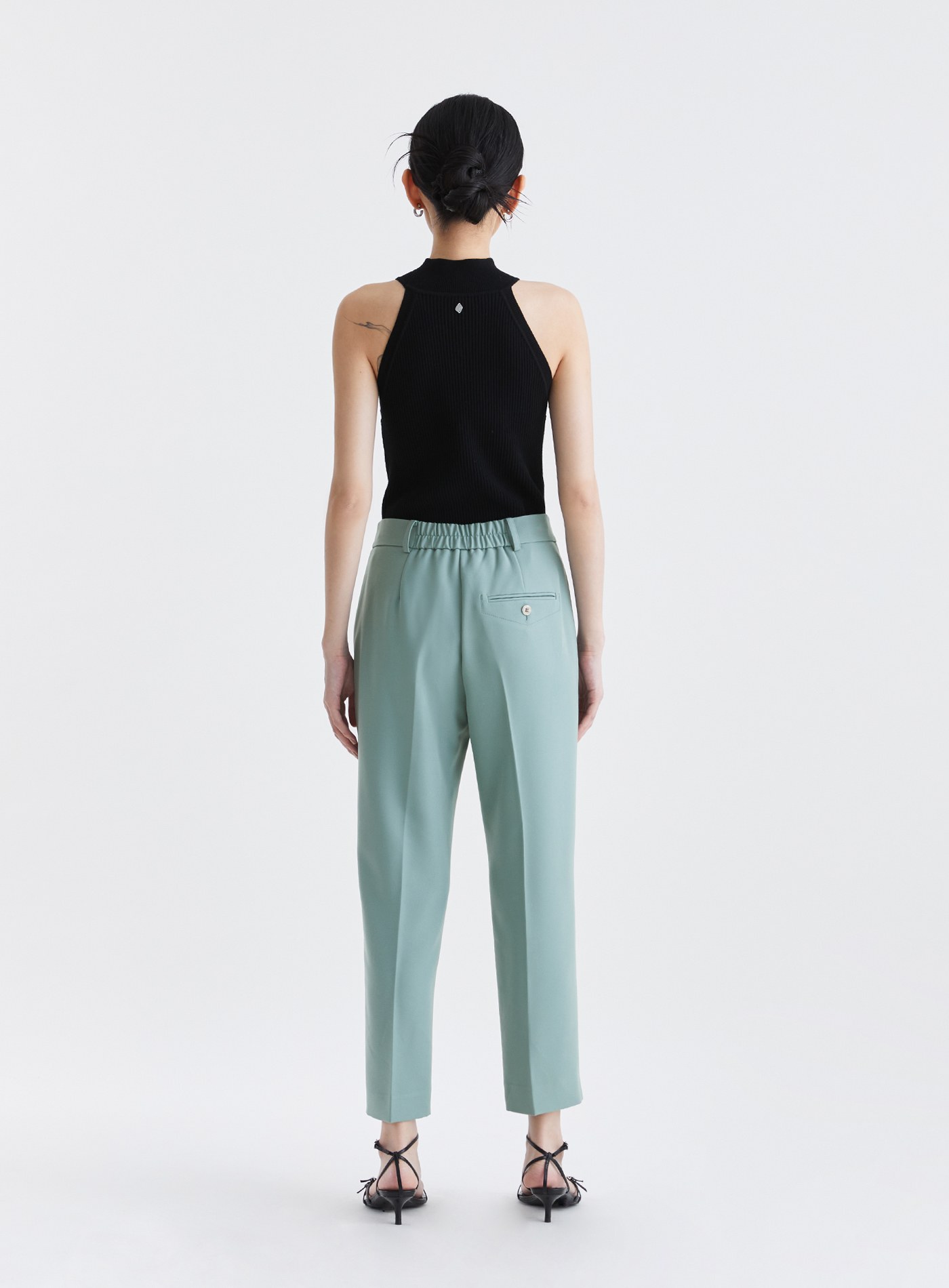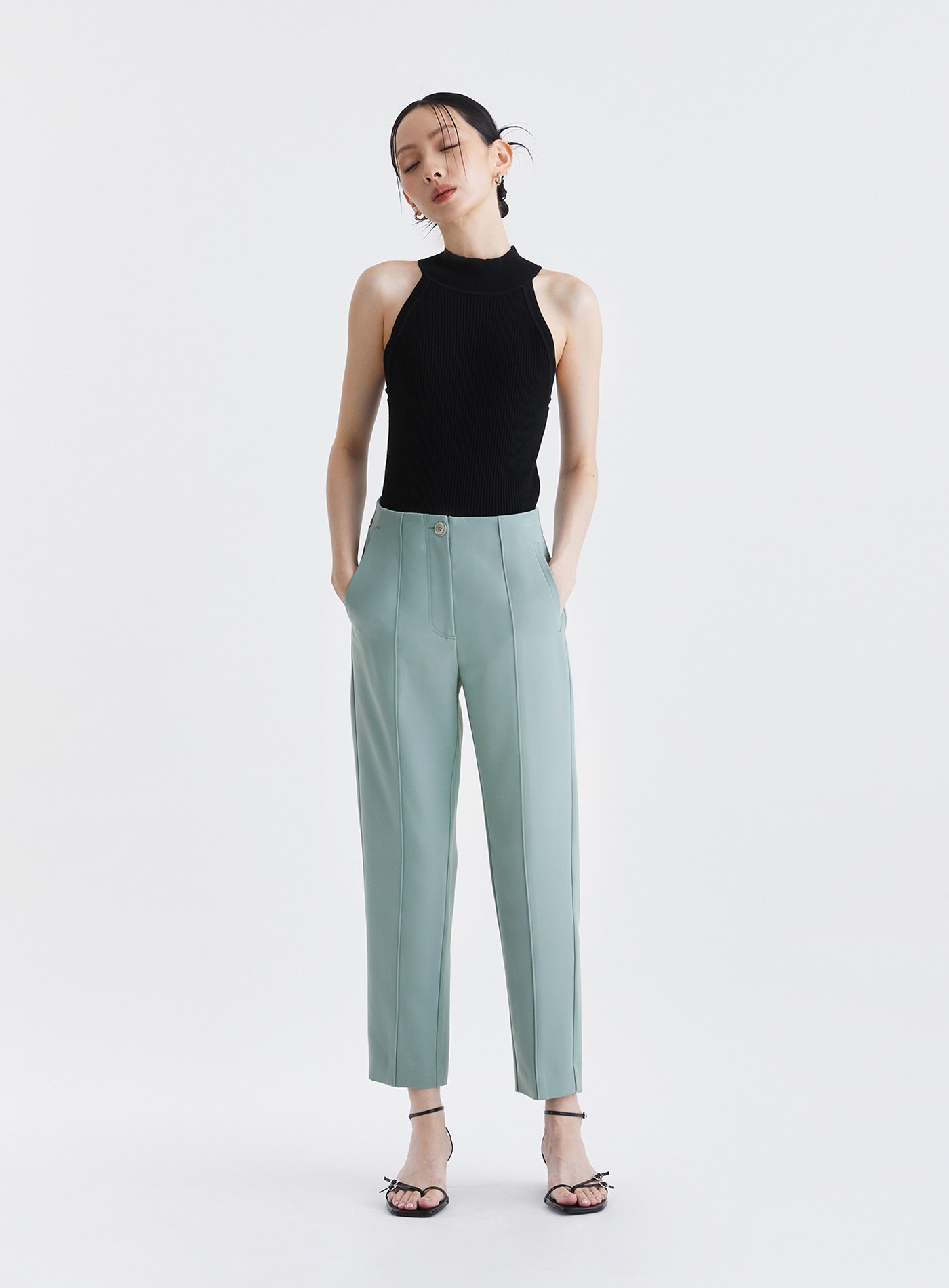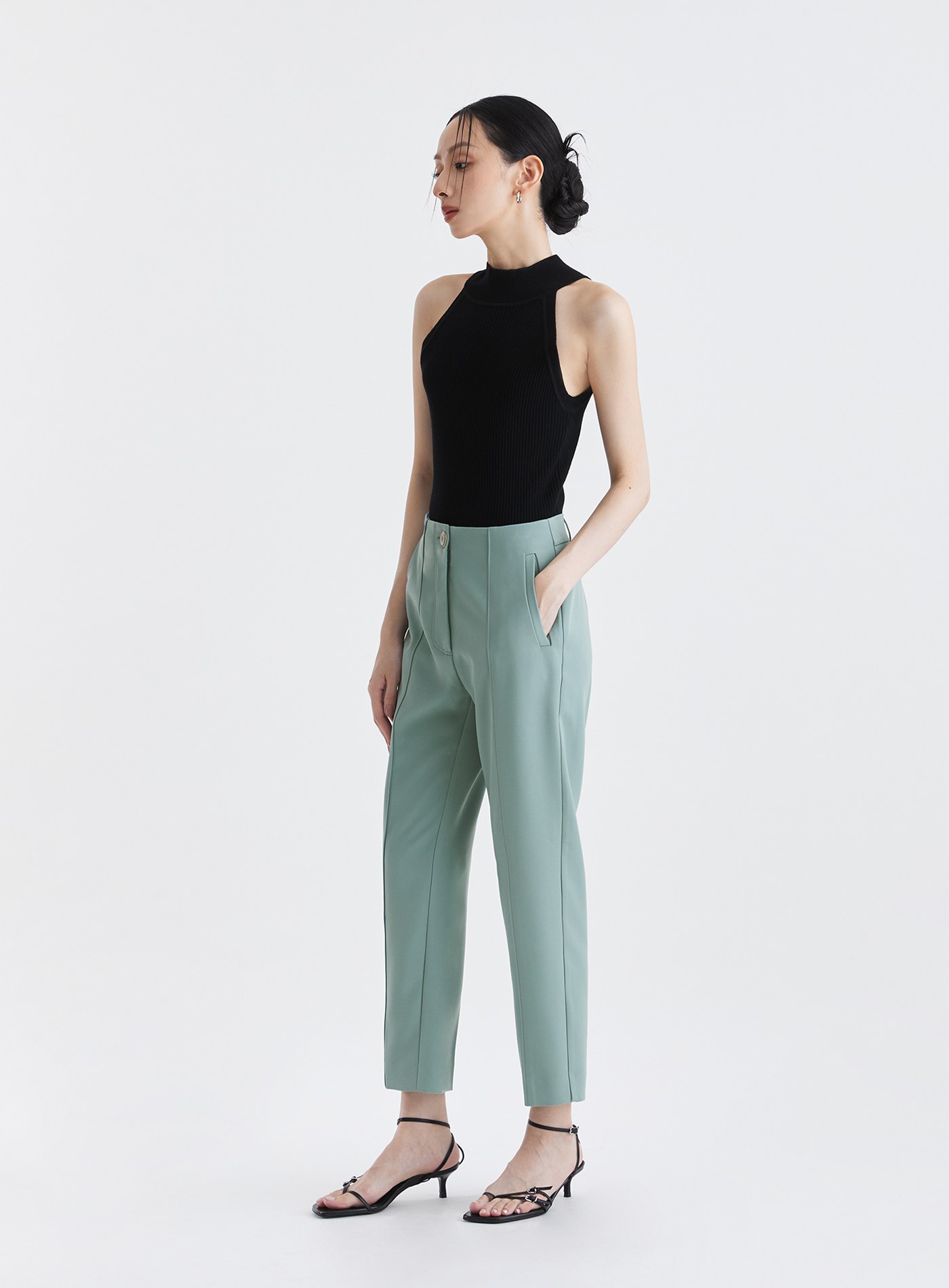 - 前門襟壓線,前中褲身車平塔克設計,修飾腿型