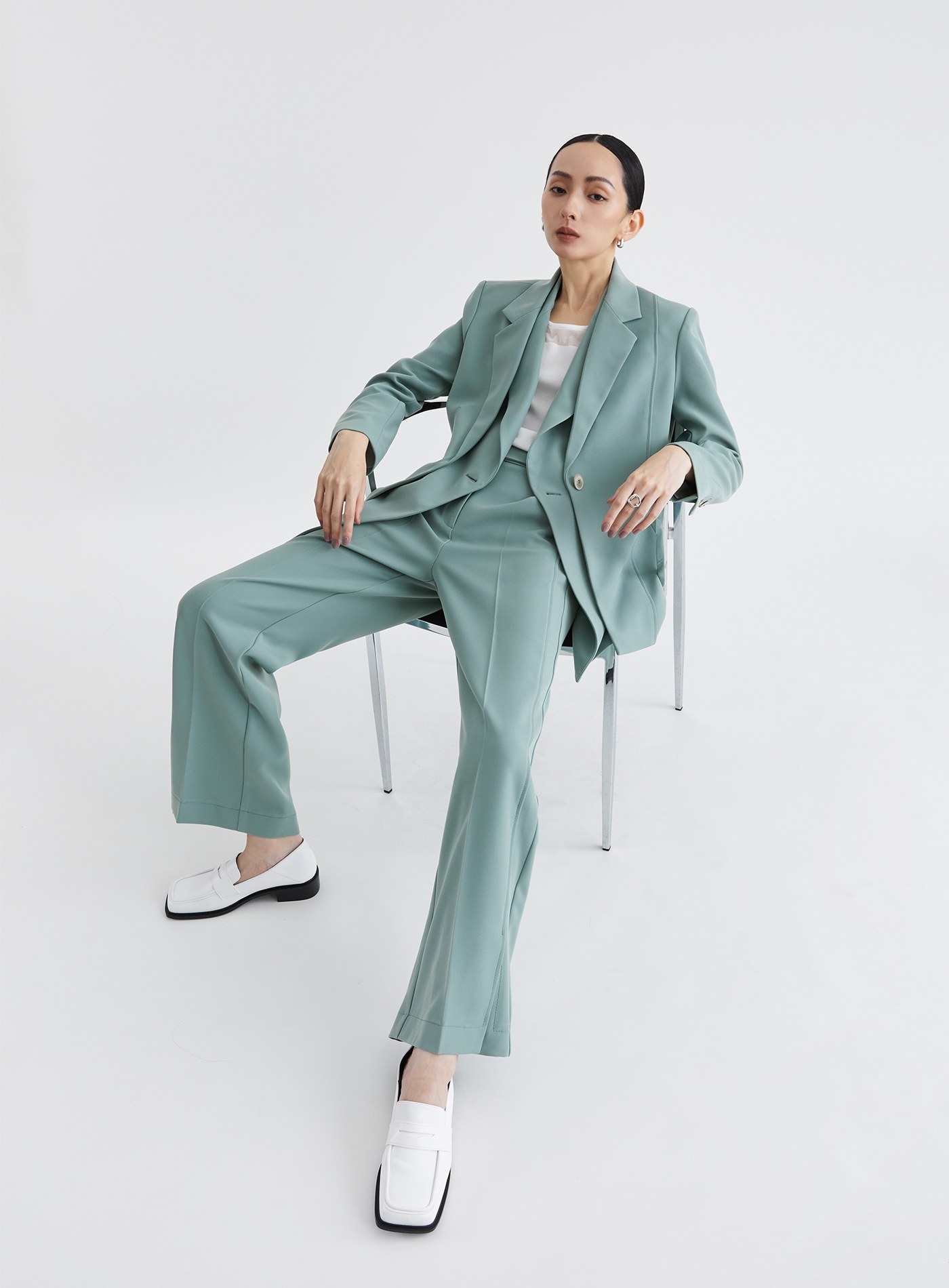 - 直筒落地西裝褲版型,修飾腿型顯腿長