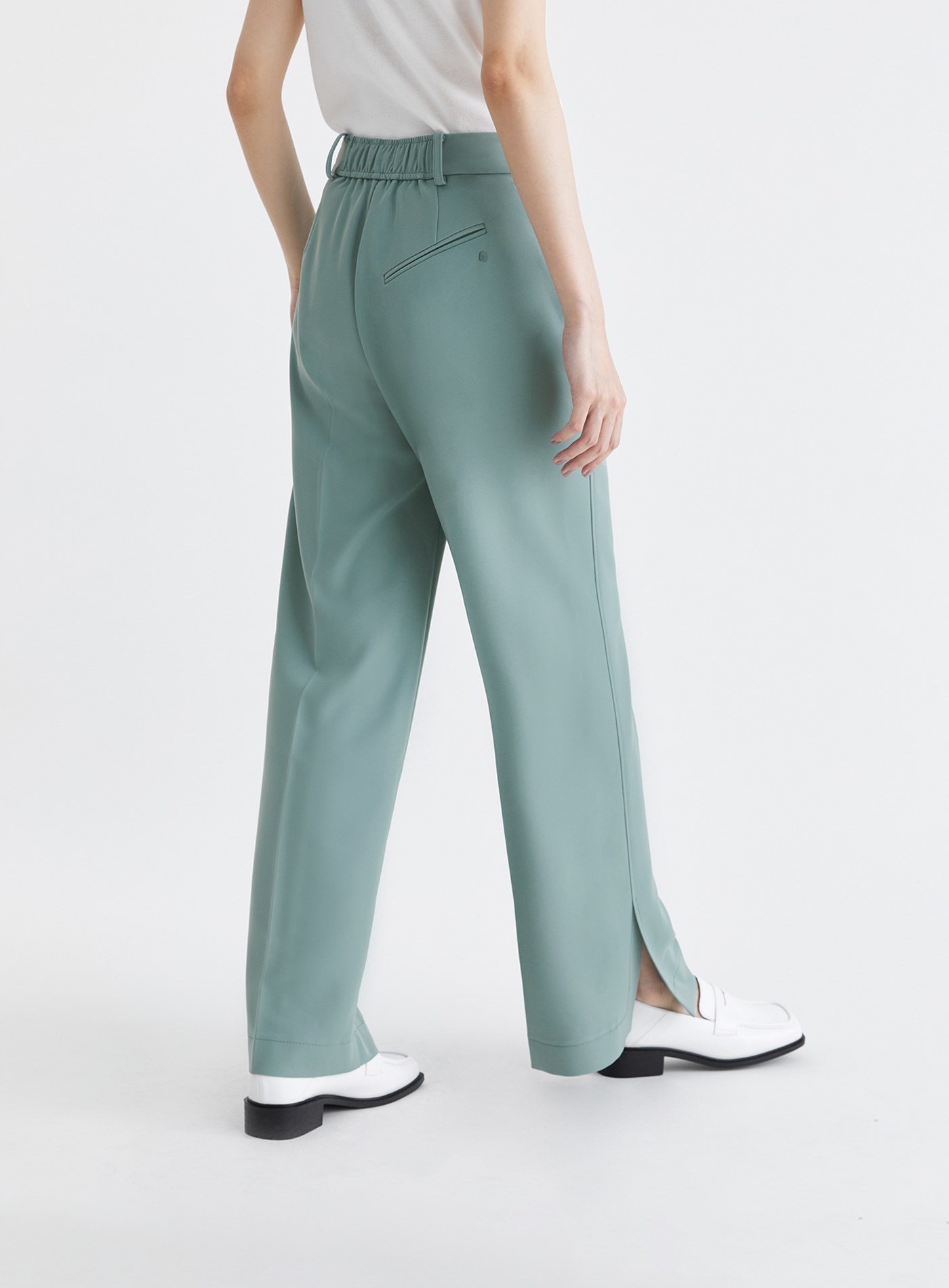 - 褲身側邊剪接壓粗線,褲口開衩增添流動感