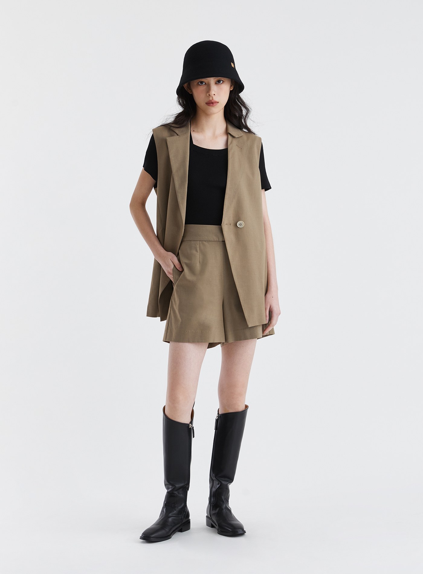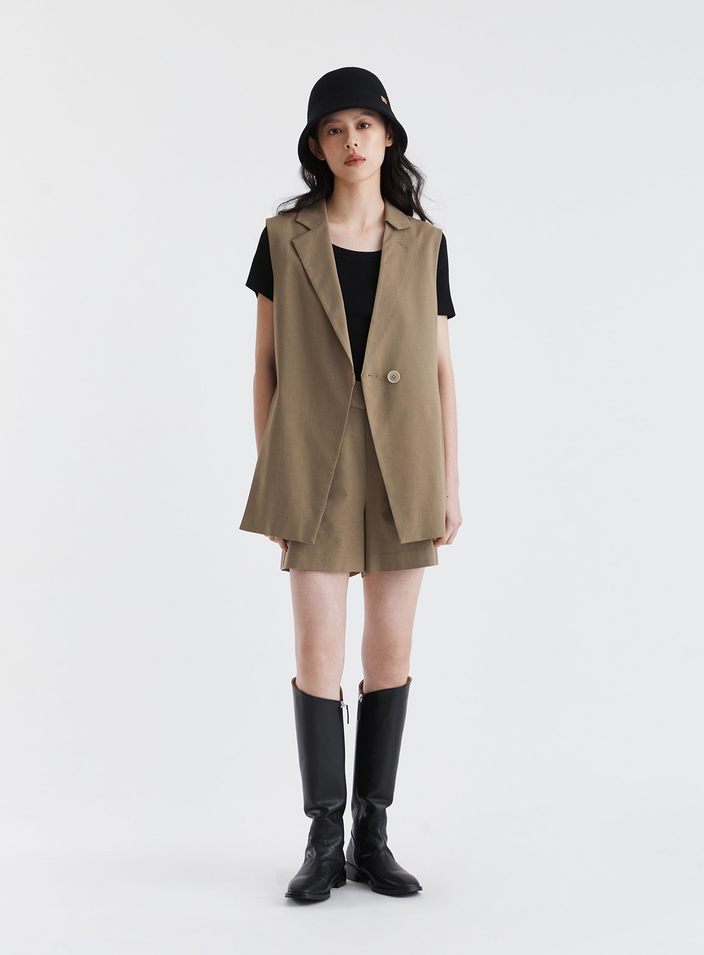 - 可與 '輕爽羊毛不對稱領型西裝背心' 搭成一套