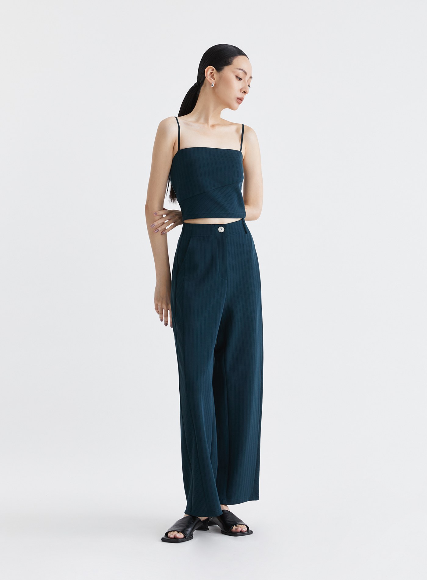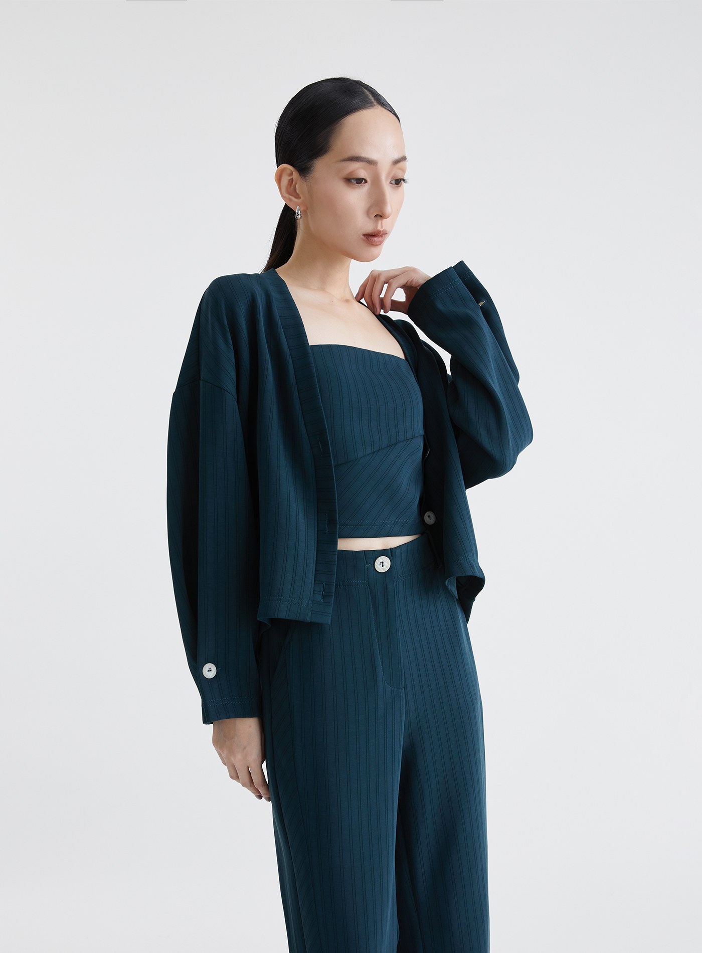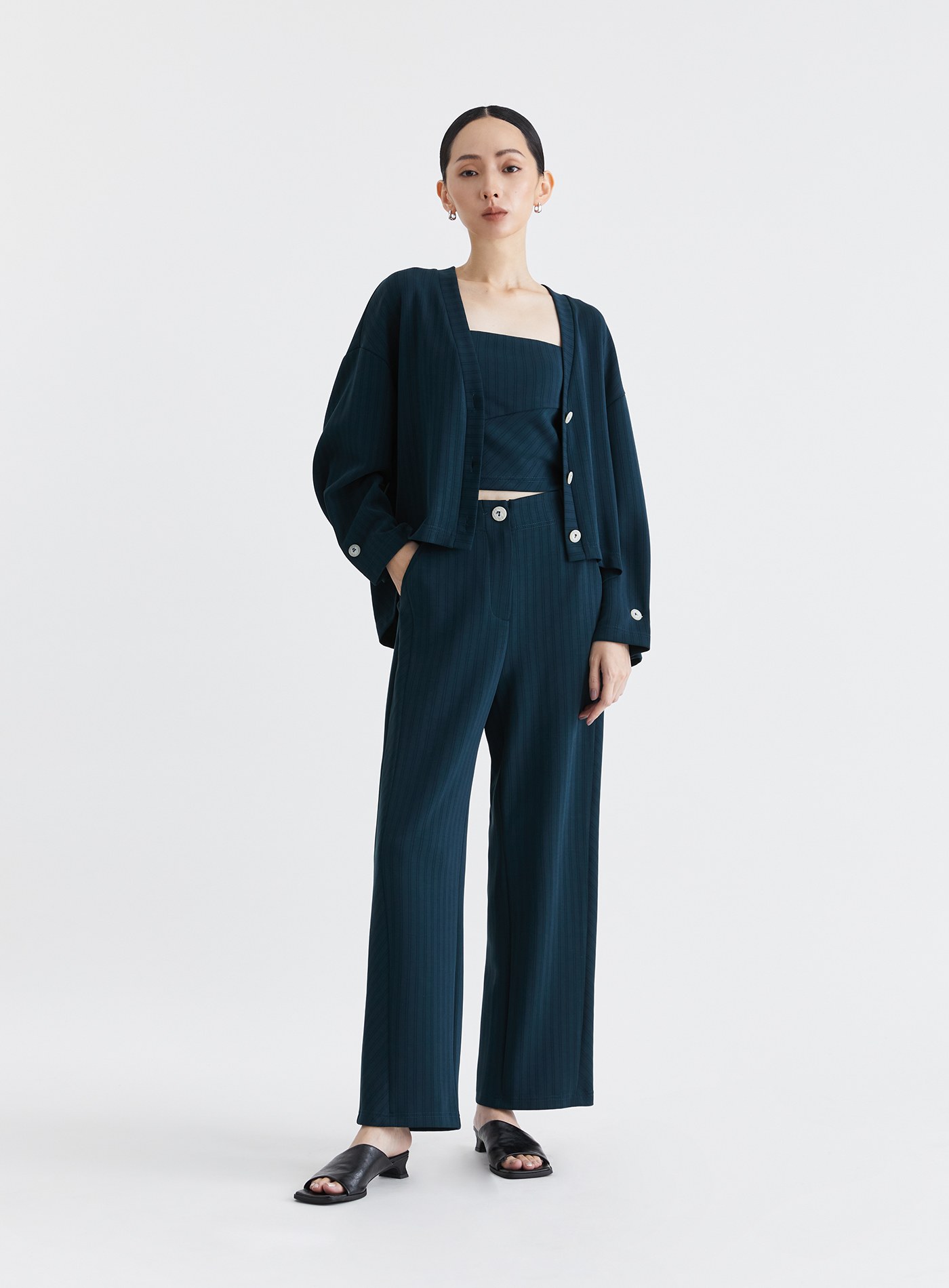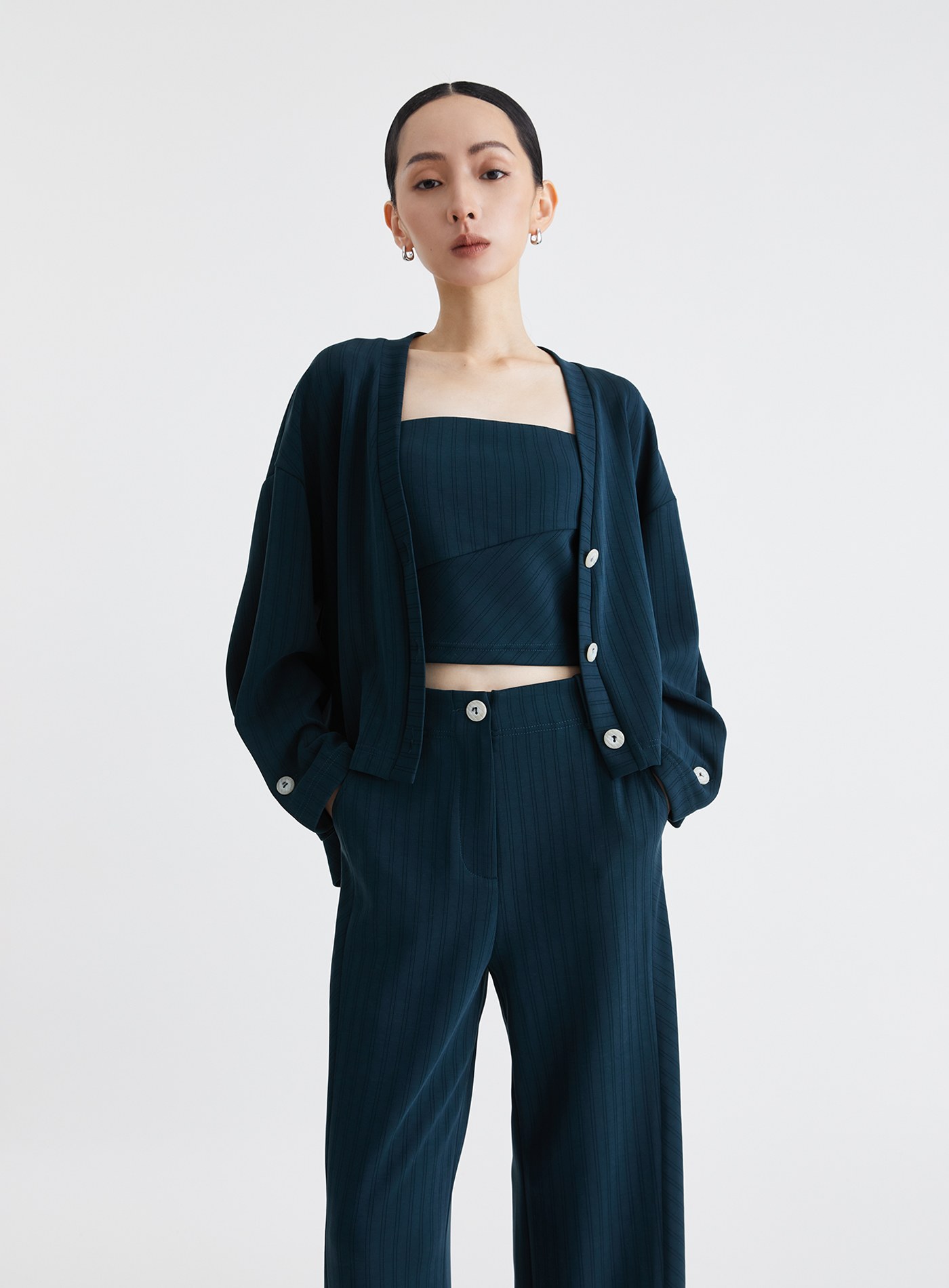- 可與 '慵懶舒適細條紋針織外套' 與‘慵懶舒適細條紋針織西裝褲’搭成一套