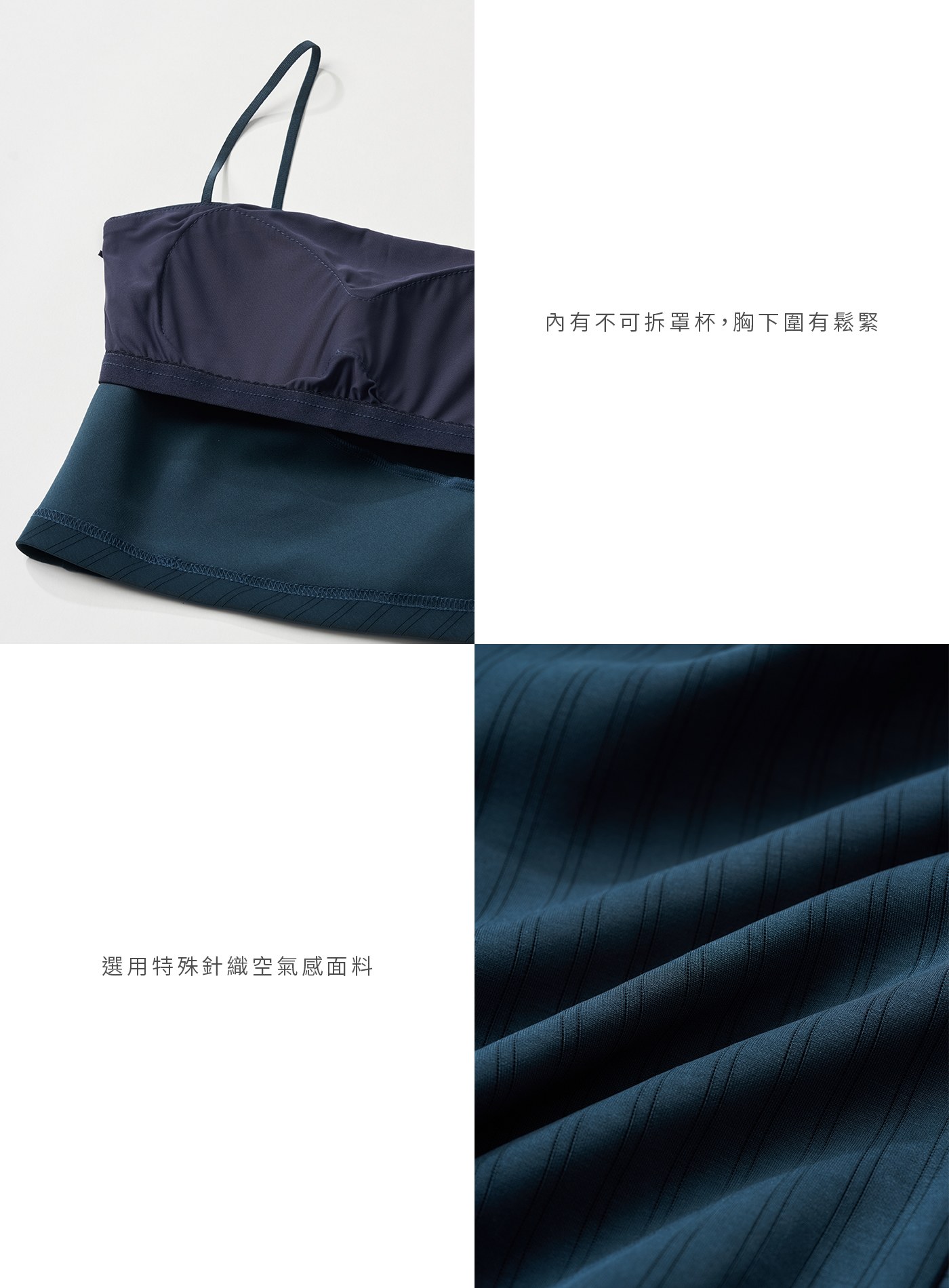 - 內有不可拆罩杯,胸下圍有鬆緊