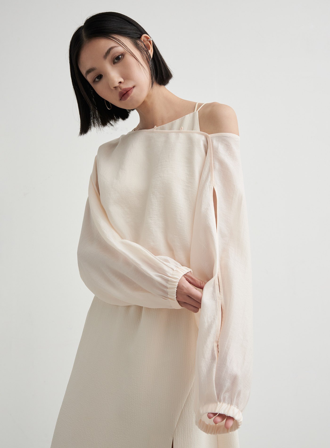 - 領口釦根設計與袖身簍空細節,隨興中營造出優雅氛圍