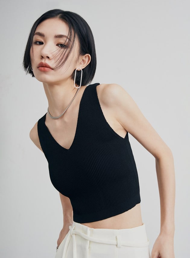 - 錐形九分西裝褲型,結合不對稱無腰頭剪接細節,拉身視覺比例