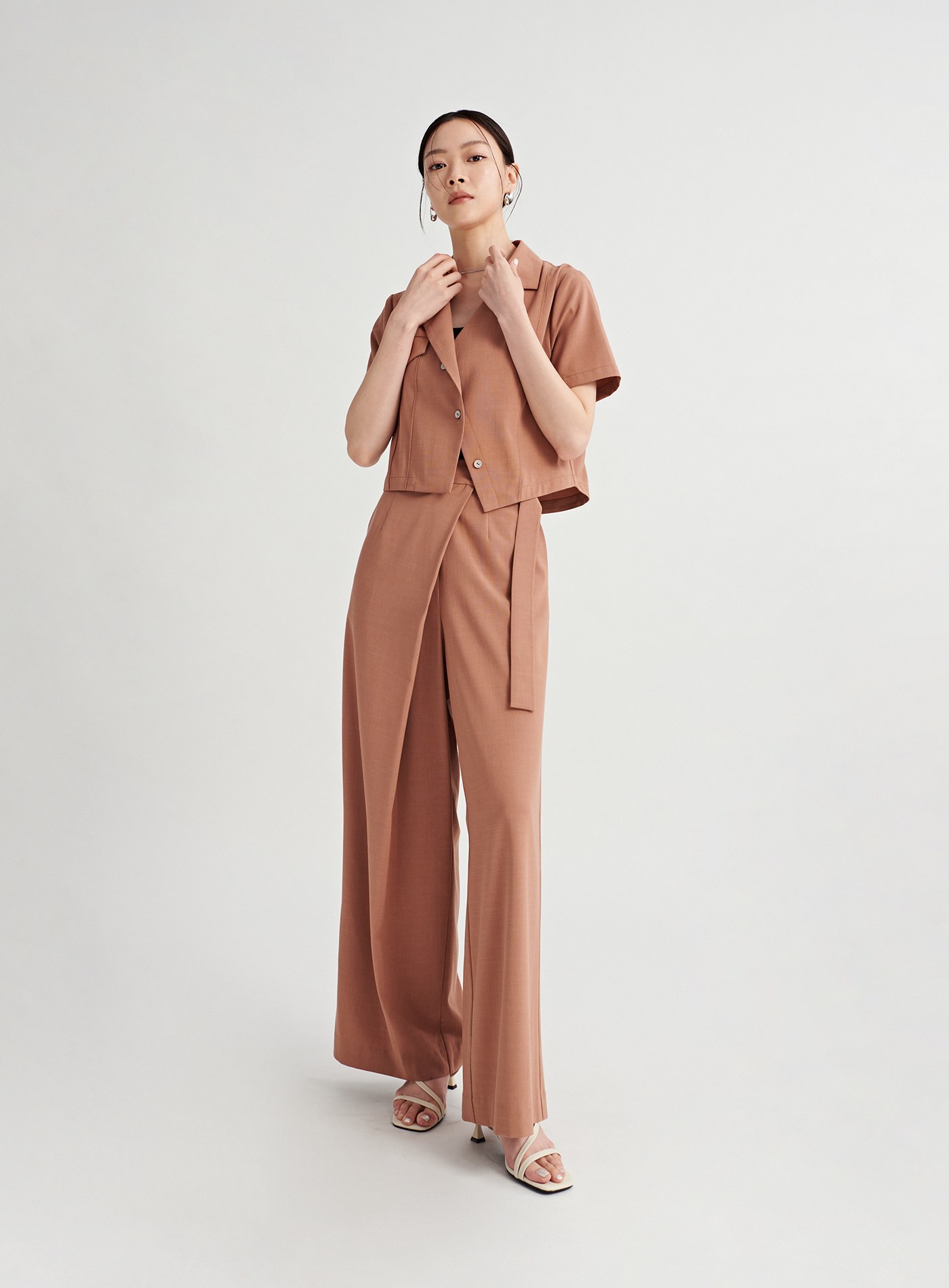 - 可與 '俐落翻領交剪裁短版外套' 搭成一套