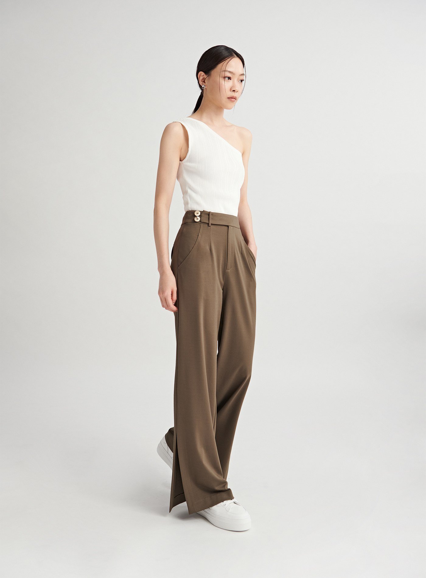 - 前腰延伸雙釦設計,中直筒版型,為西裝褲增添率性俐落感