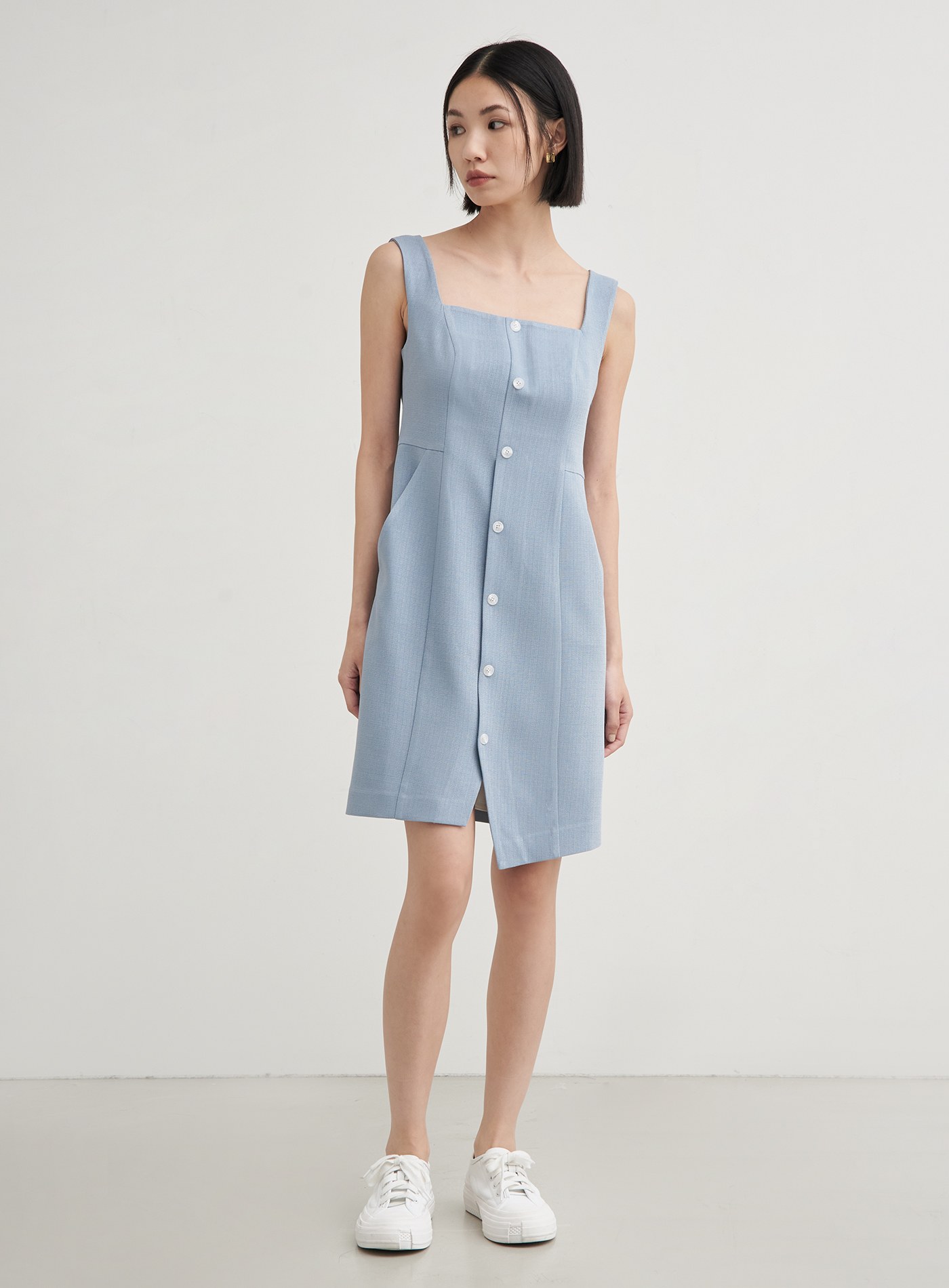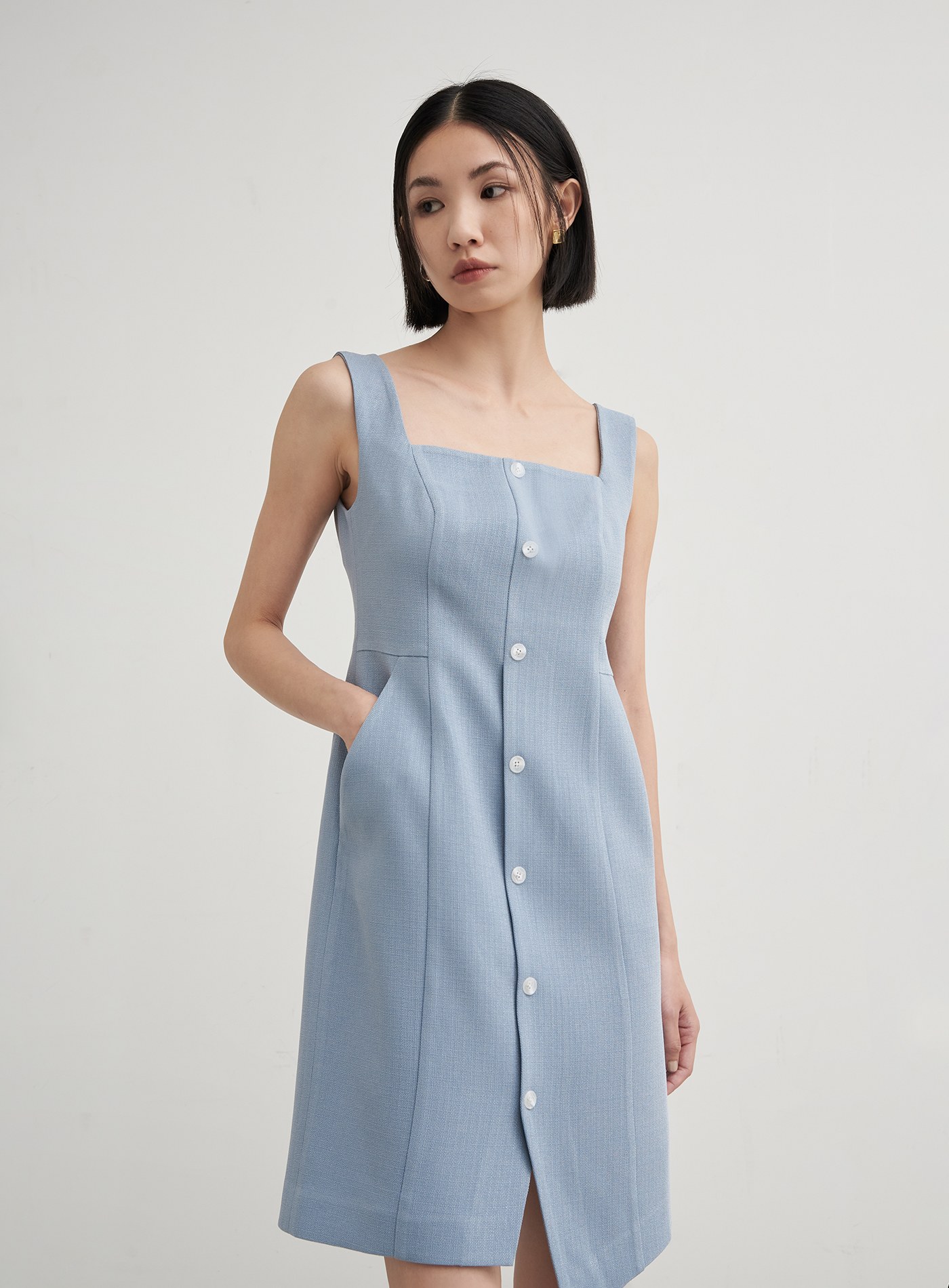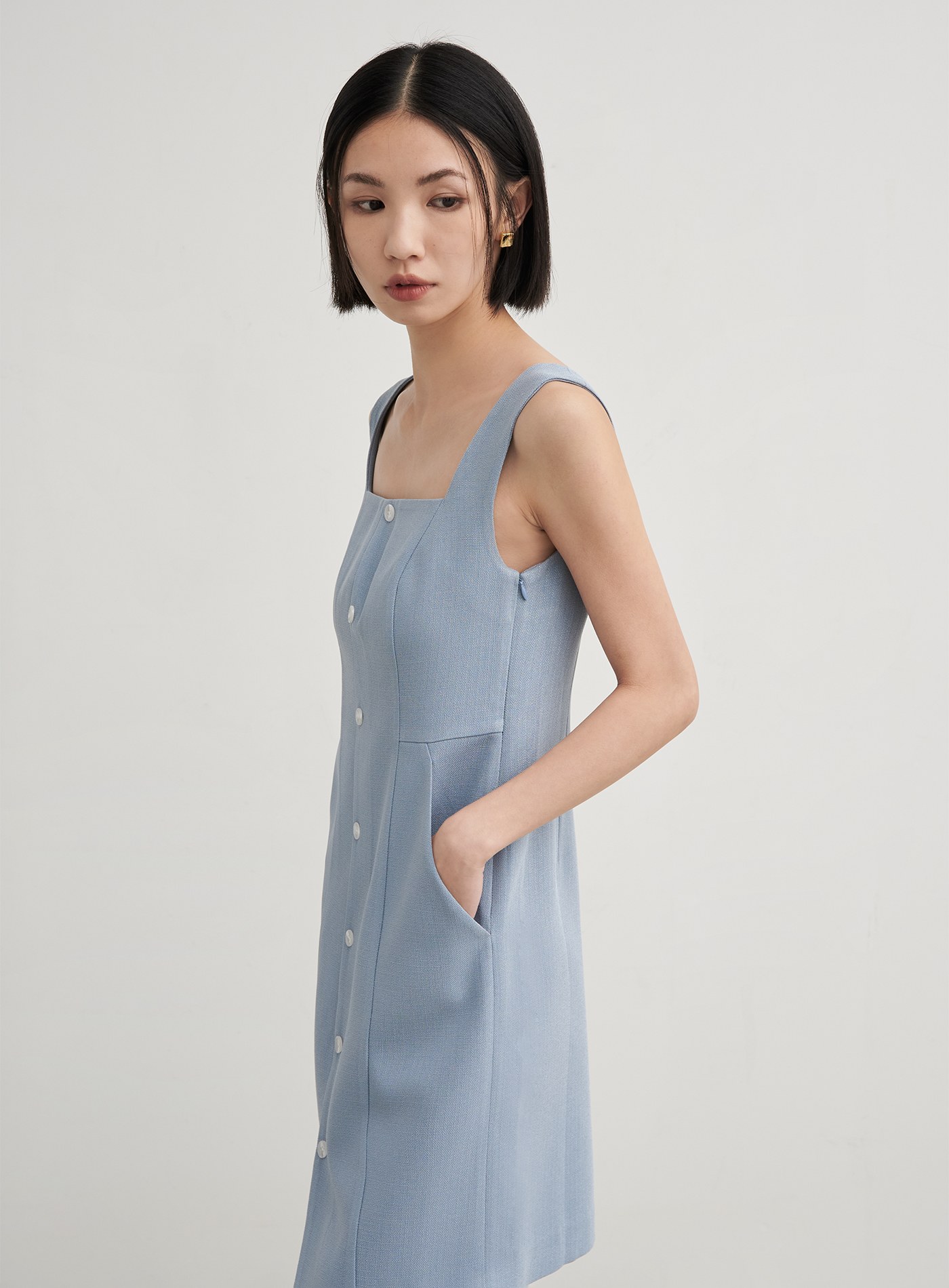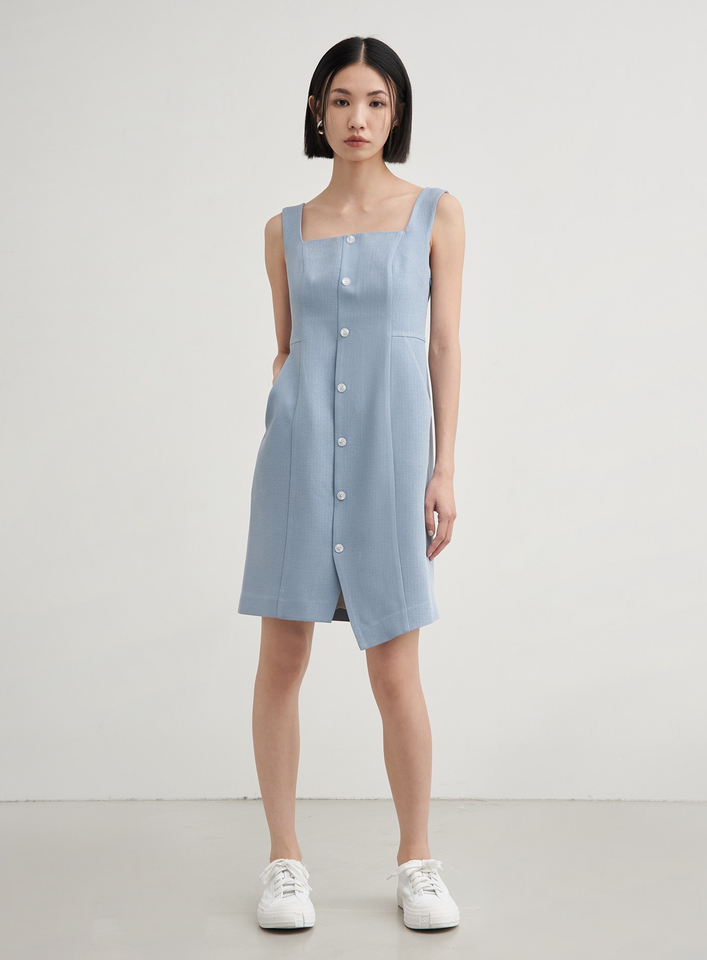 不對稱肩帶盪領斜裁洋裝$86 USD