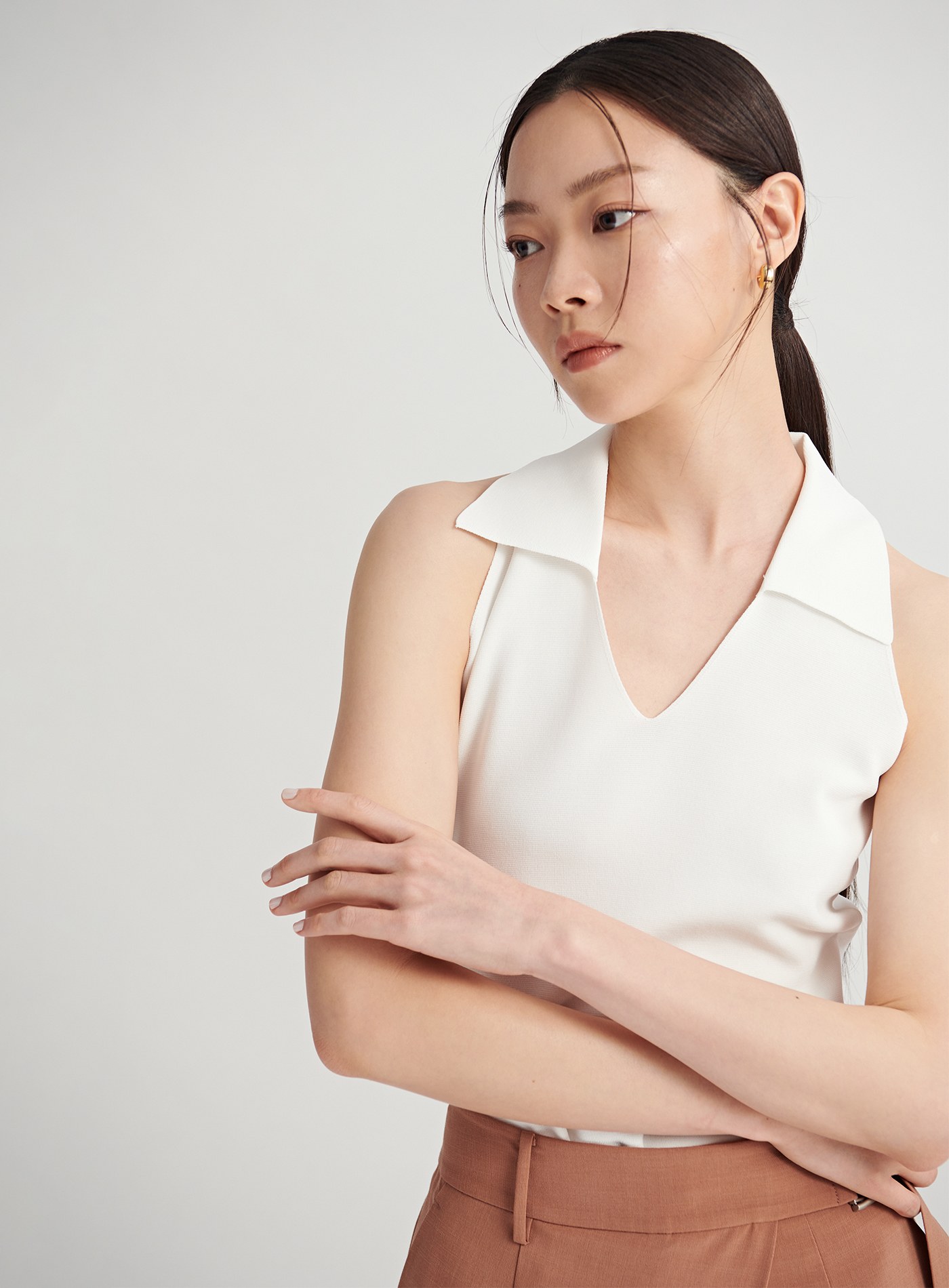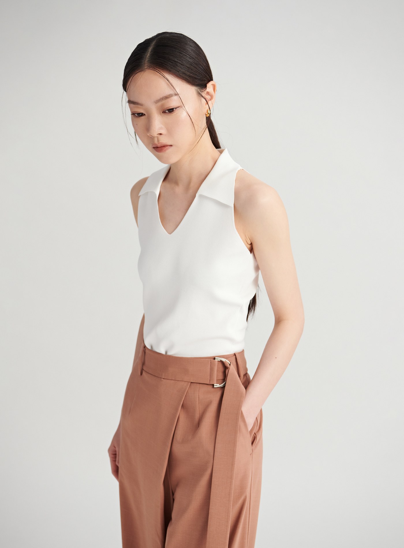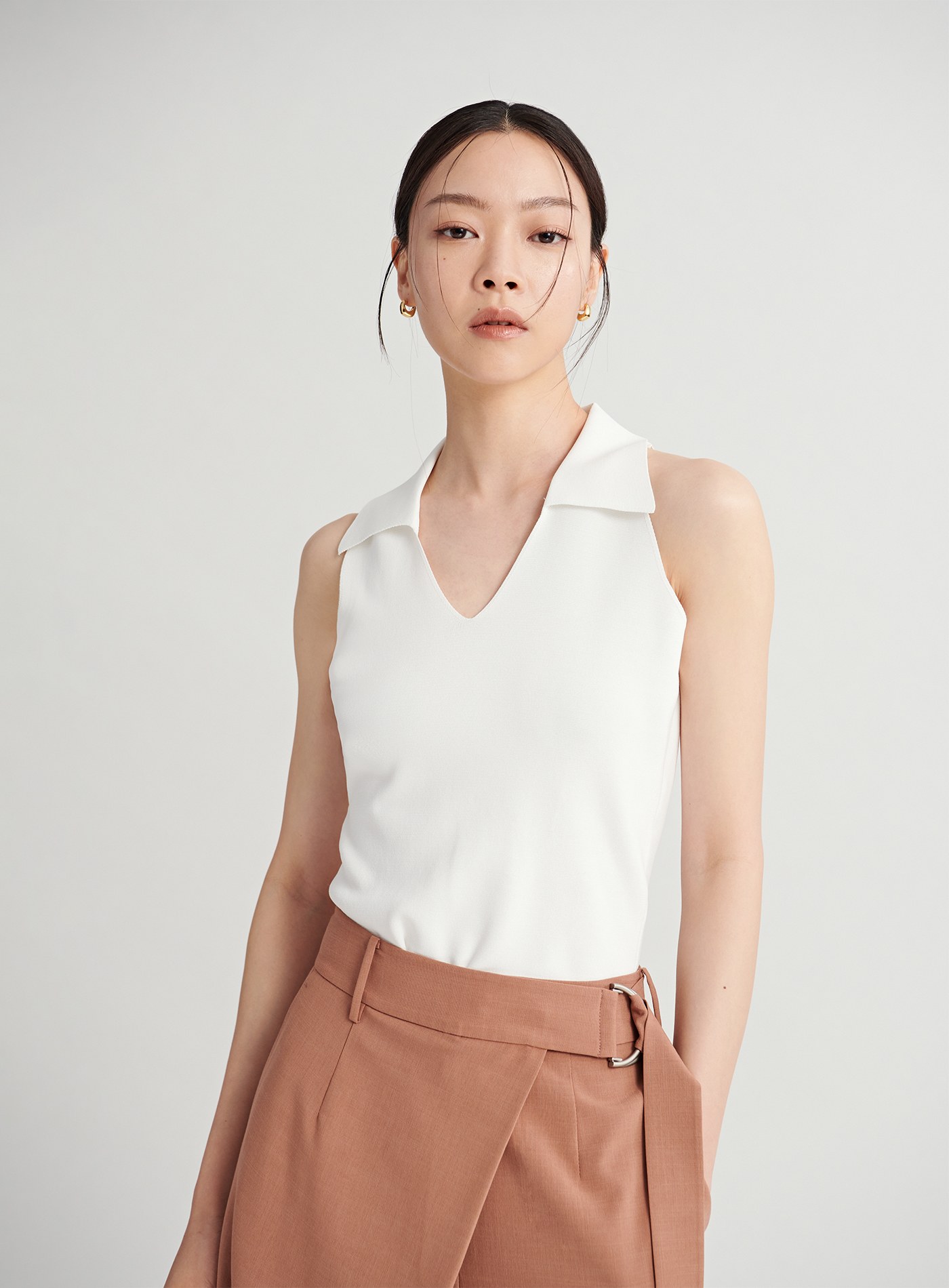 - 合身不緊身版型,襯衫式V領削肩剪裁,勾勒鎖骨線條