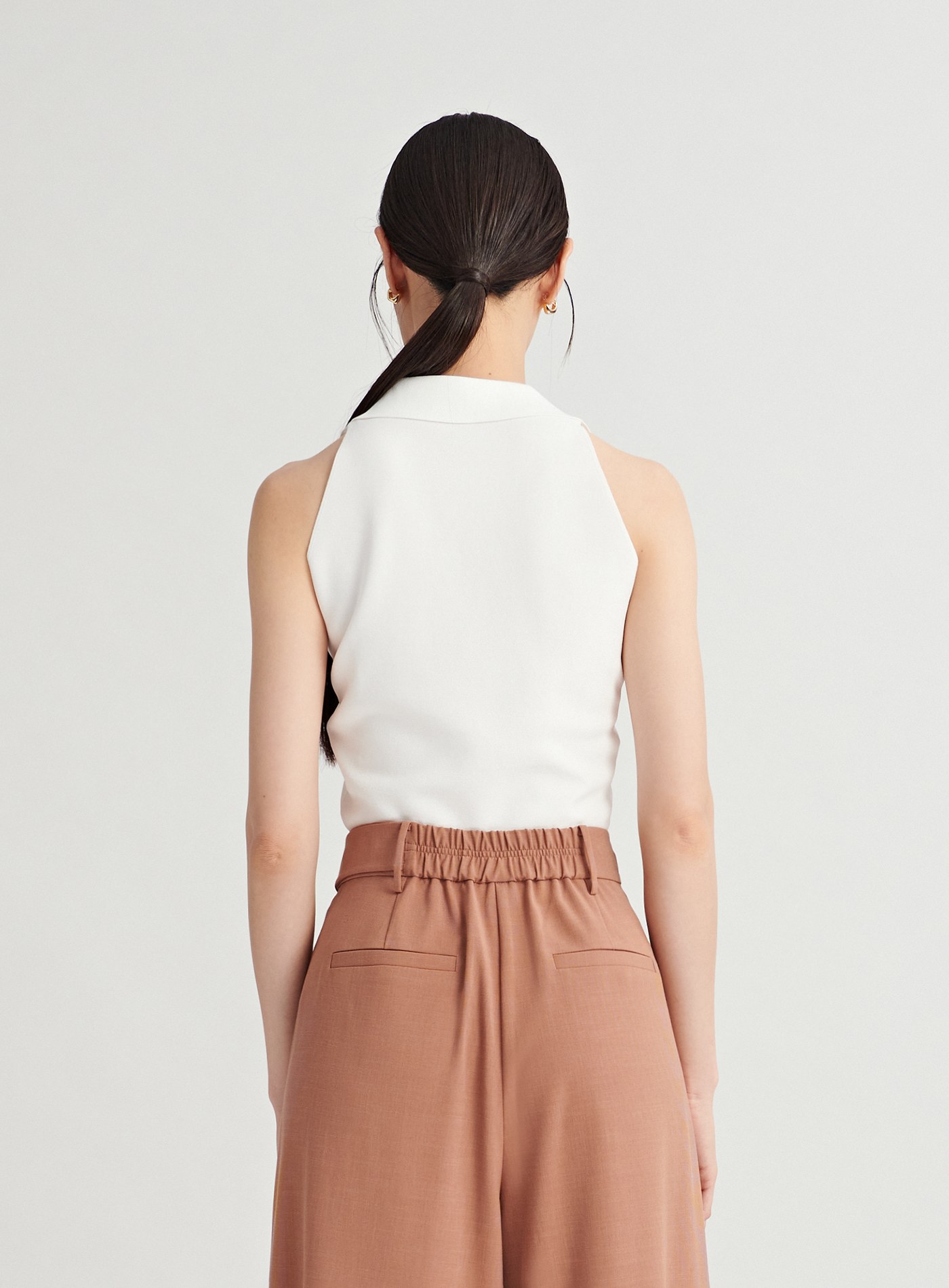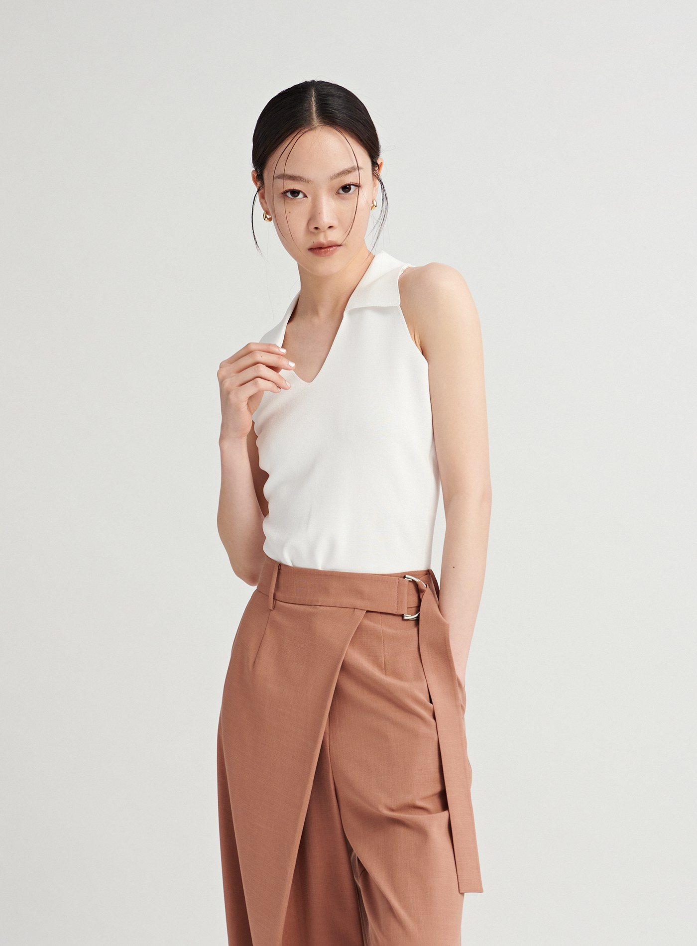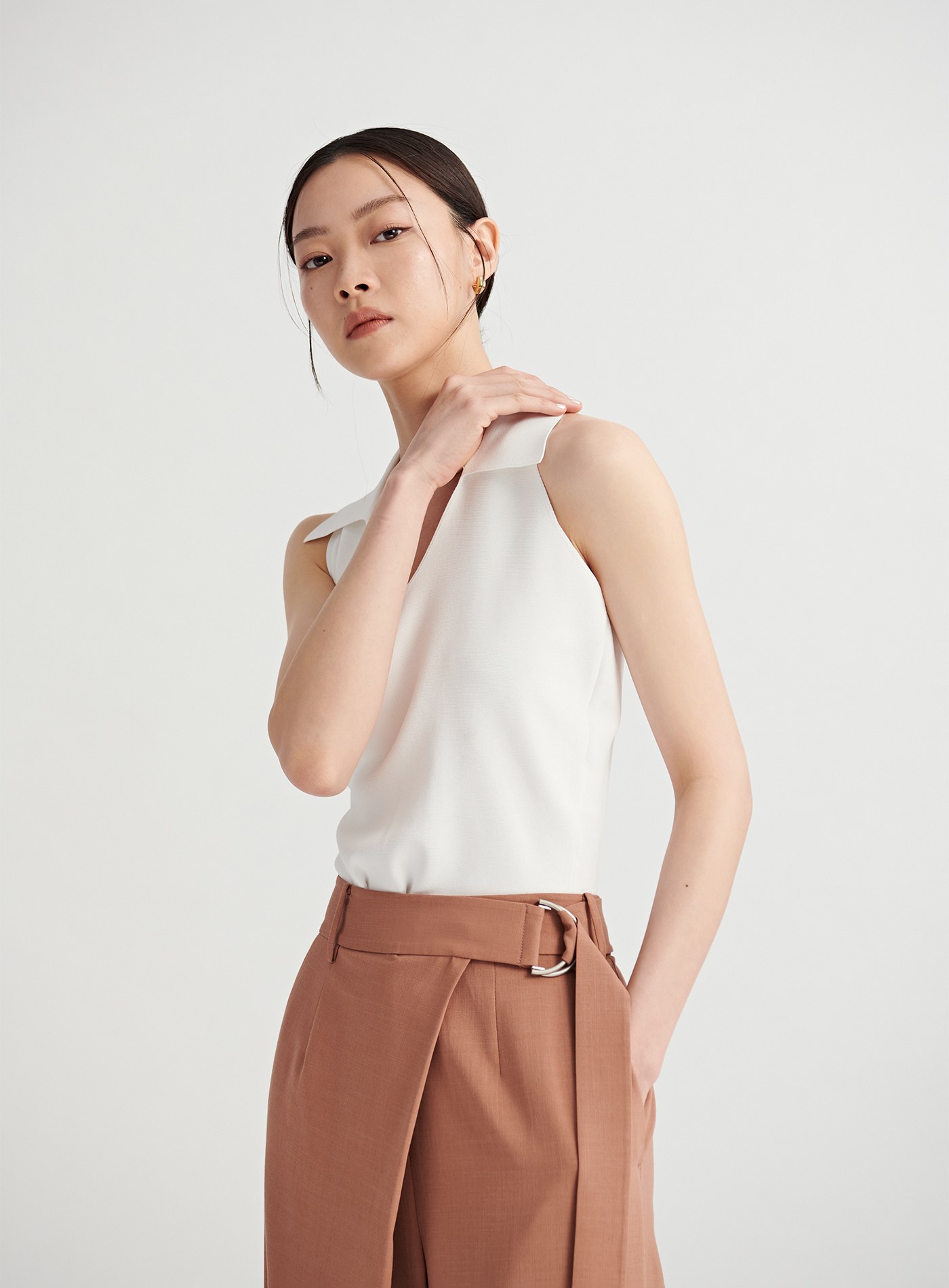 - 合身不緊身版型,襯衫式V領削肩剪裁,勾勒鎖骨線條