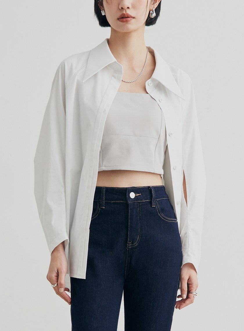 雙層落肩長版無袖綁帶襯杉$79 USD
