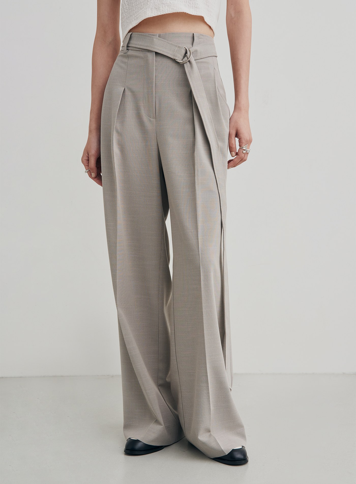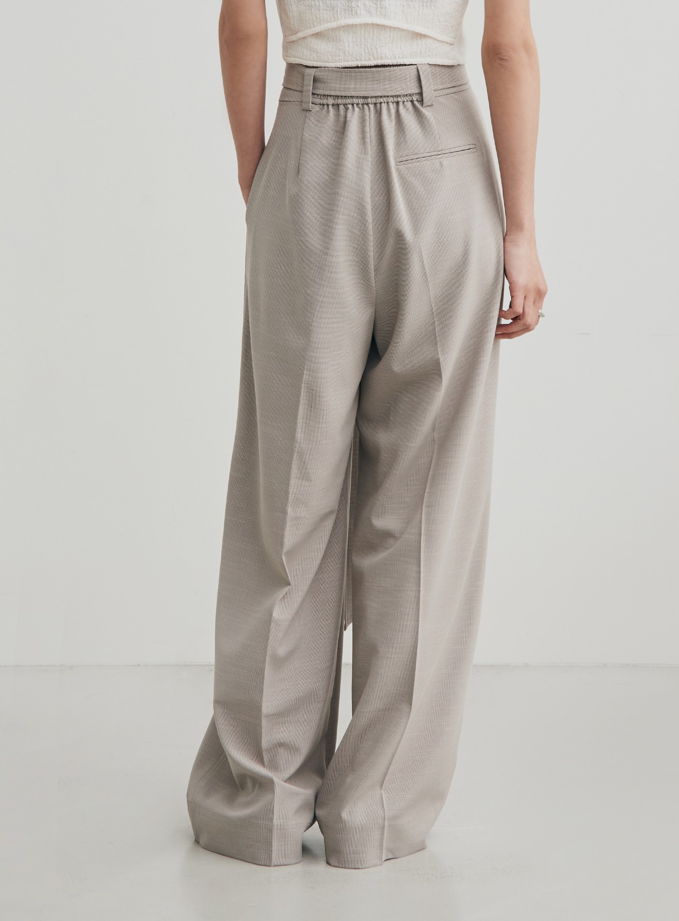 - 直筒打摺寬褲剪裁/後腰鬆緊設計/腰帶可拆式