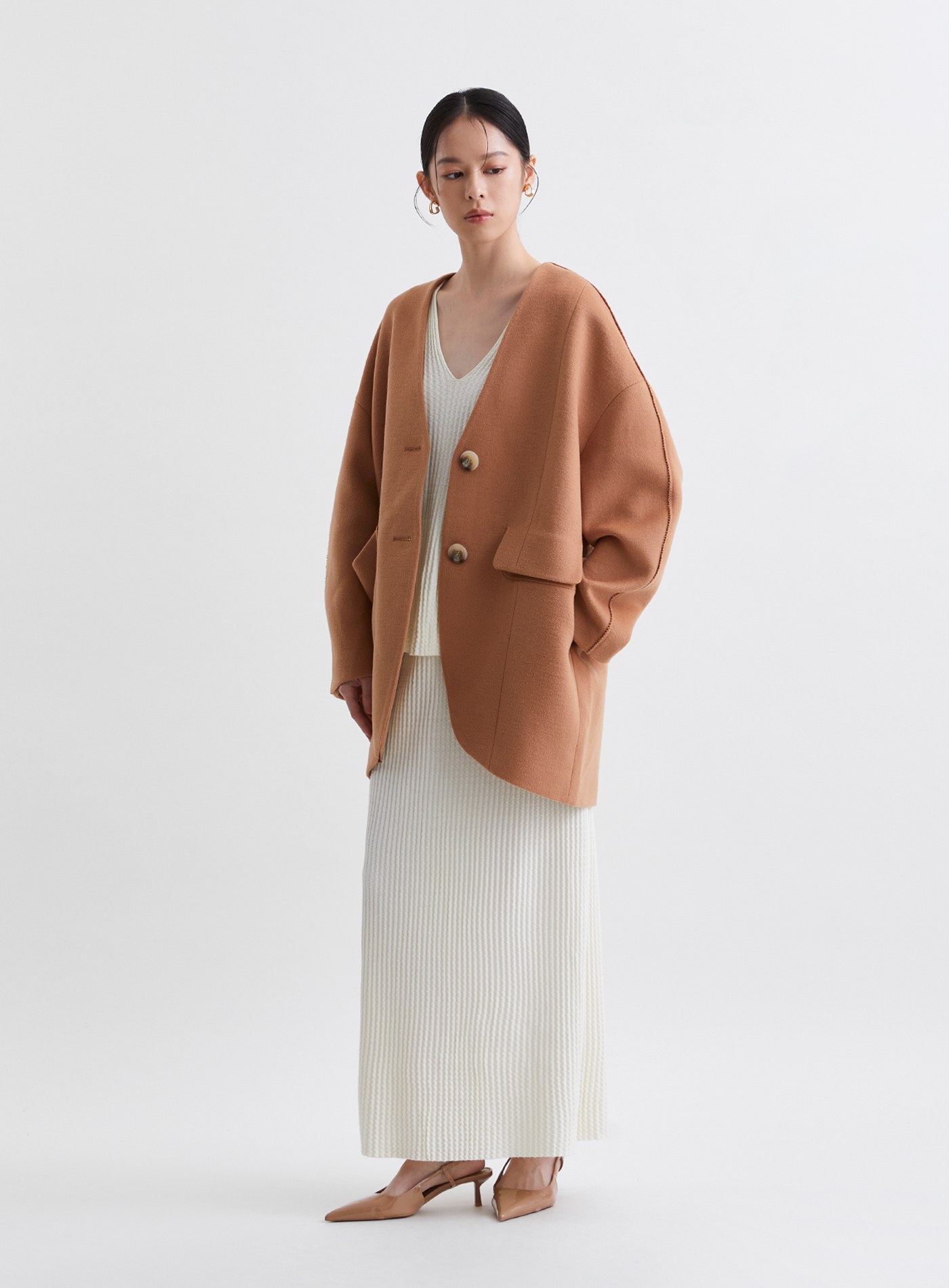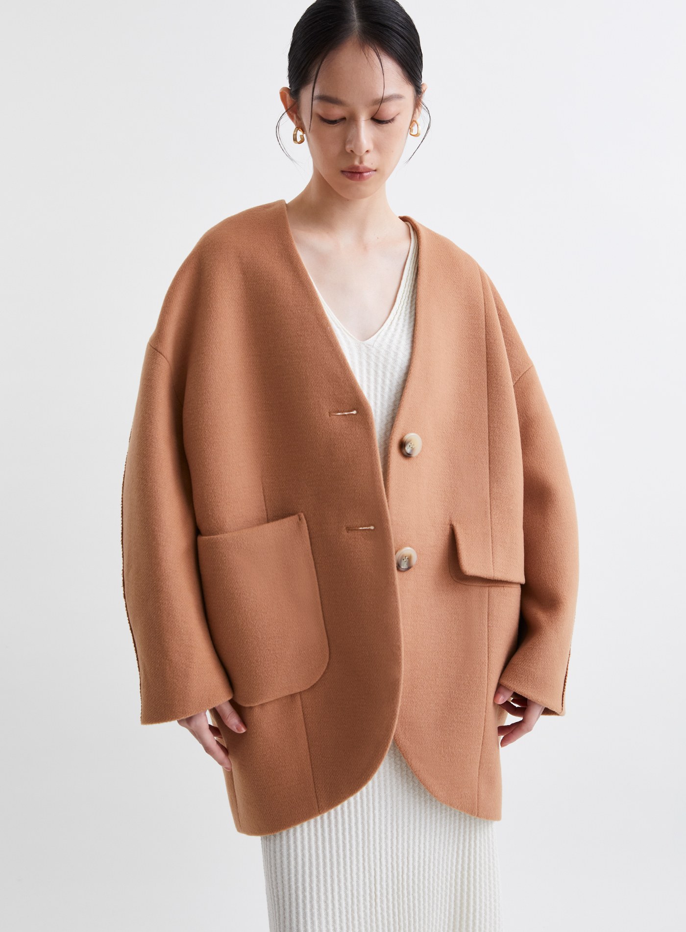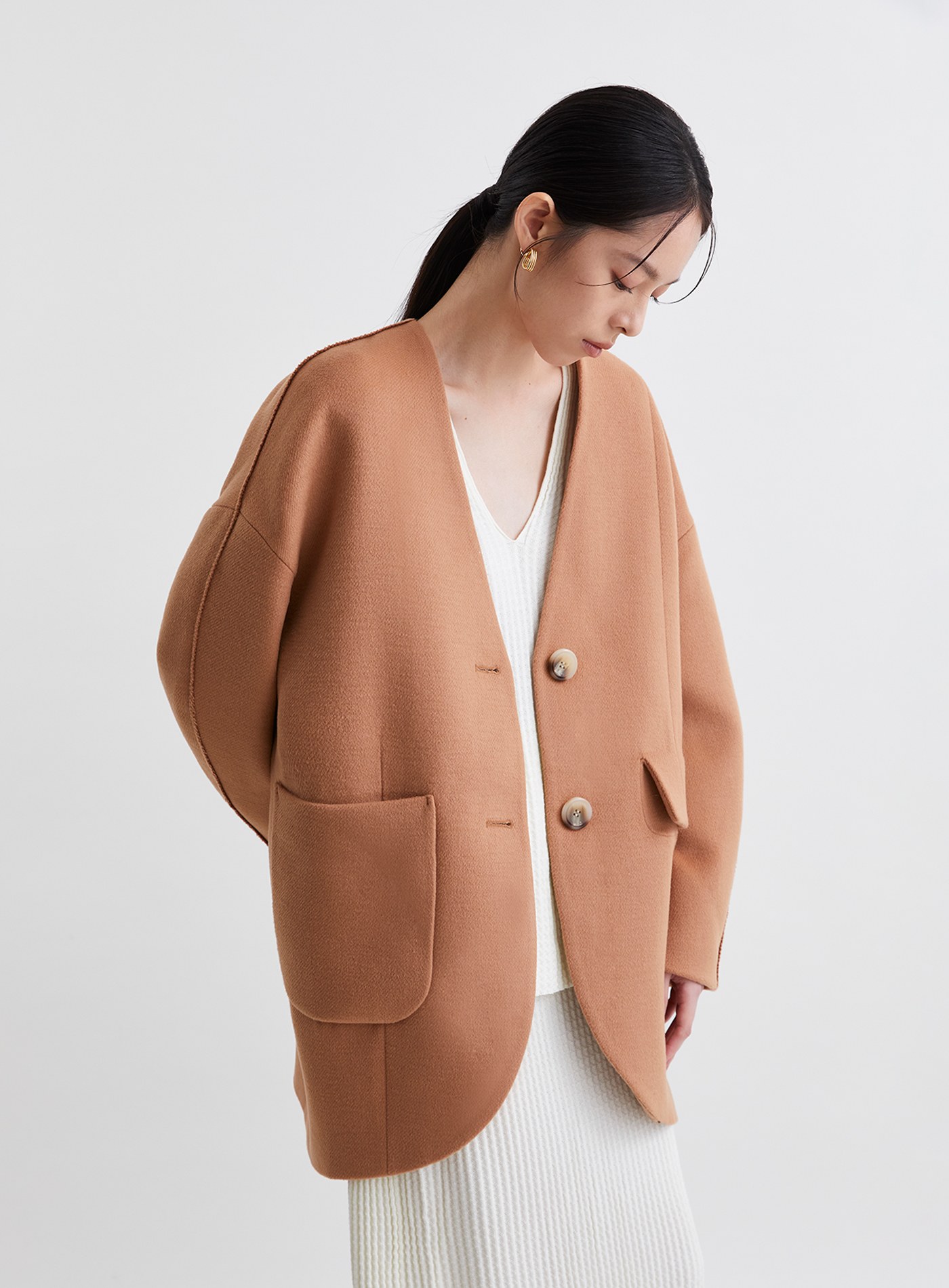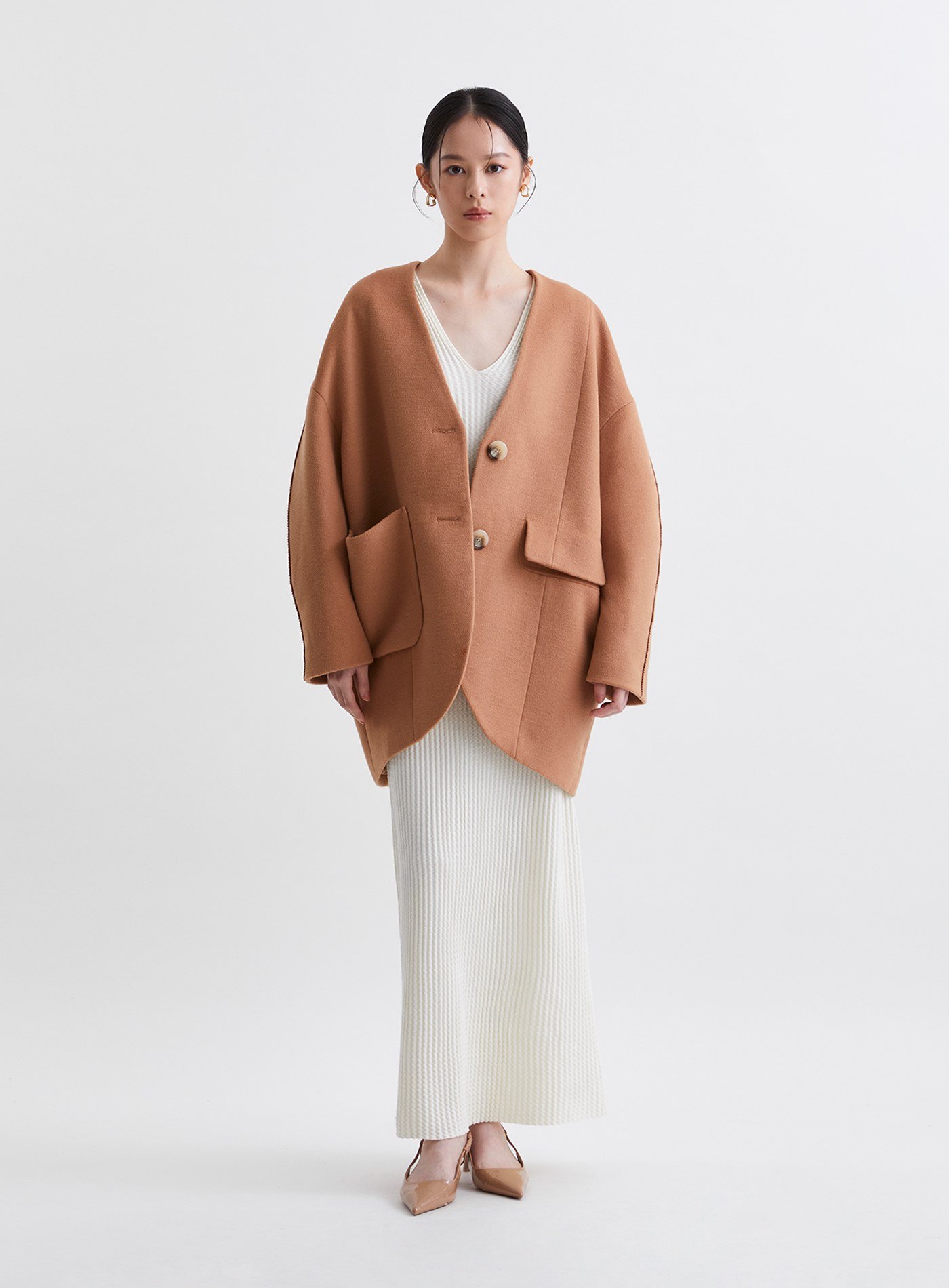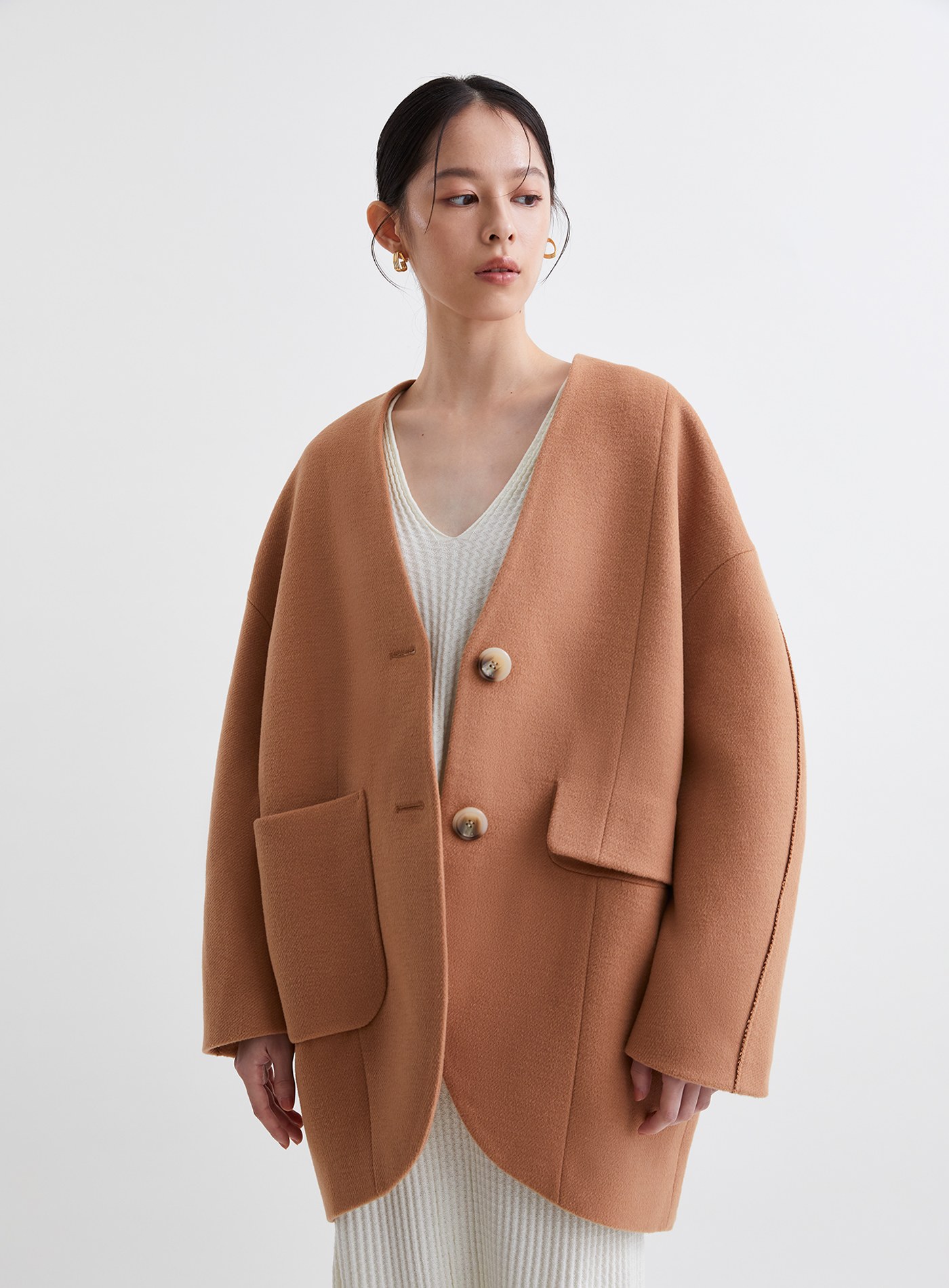 - 肩線與後中採用特種三角車不收邊及壓粗線設計