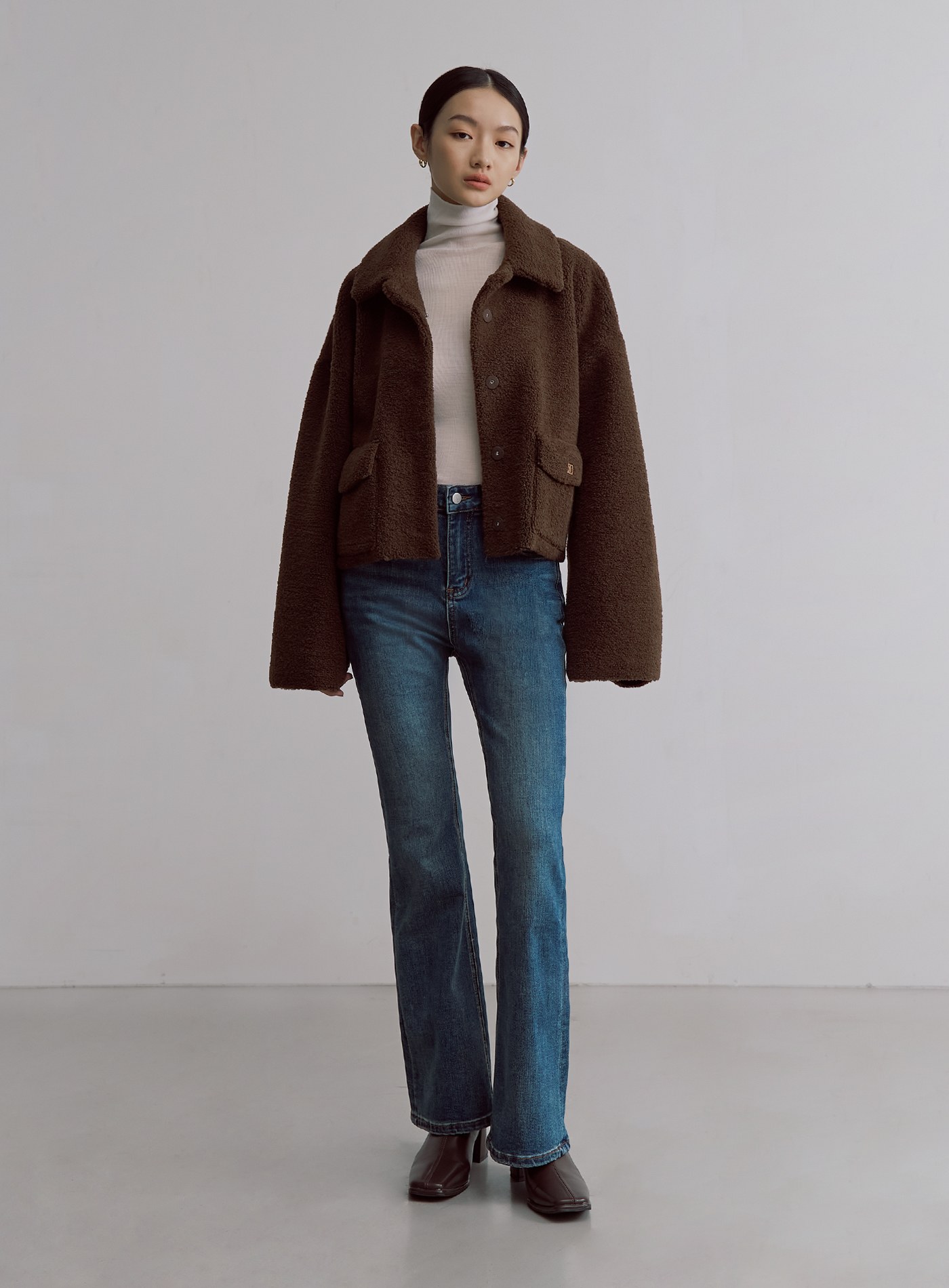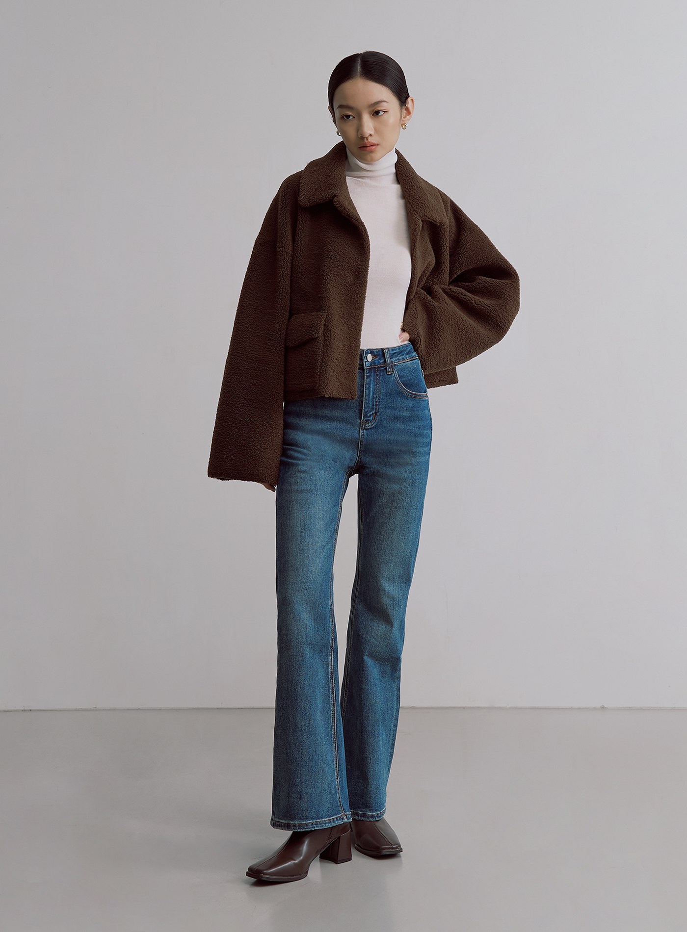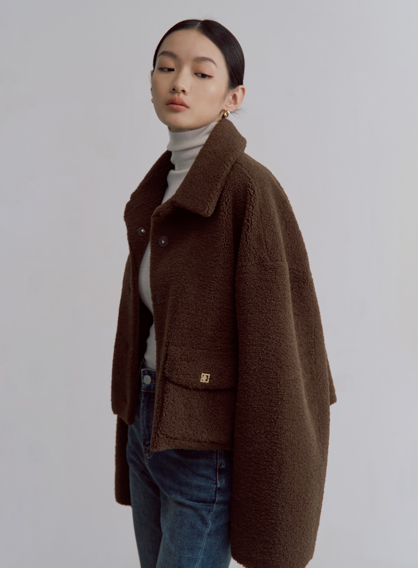 - 寬袖可反摺,露出内側麂皮面料,增添層次感
