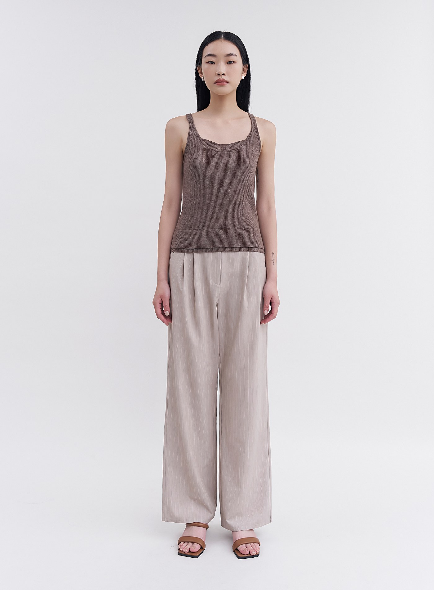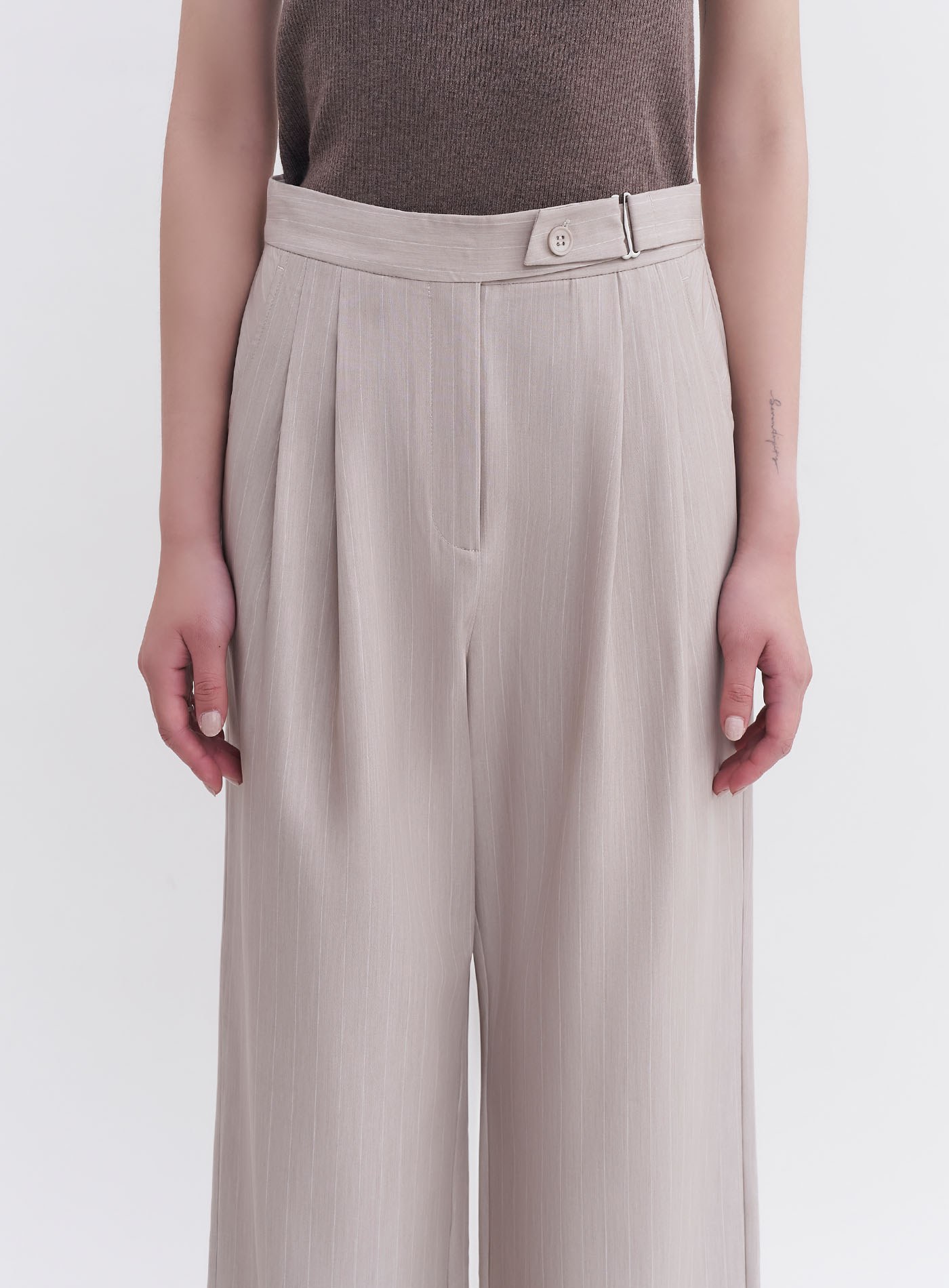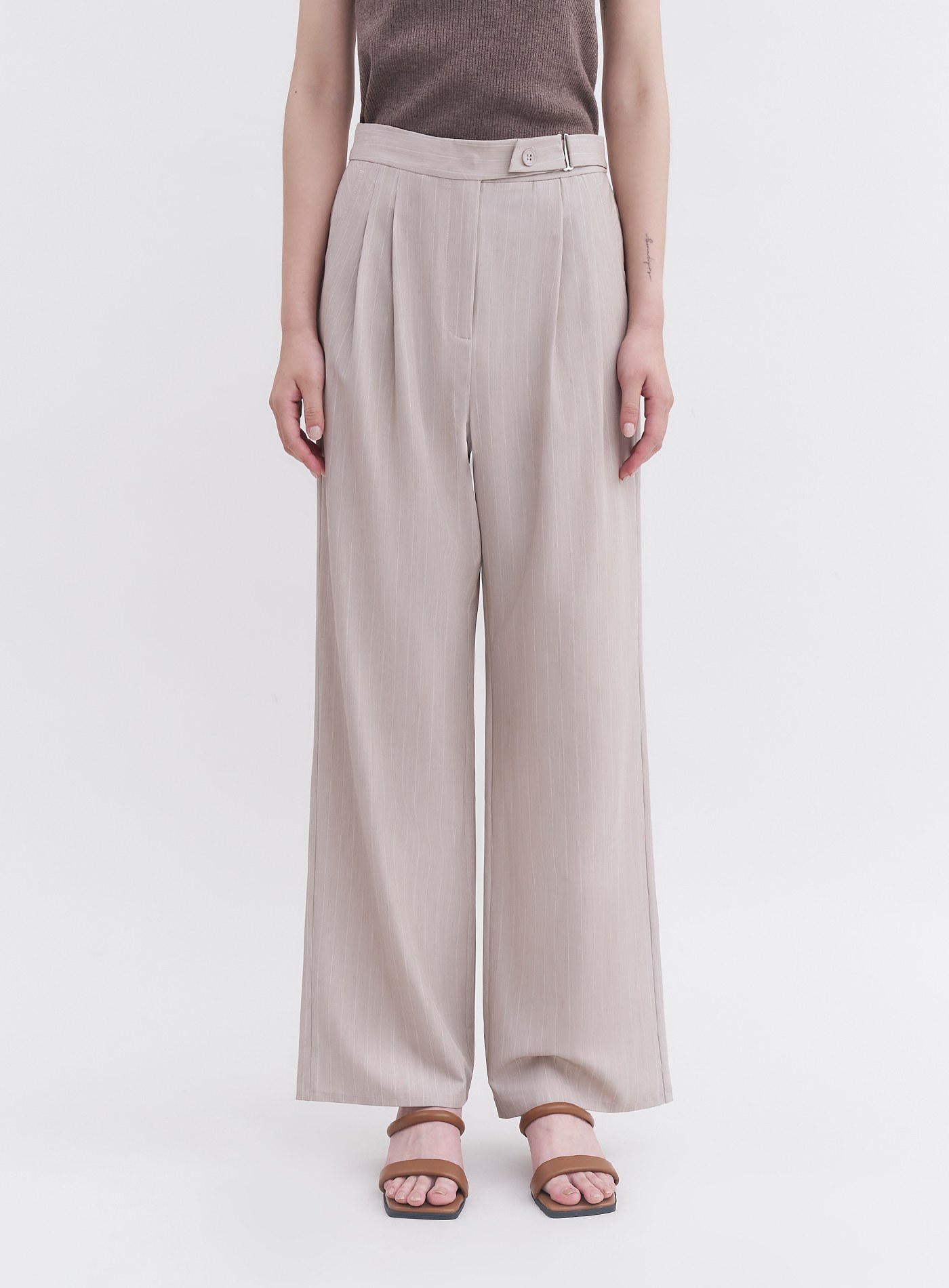 - 可與’率性寬鬆條紋拼接襯衫’搭成套裝
