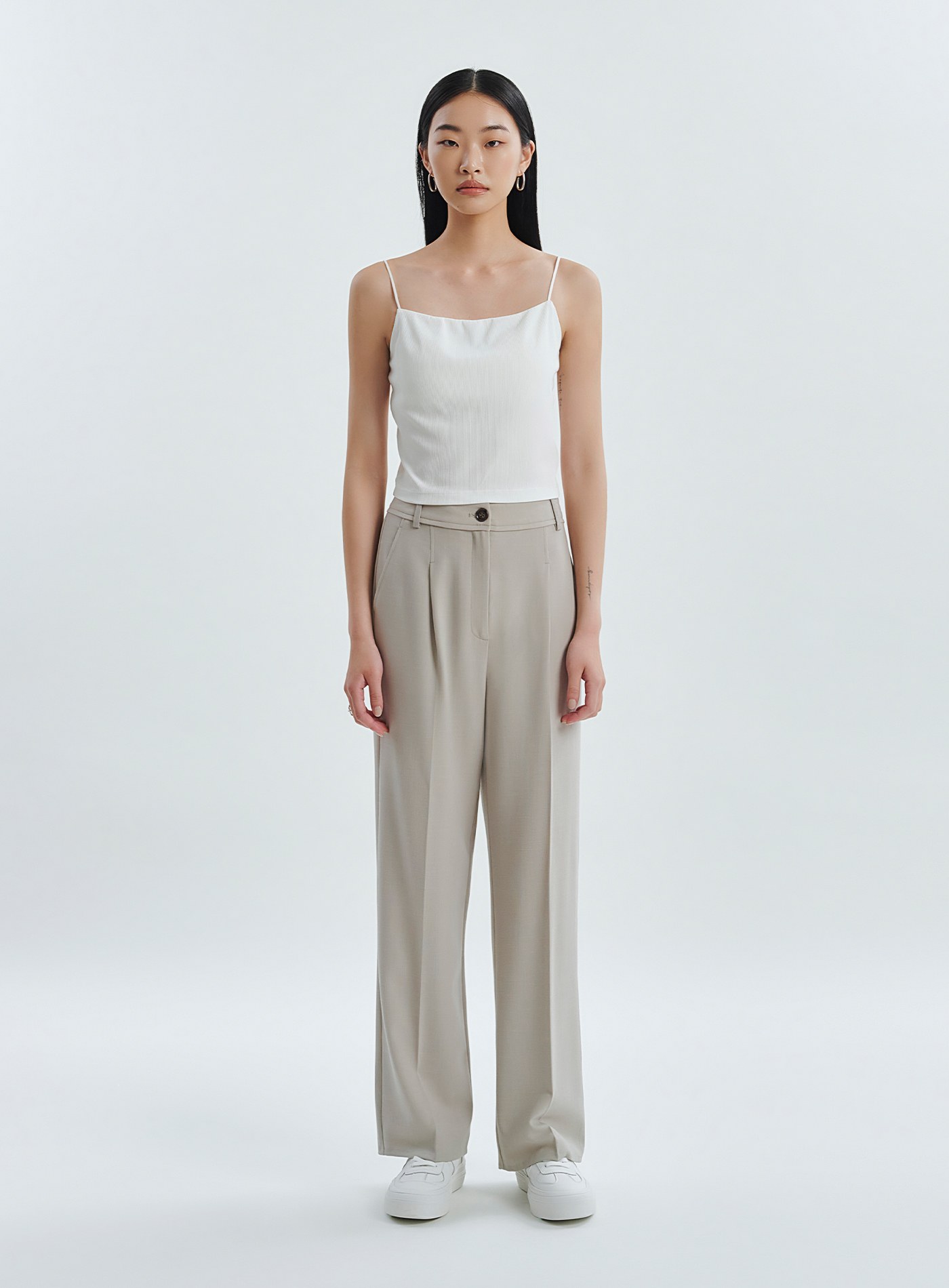 - 直筒版型,後鬆緊腰頭,更顯腰身