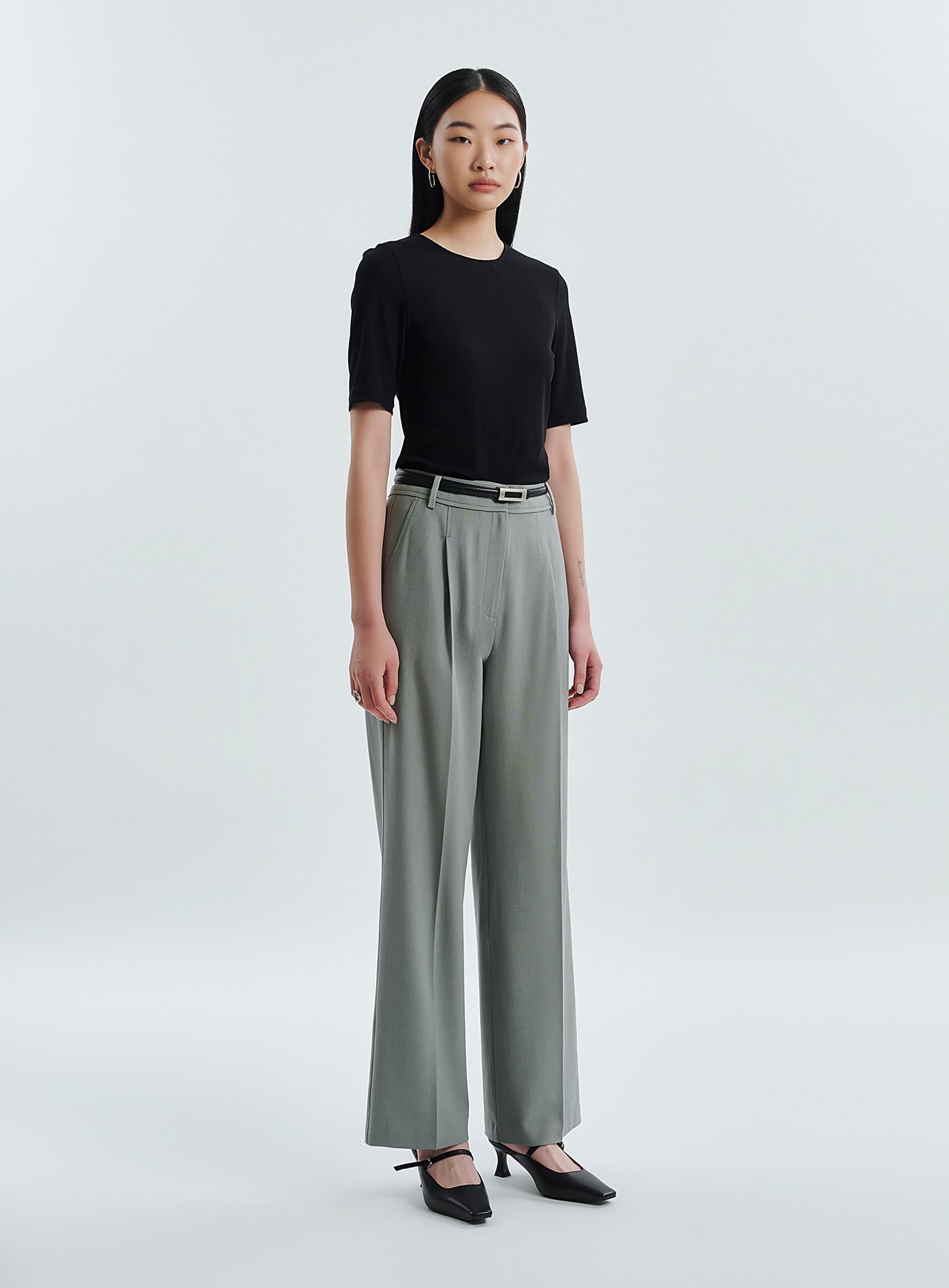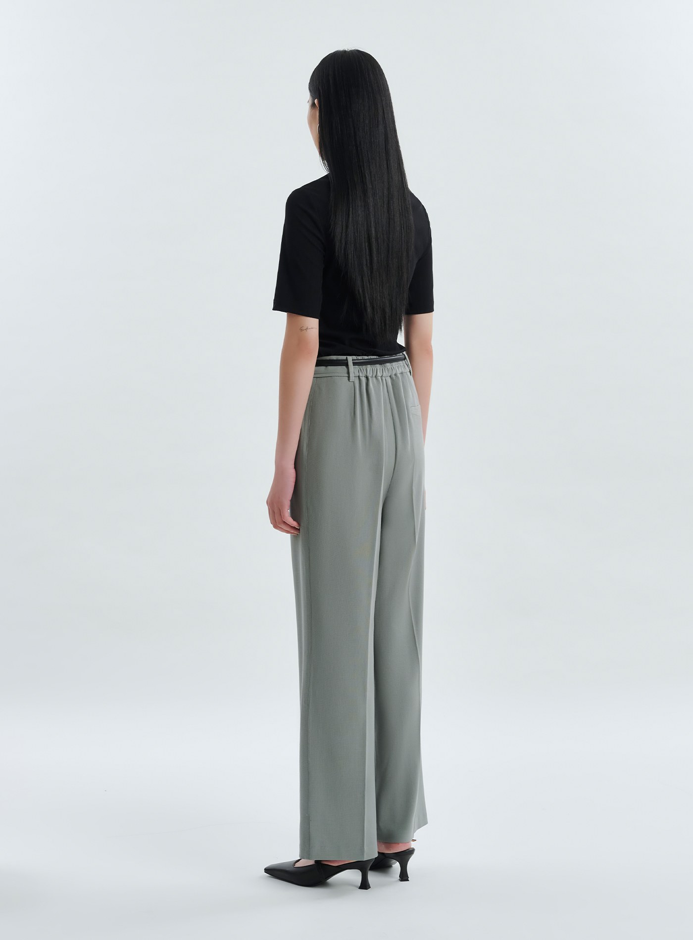 - 直筒版型,後鬆緊腰頭,更顯腰身