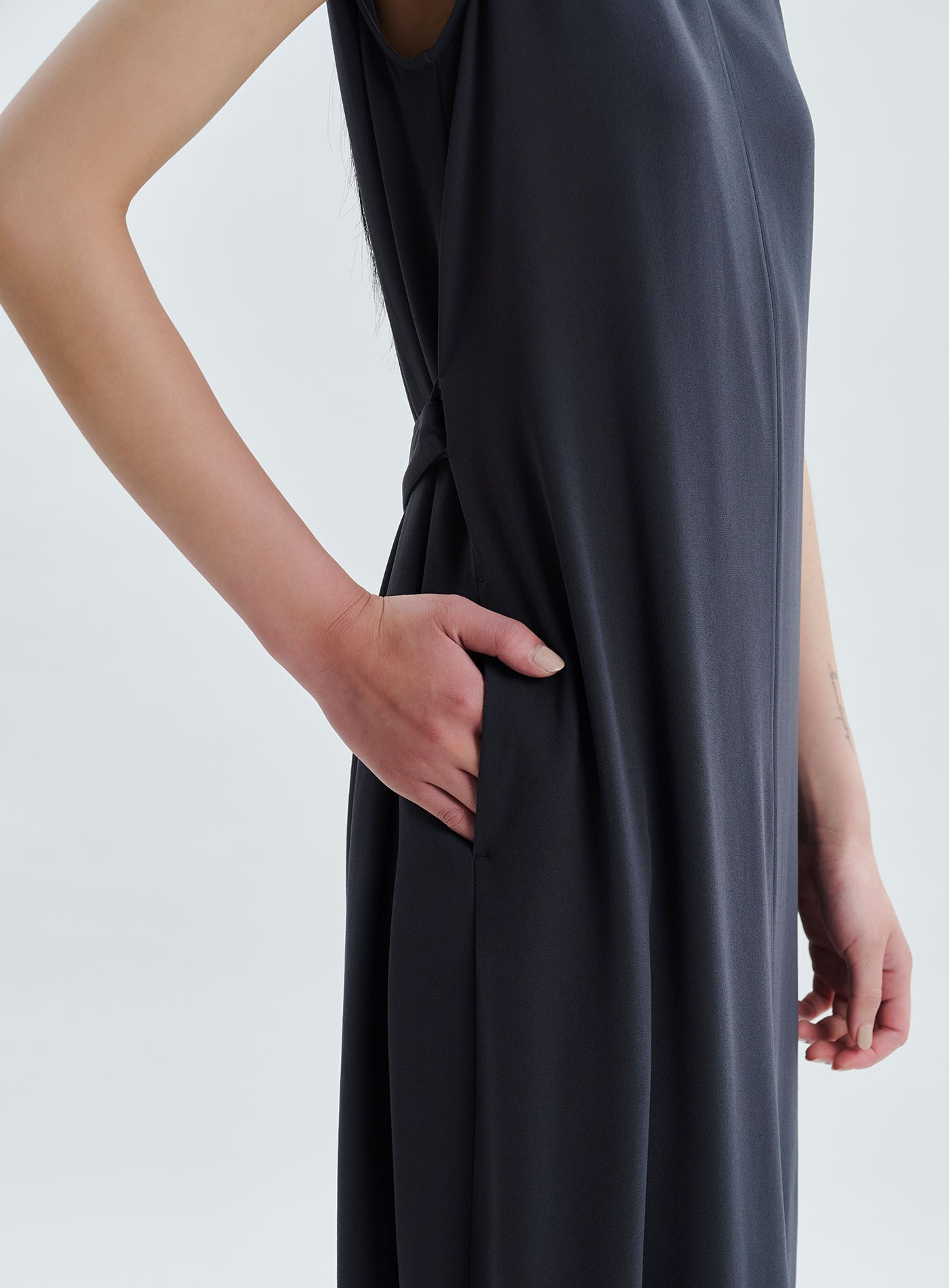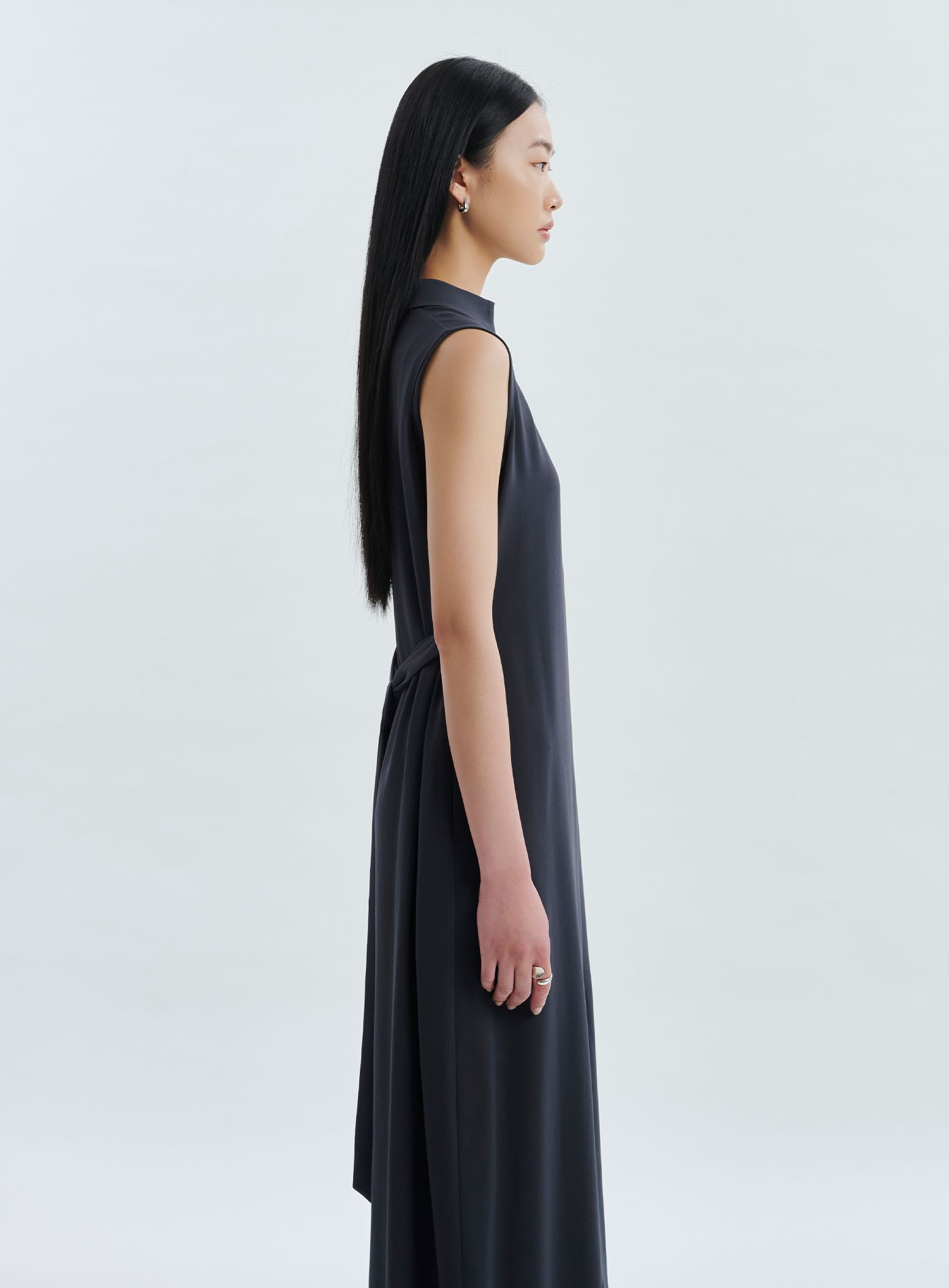 優雅細摺肌理交叉綁帶洋裝$95 USD