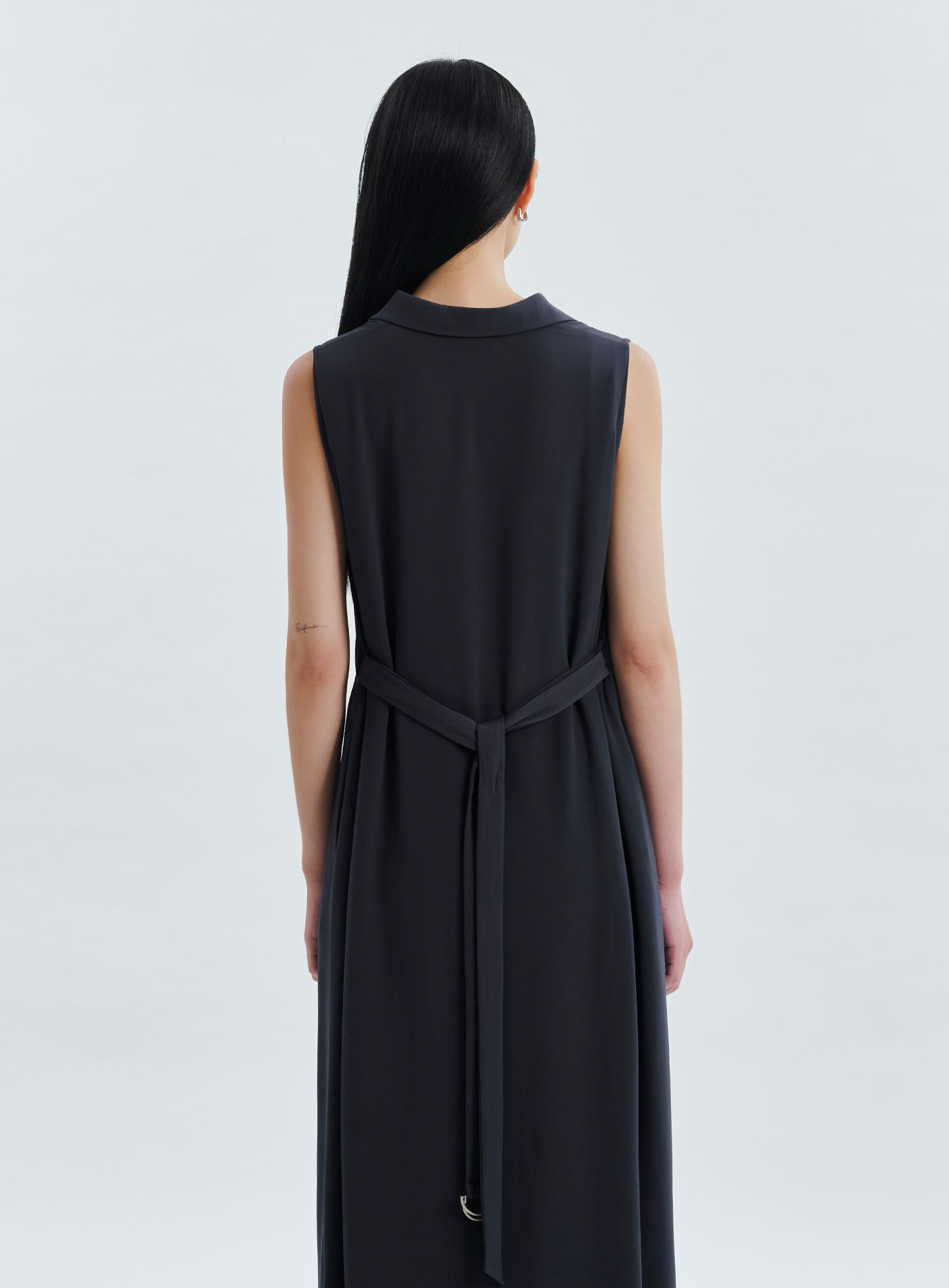 雙層不對稱綁帶襯衫式洋裝$105 USD