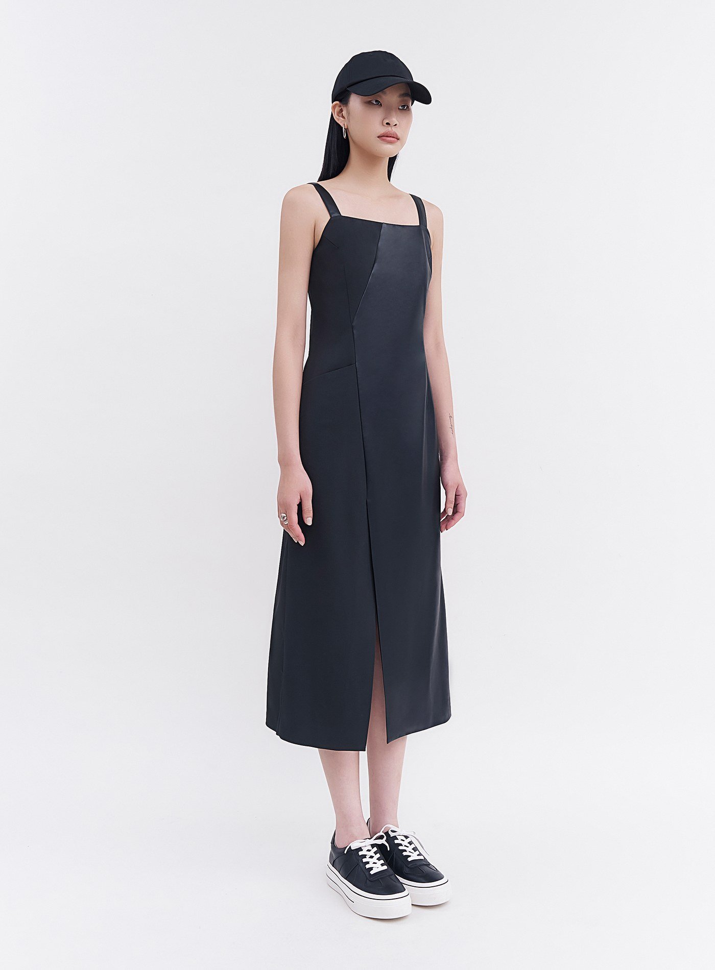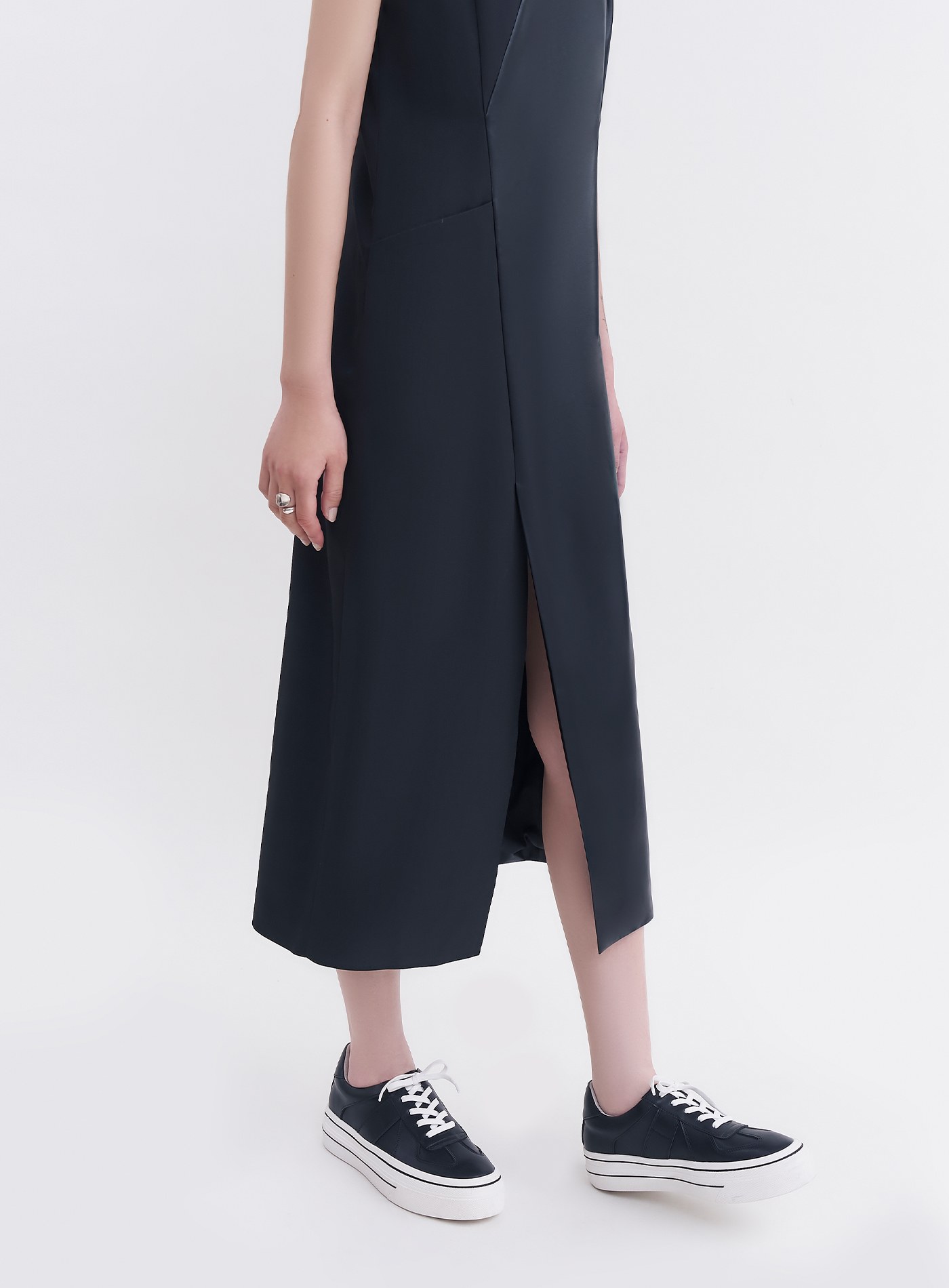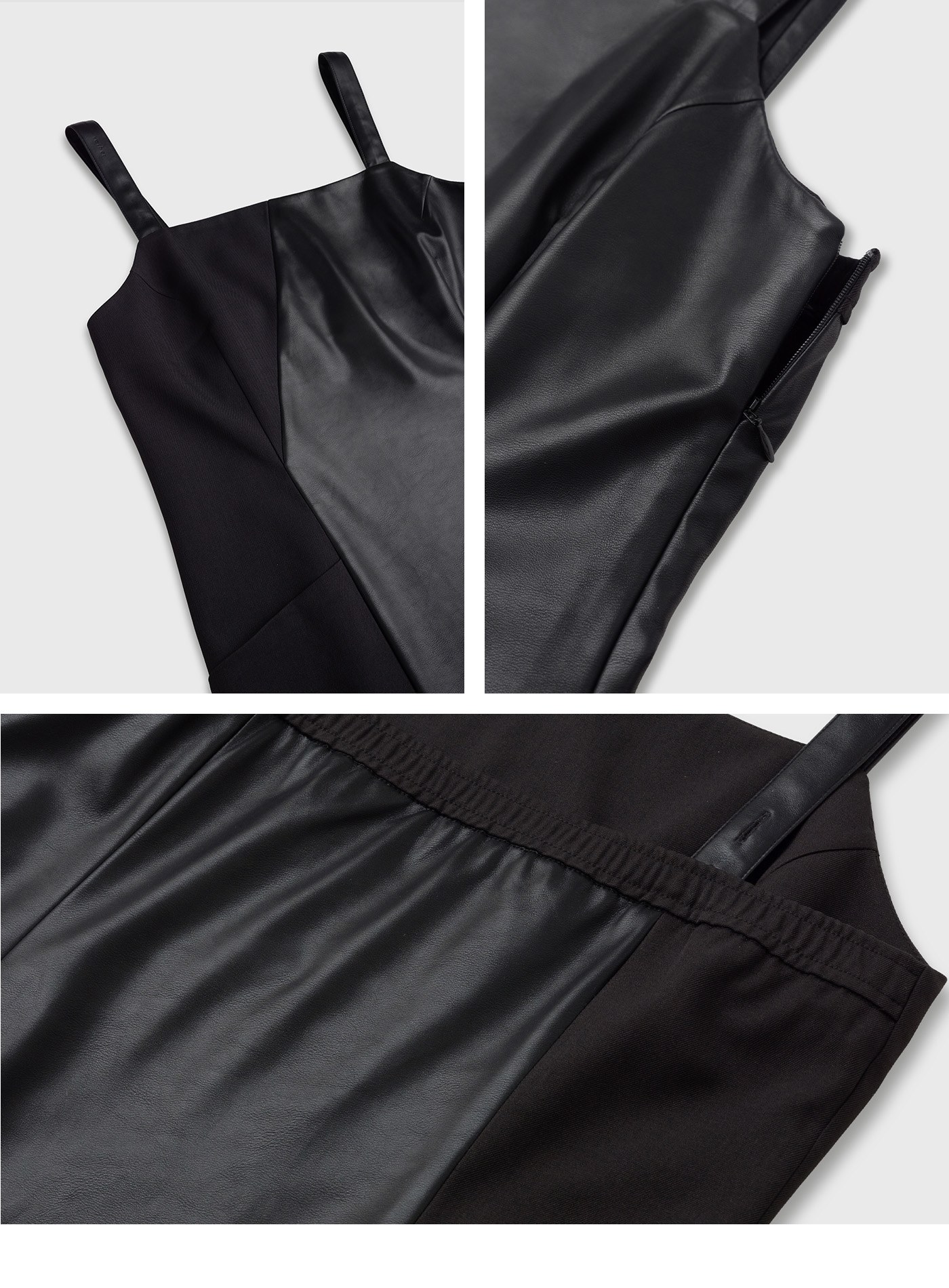 - 異素材質拼接,側邊隱形拉鍊