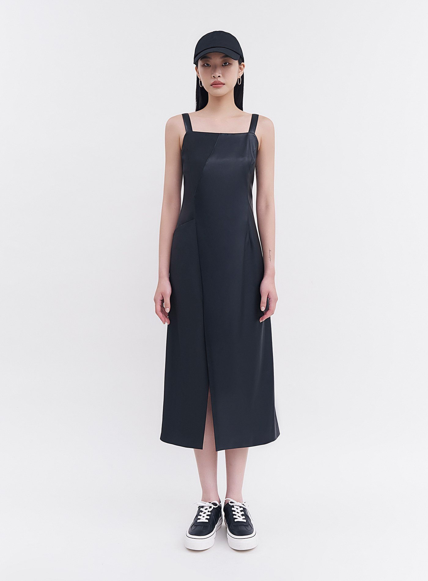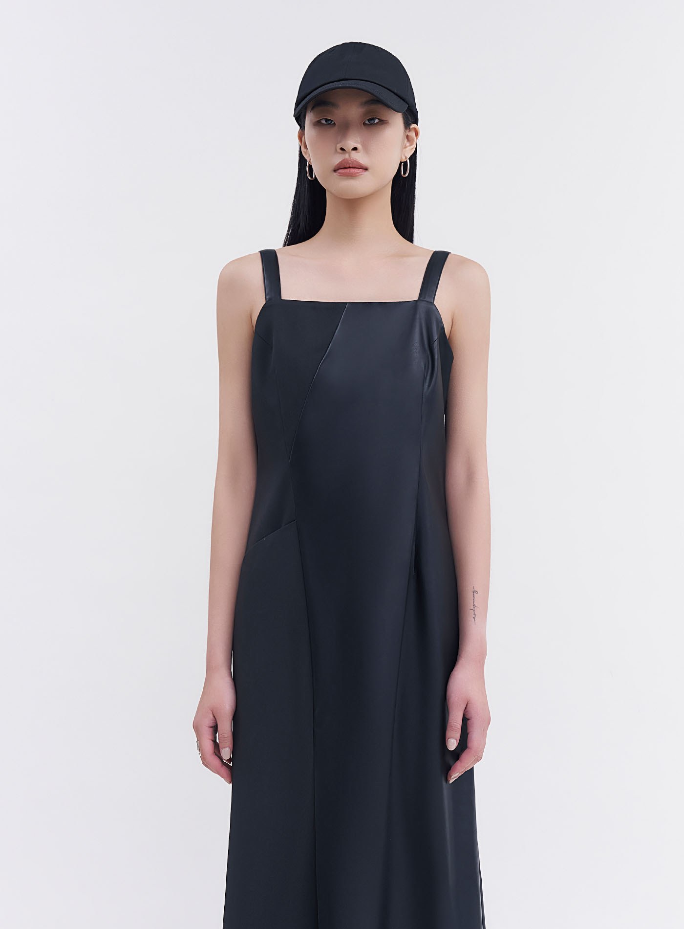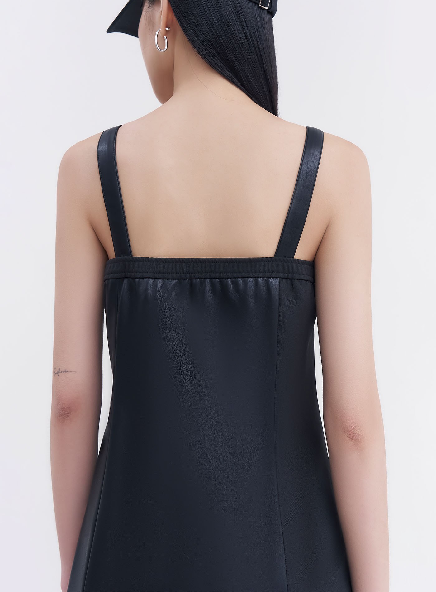 - 異素材質拼接,側邊隱形拉鍊