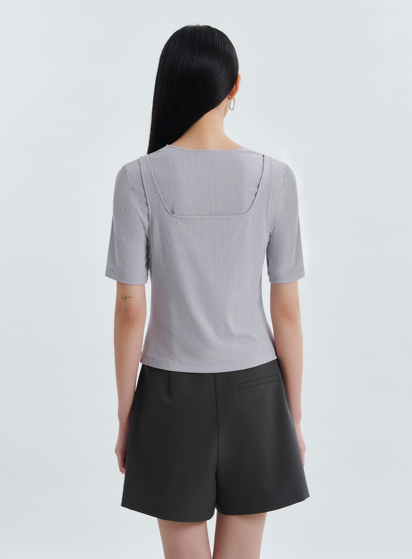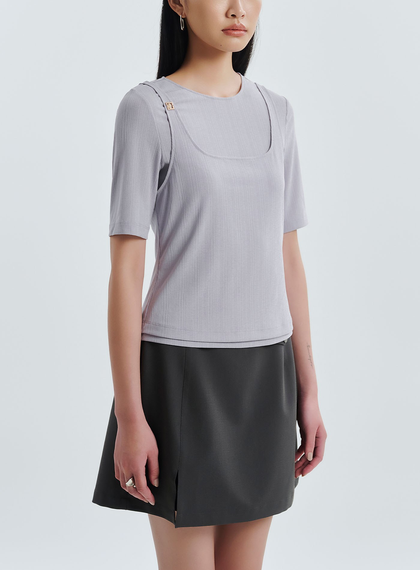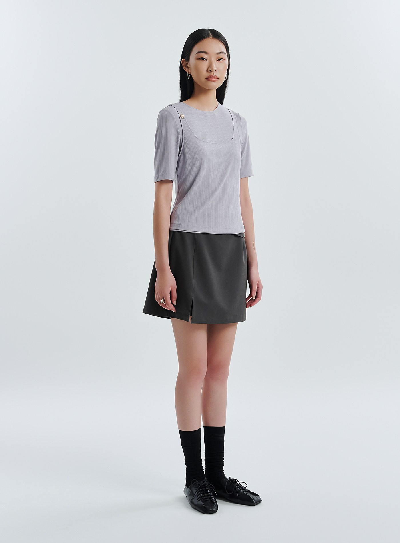 - 外背心也可單穿,左肩品牌 LOGO 金屬牌裝飾